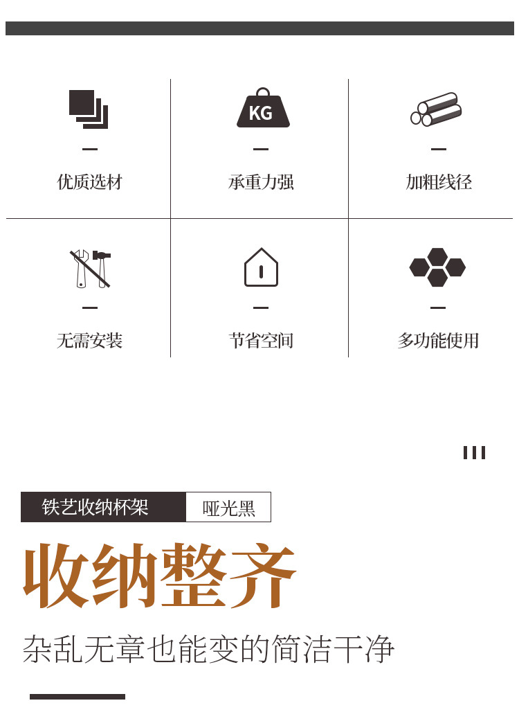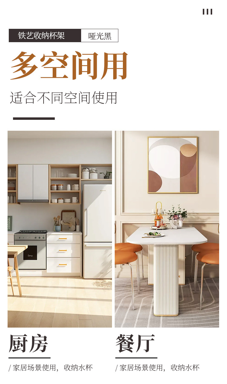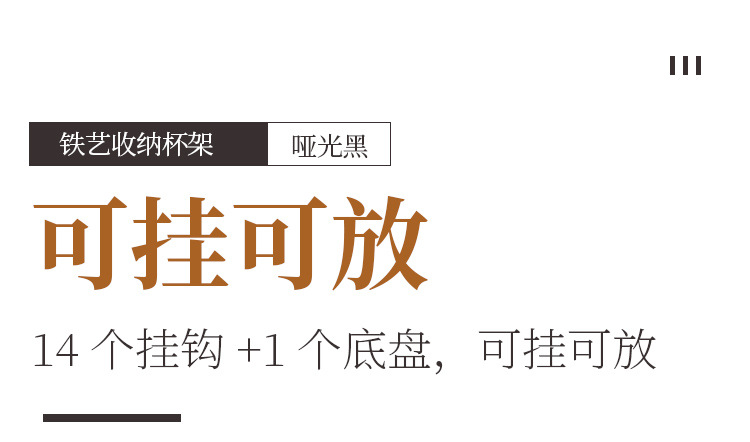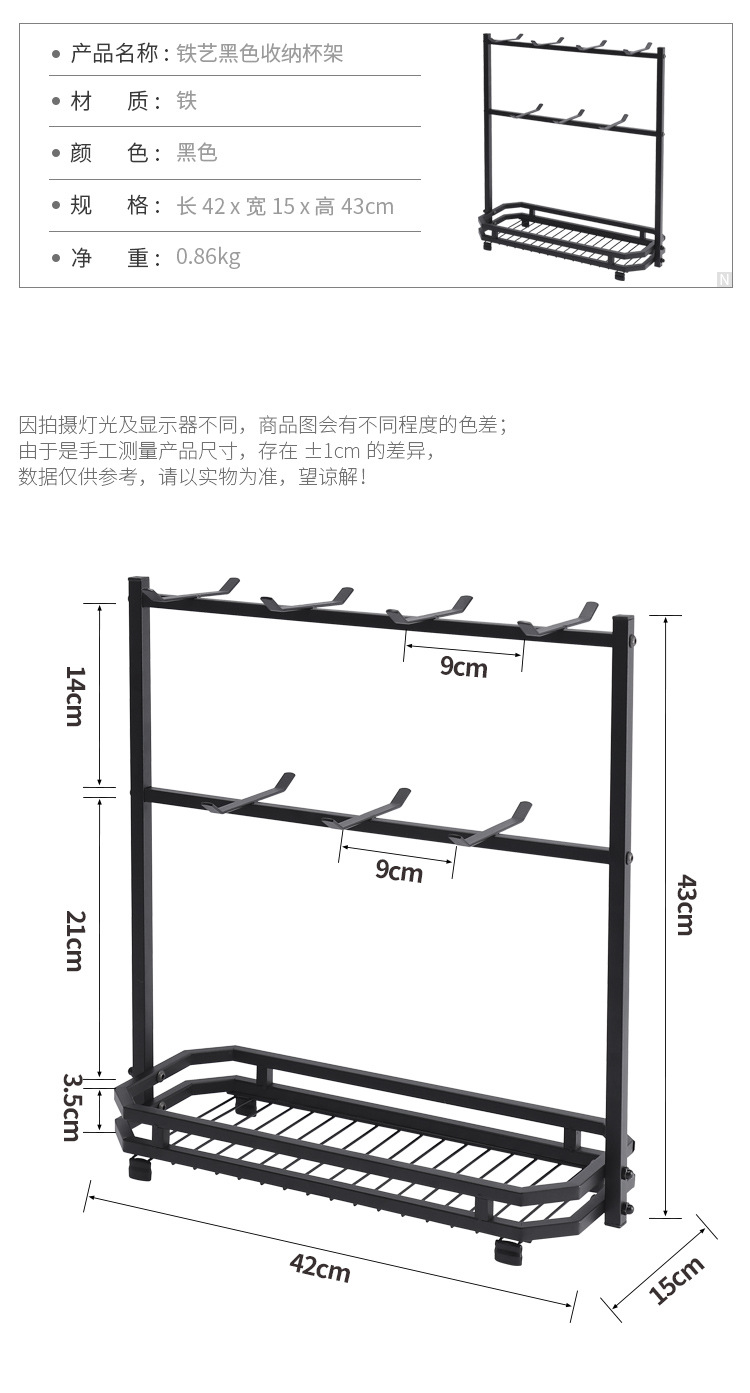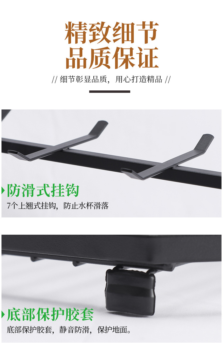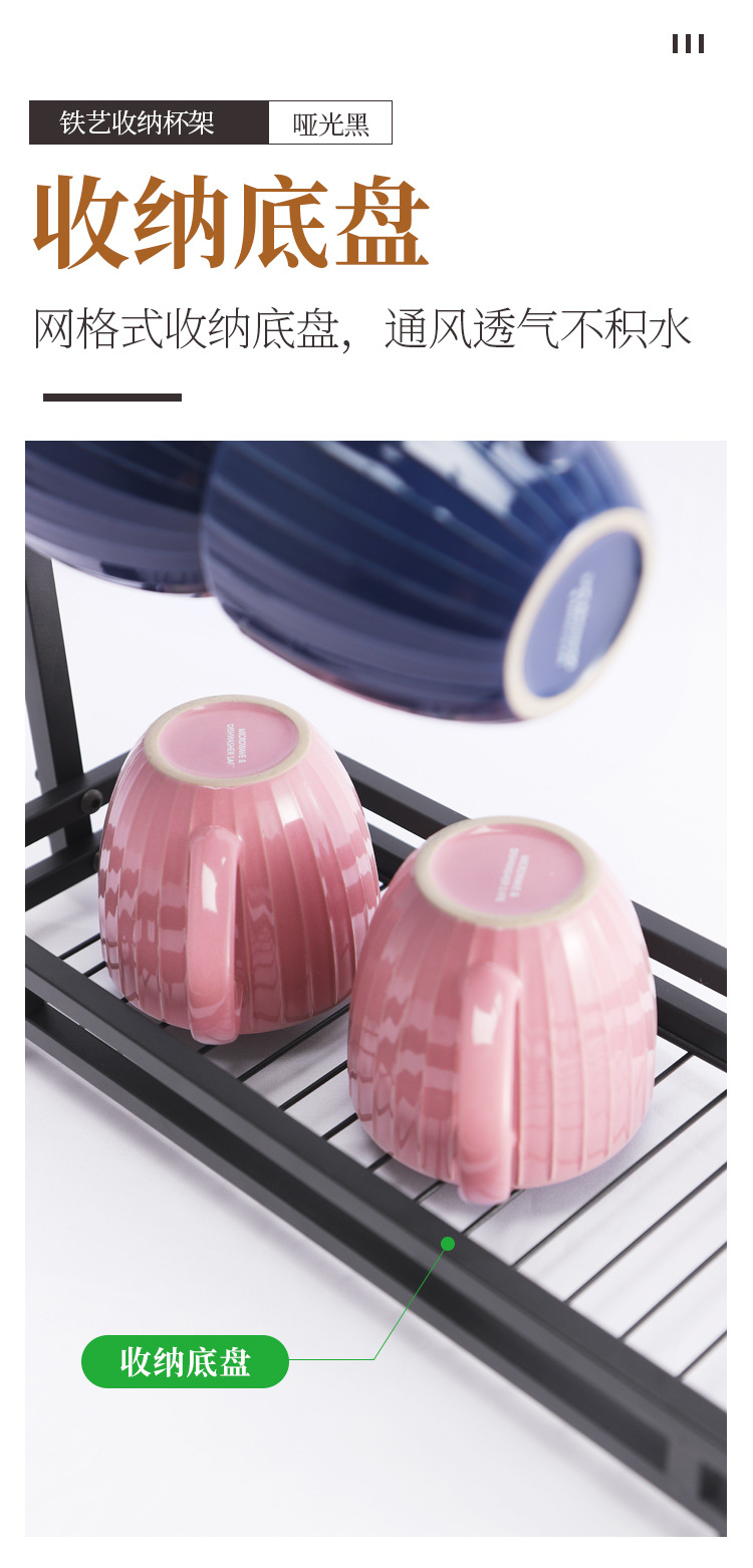 Soporte para tazas de café en stock, estante de hierro forjado sin taladro para tazas, estante de almacenamiento de tres niveles para tazas de té invertidas para cocina.