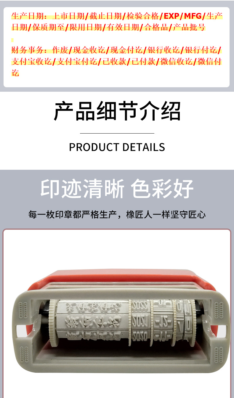 312 Sello de fecha financiera directo de fábrica impresa manual 23 letras de rueda digital sello inglés
