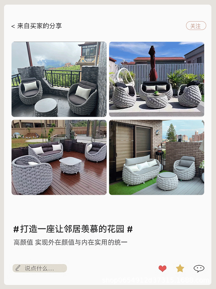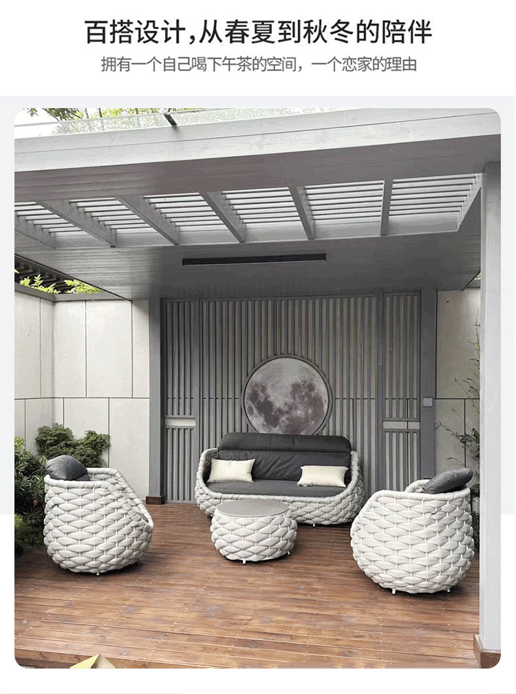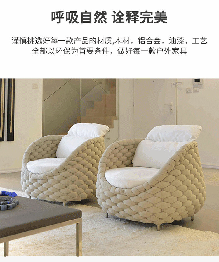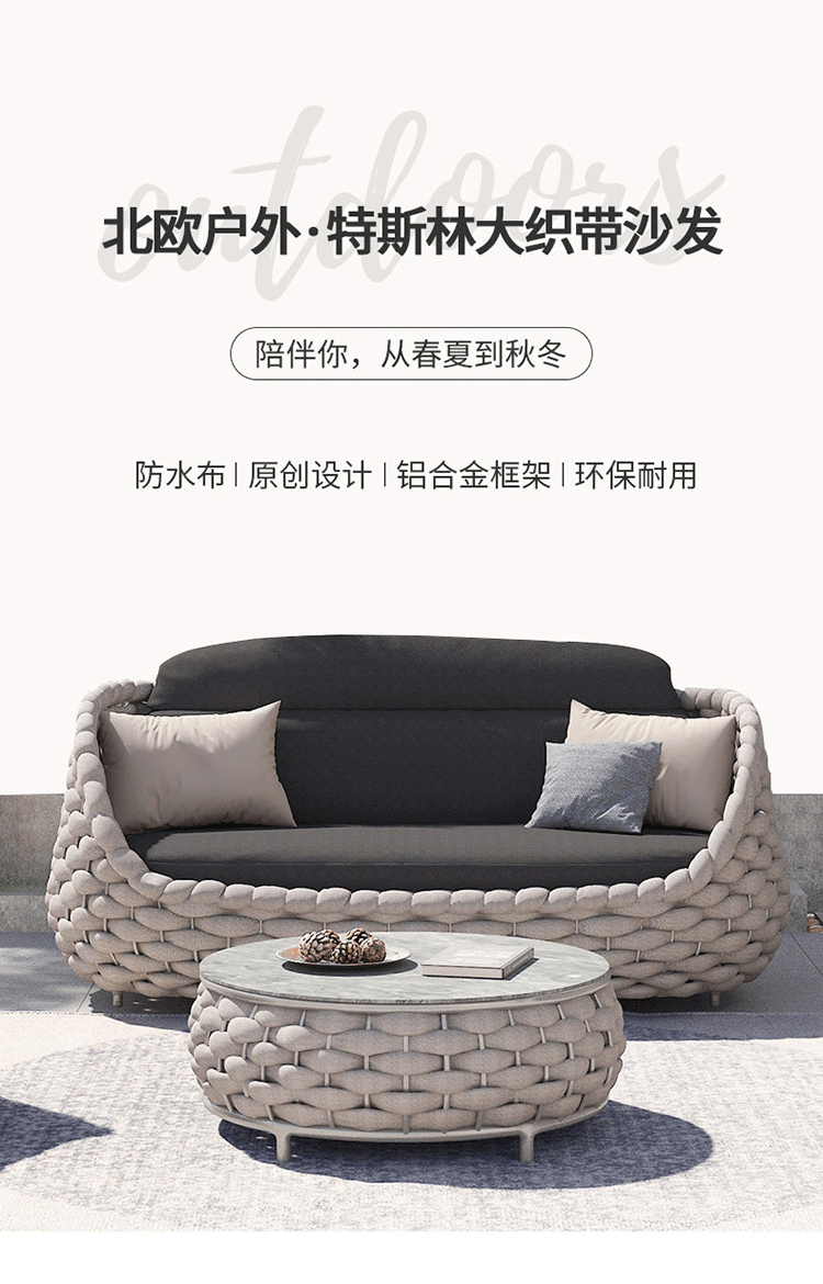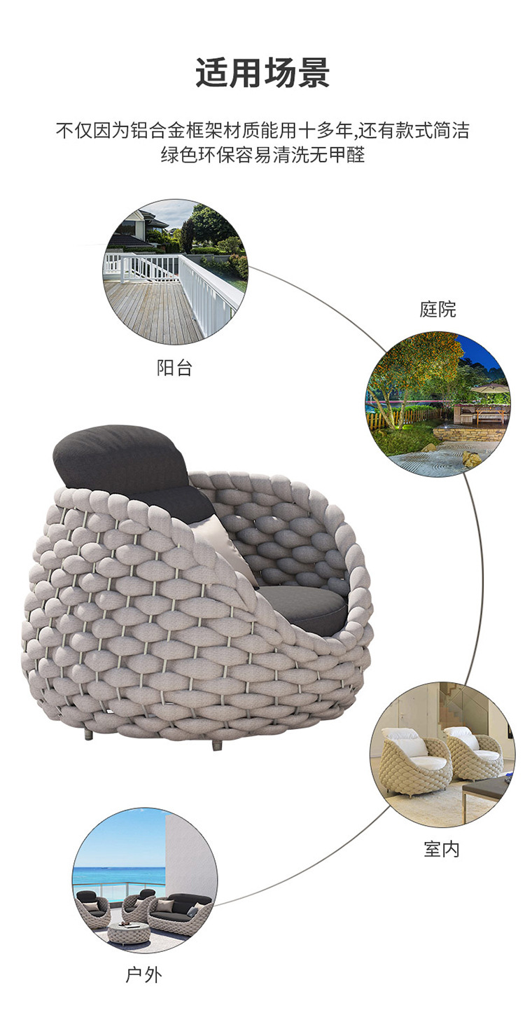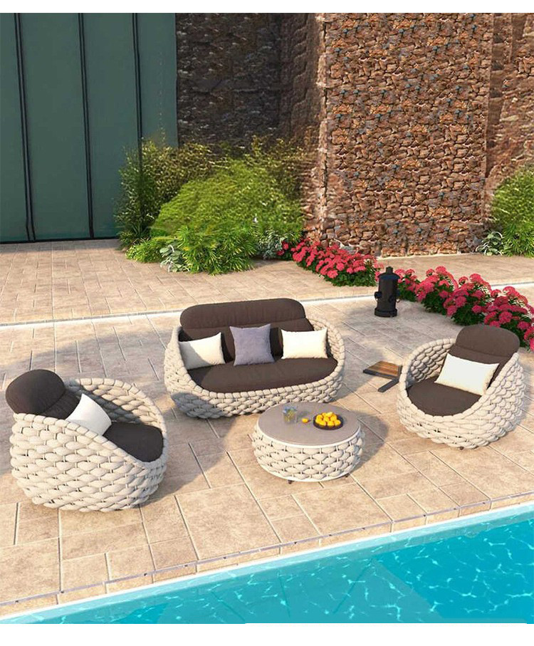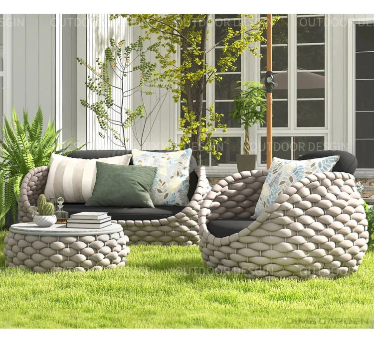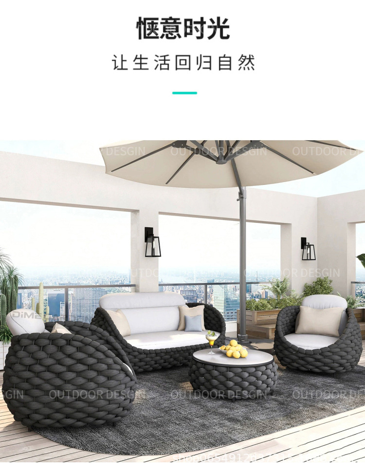 Nórdico al aire libre sofá de tela de ratana terraza combinada patio balcón art de ratana sala de estar sofá de tela de ratana muebles de ocio villa
