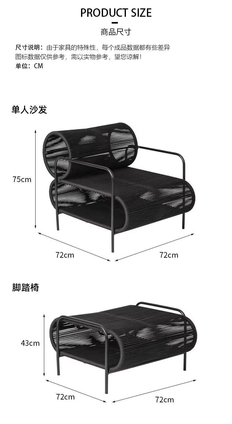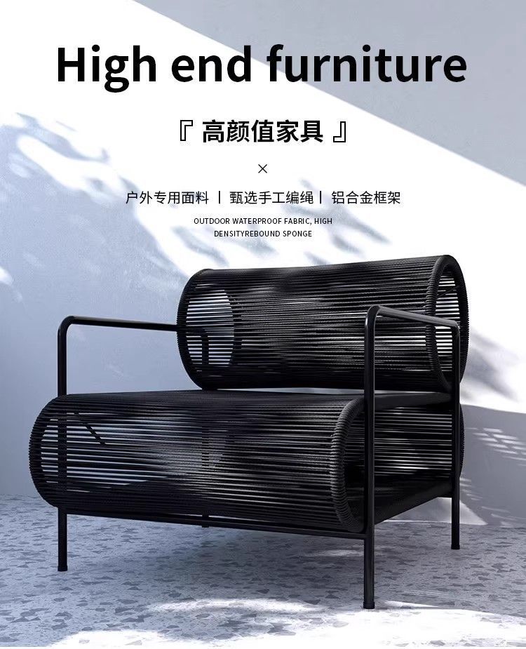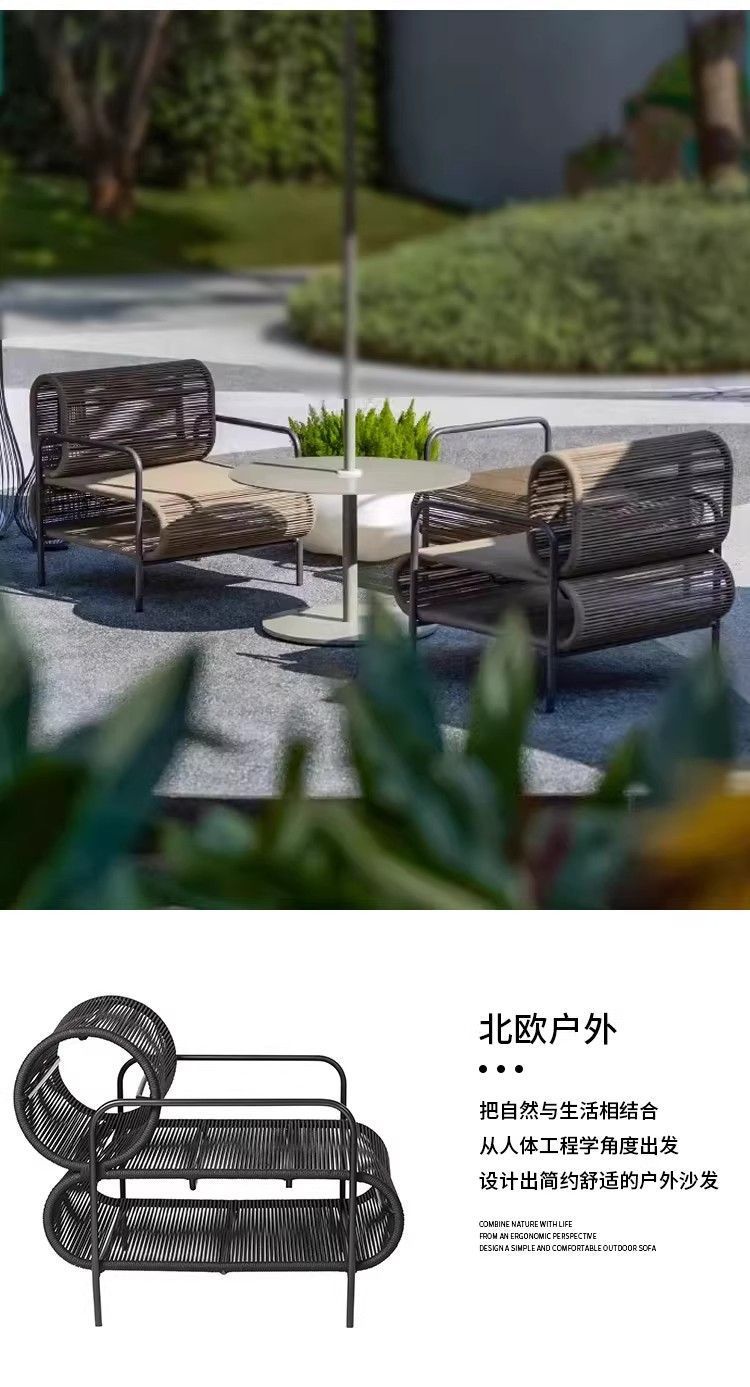 Sofá de caña al aire libre patio balcón terraza de ocio villa de ventas diseñador de jardín muebles a prueba de humedad