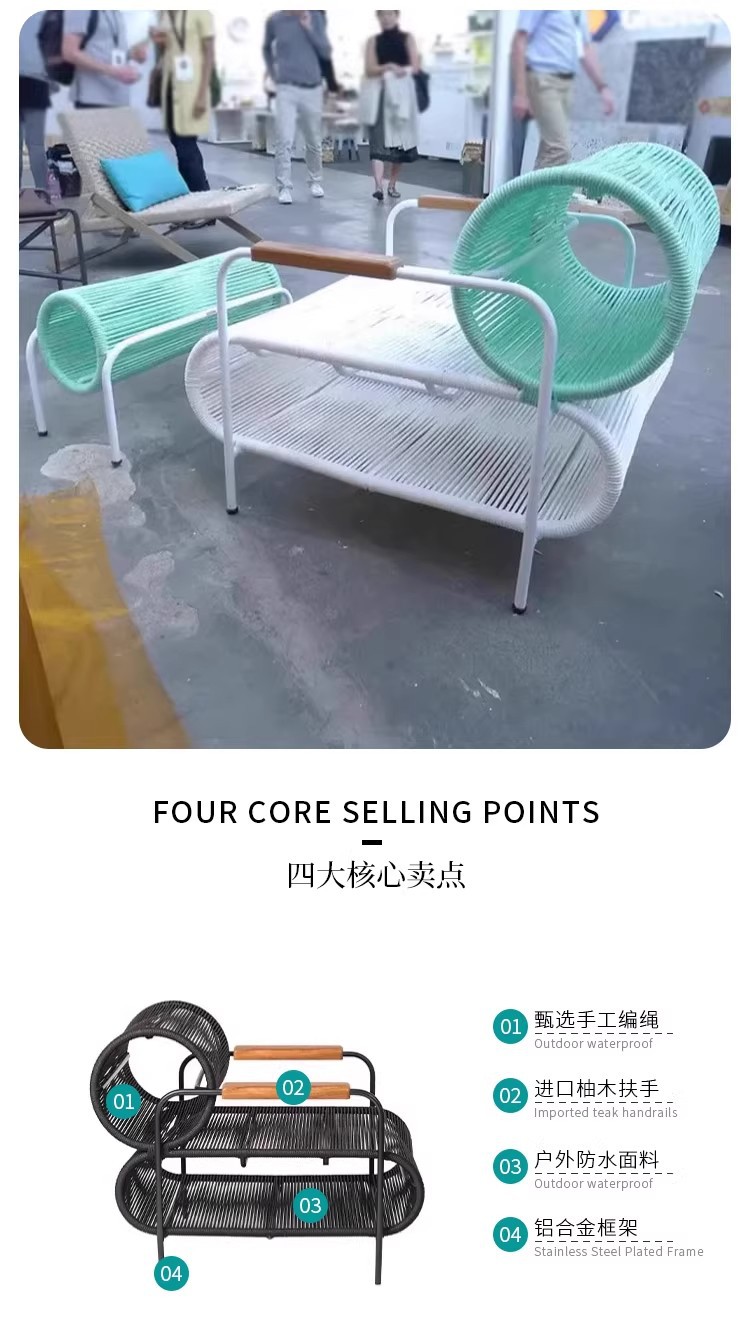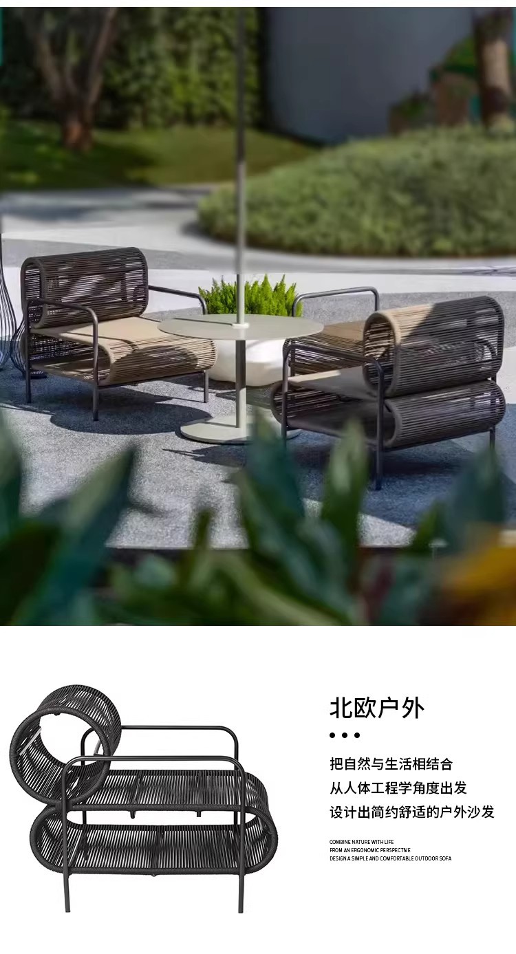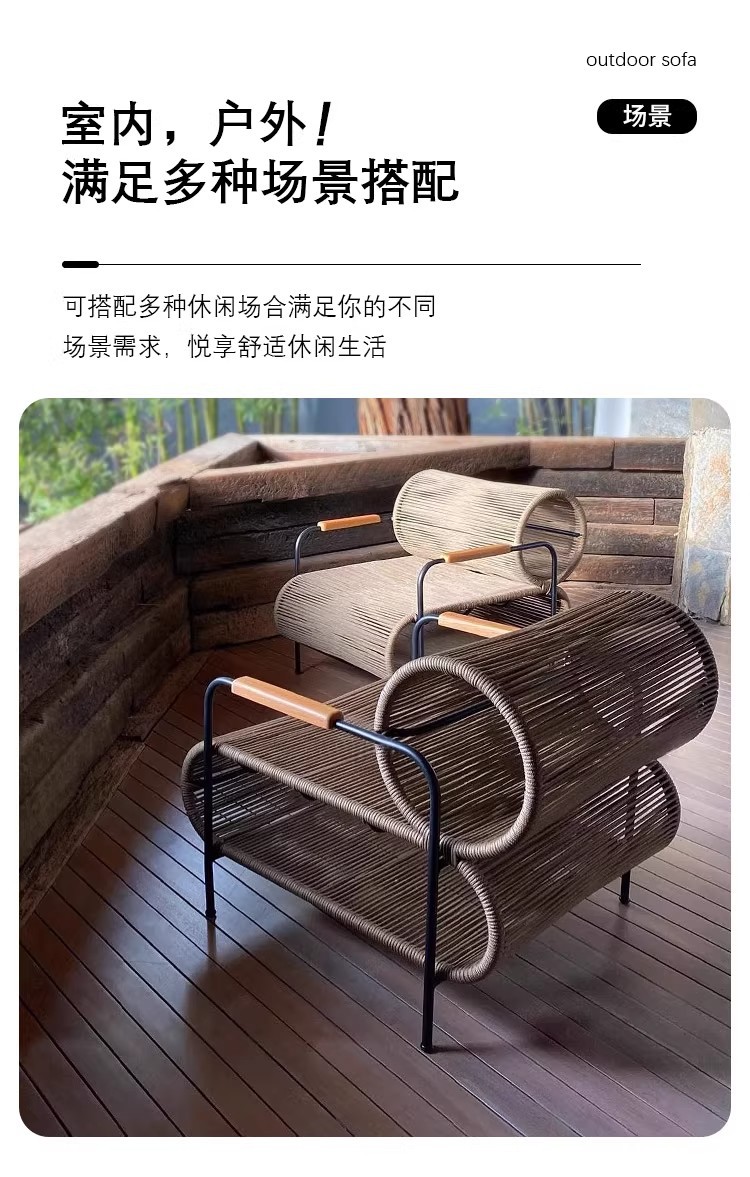 Balcón al aire libre silla de tela de caña terraza jardín villa de tela de cuerda silla de ocio sala de sol silla de caña ocio sofá combinación