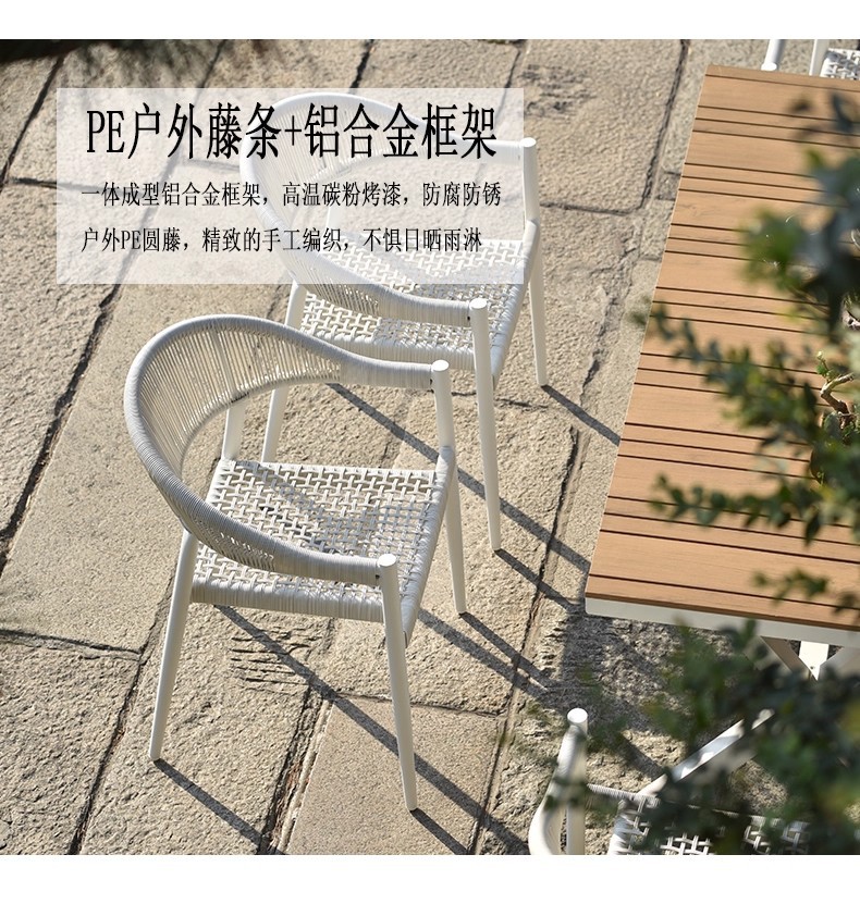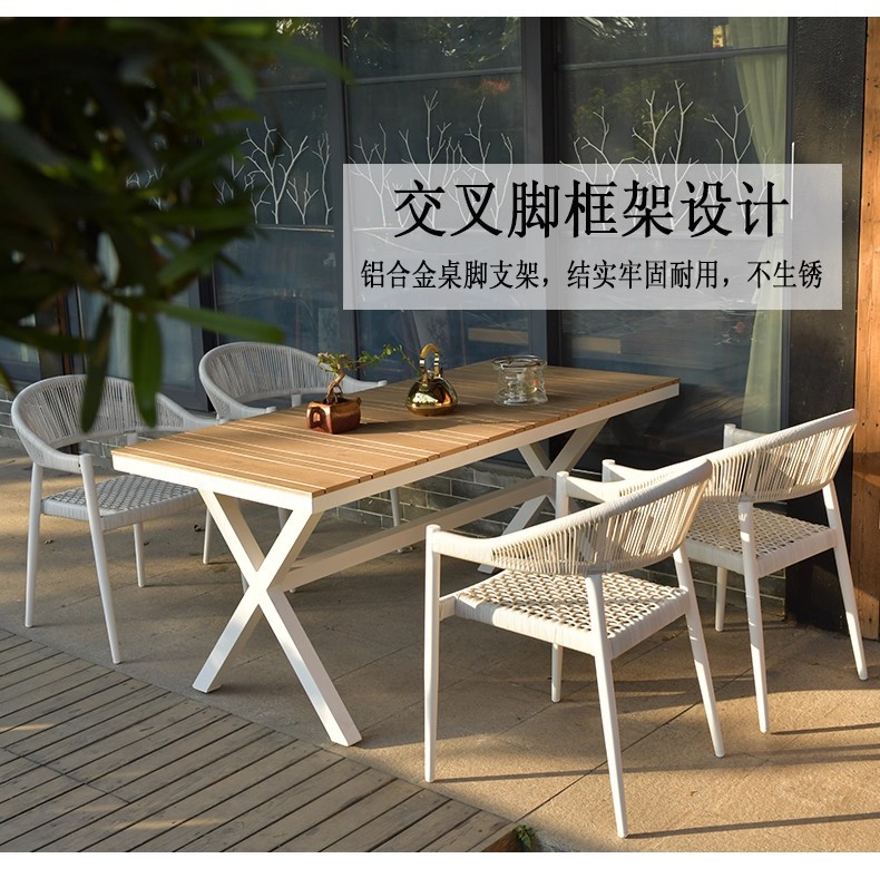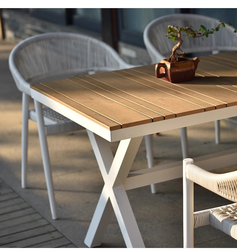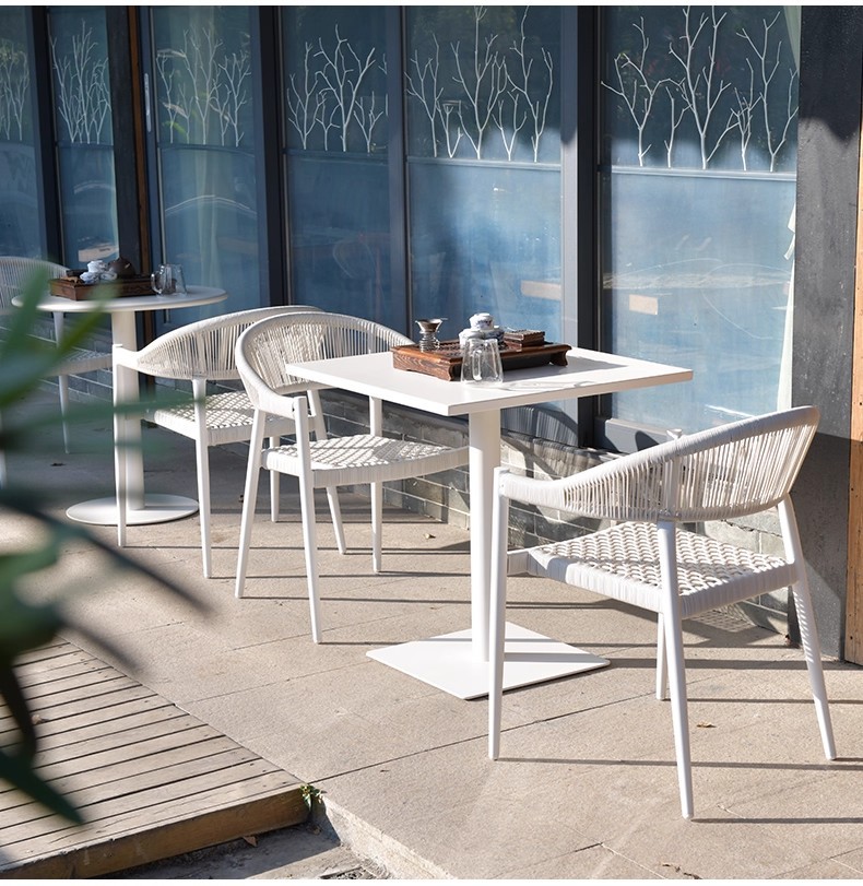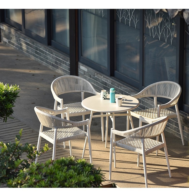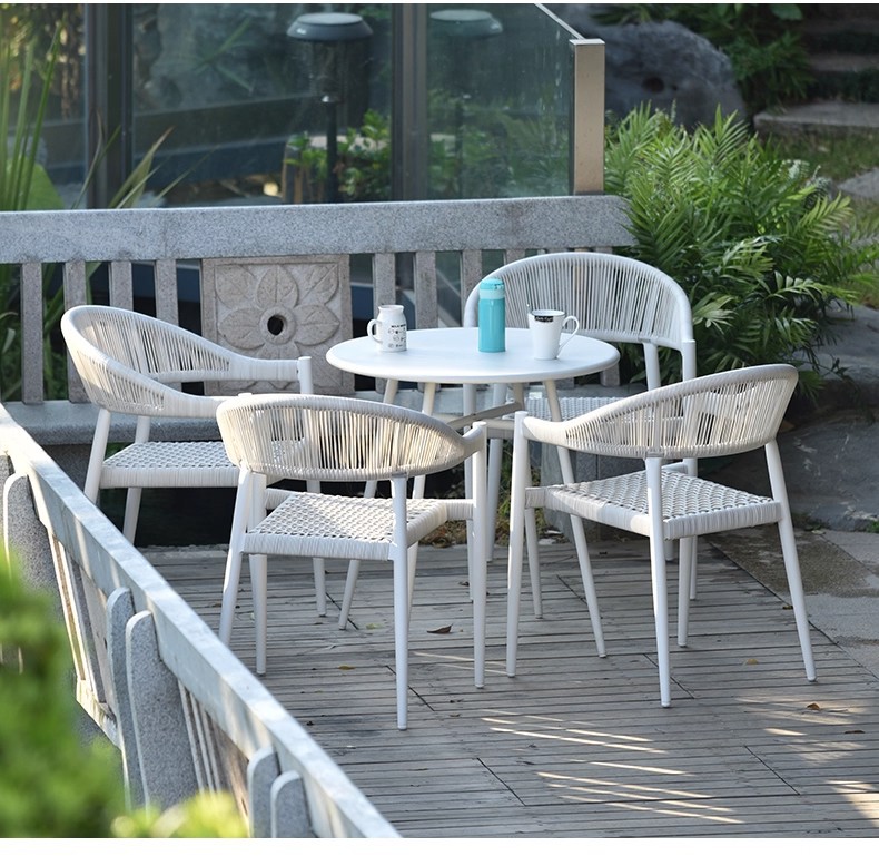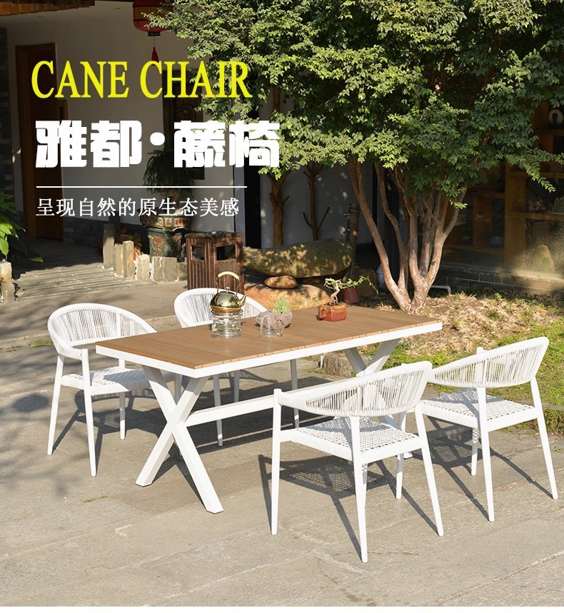 Mesa y silla al aire libre de tela de caña combinación de patio de hotel terraza jardín balcón café tela de caña mesa y silla de lujo al aire libre