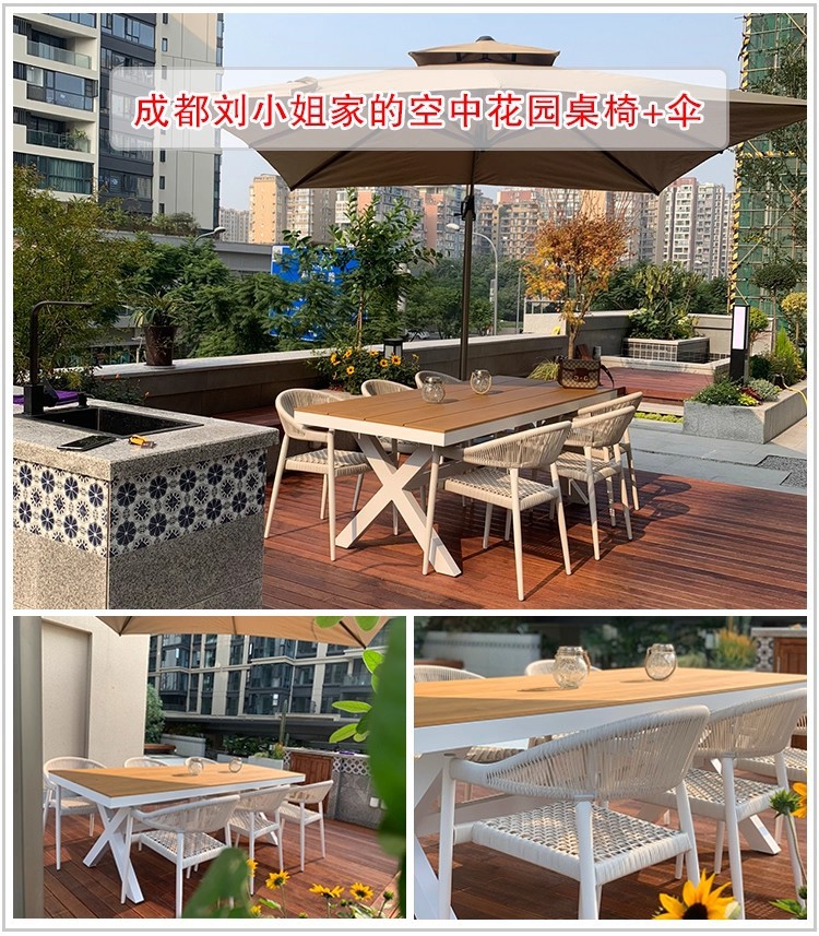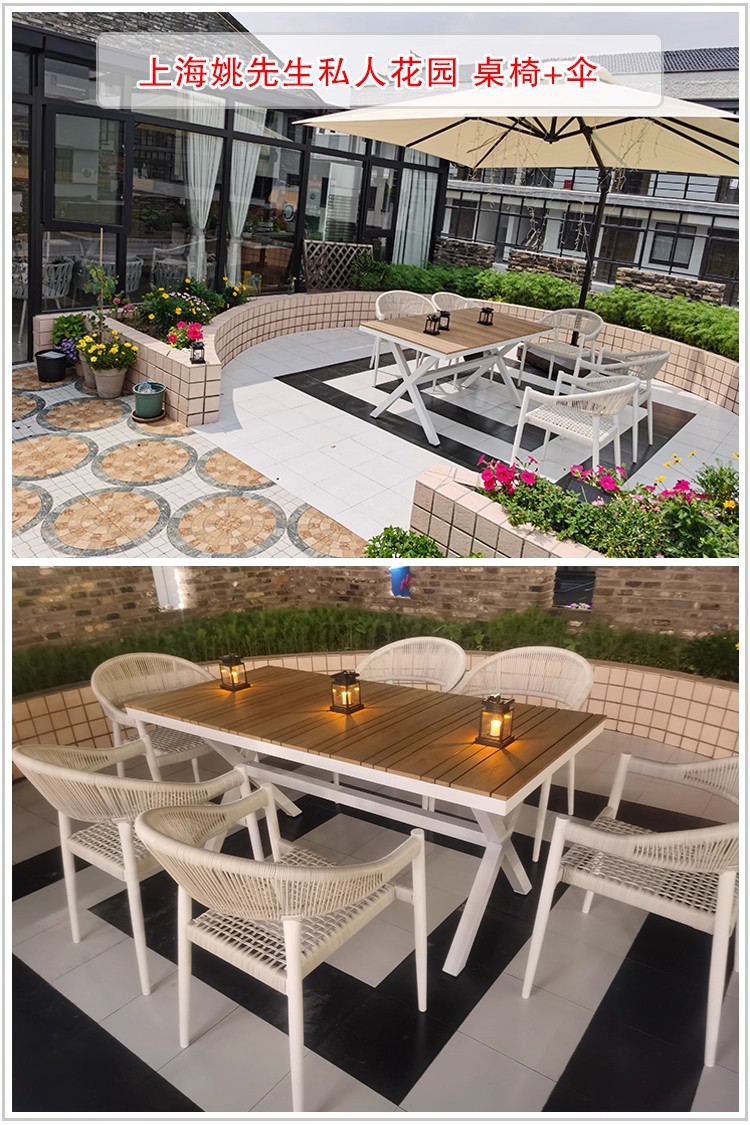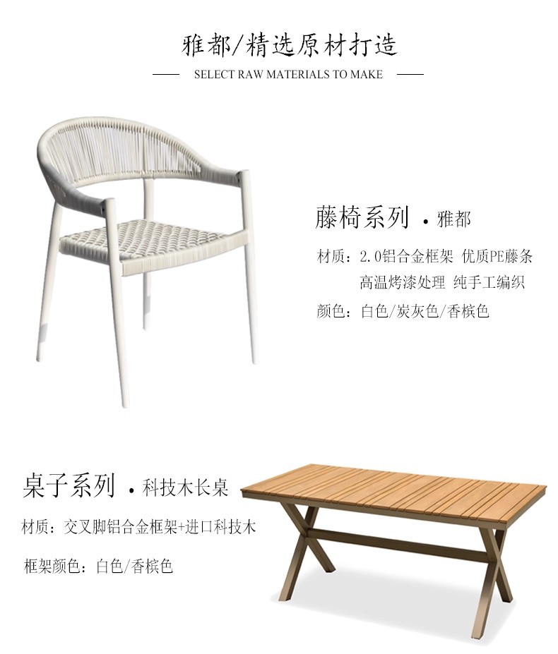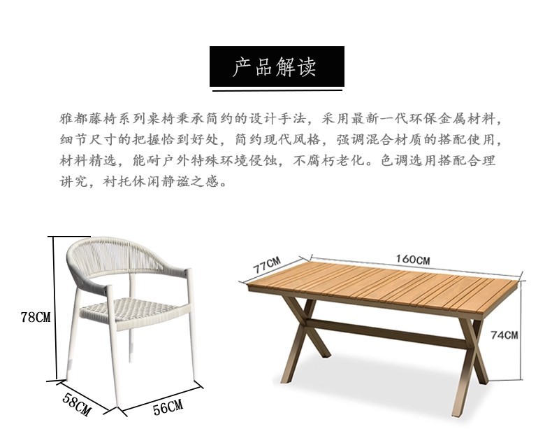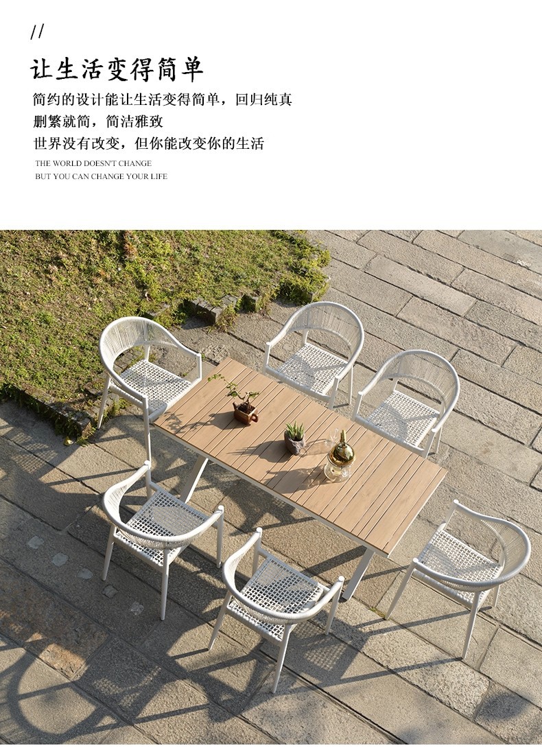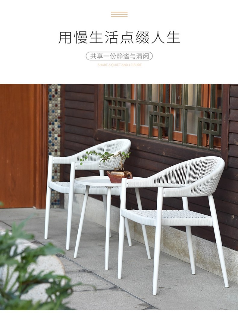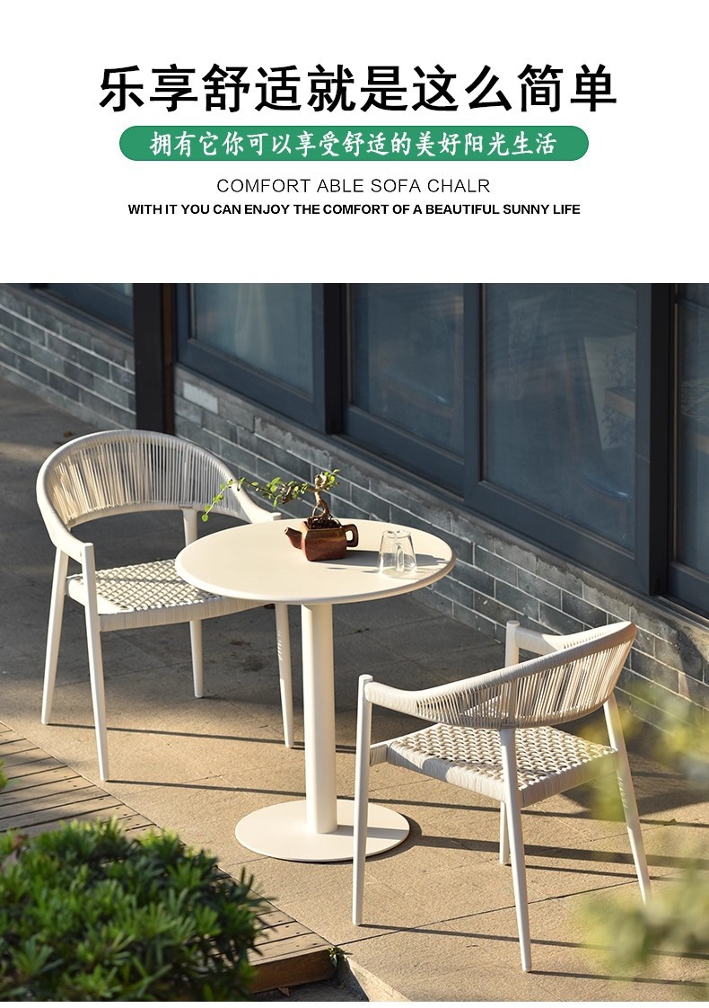 Mesa y silla al aire libre de tela de caña combinación de patio de hotel terraza jardín balcón café tela de caña mesa y silla de lujo al aire libre