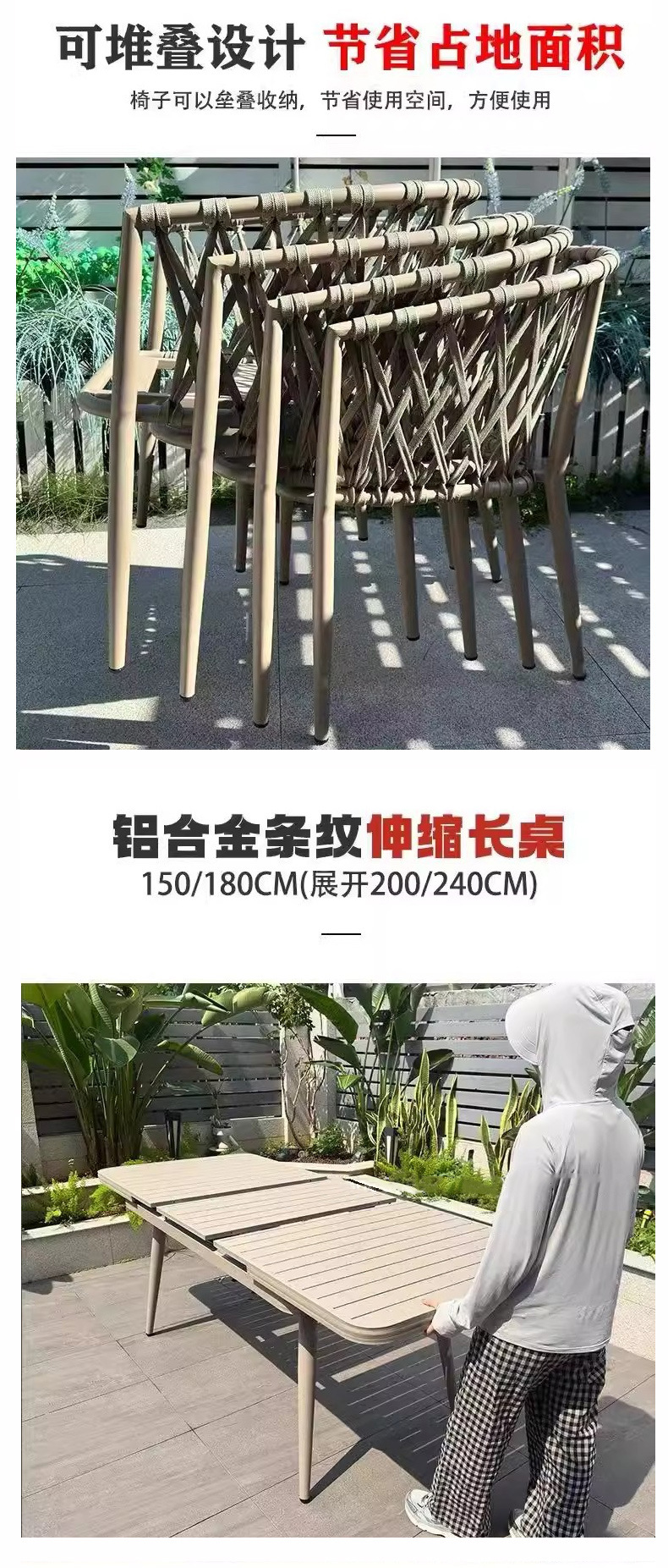 | Color | 2 sillas + mesa redonda de rayas de aluminio 90cm, 2 sillas + mesa redonda de rayas de aluminio 85cm, 4 sillas + mesa redonda de rayas de aluminio 90cm, 4 sillas + mesa redonda de rayas de aluminio 85cm, 4 sillas + mesa de rayas de aluminio 130 * 80cm, 4 sillas + mesa de rayas de aluminio 150 * 90cm, 6 sillas + mesa de rayas de aluminio 150 * 90cm, 6 sillas + mesa de rayas de aluminio 180 * 90cm, 8 sillas + mesa de rayas de aluminio 180 * 90cm, 8 sillas + mesa retráctil de aluminio 180 / 240 * 90cm, 10 sillas + mesa retráctil de aluminio 180 / 240 * 90cm, 12 sillas + mesa retráctil de aluminio 180 / 240 * 90cm |