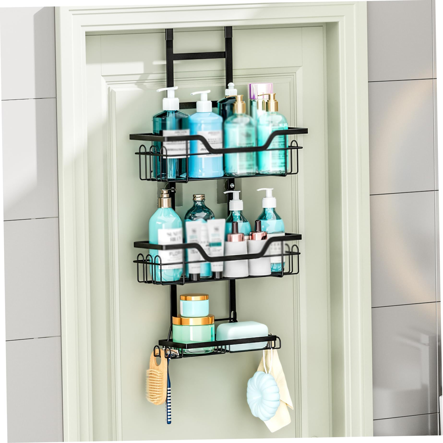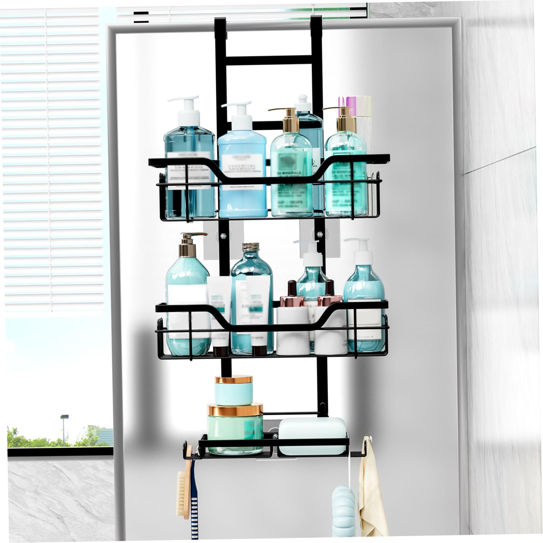 Estantes de baño de inodoro puerta de vidrio percha de inodoro negro almacenamiento de toallas percha de ducha cesta percha sin perforación