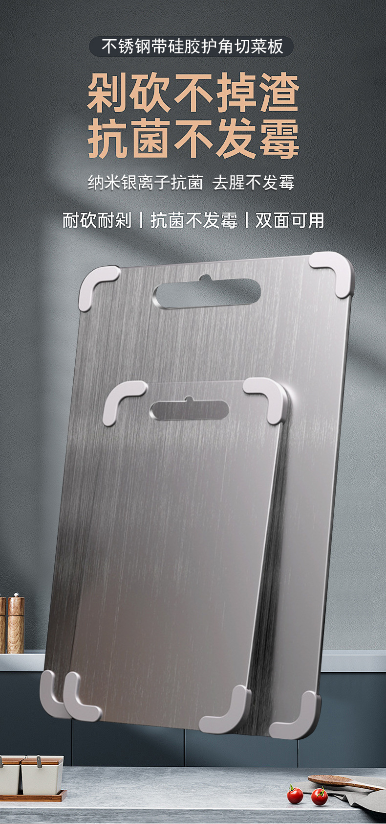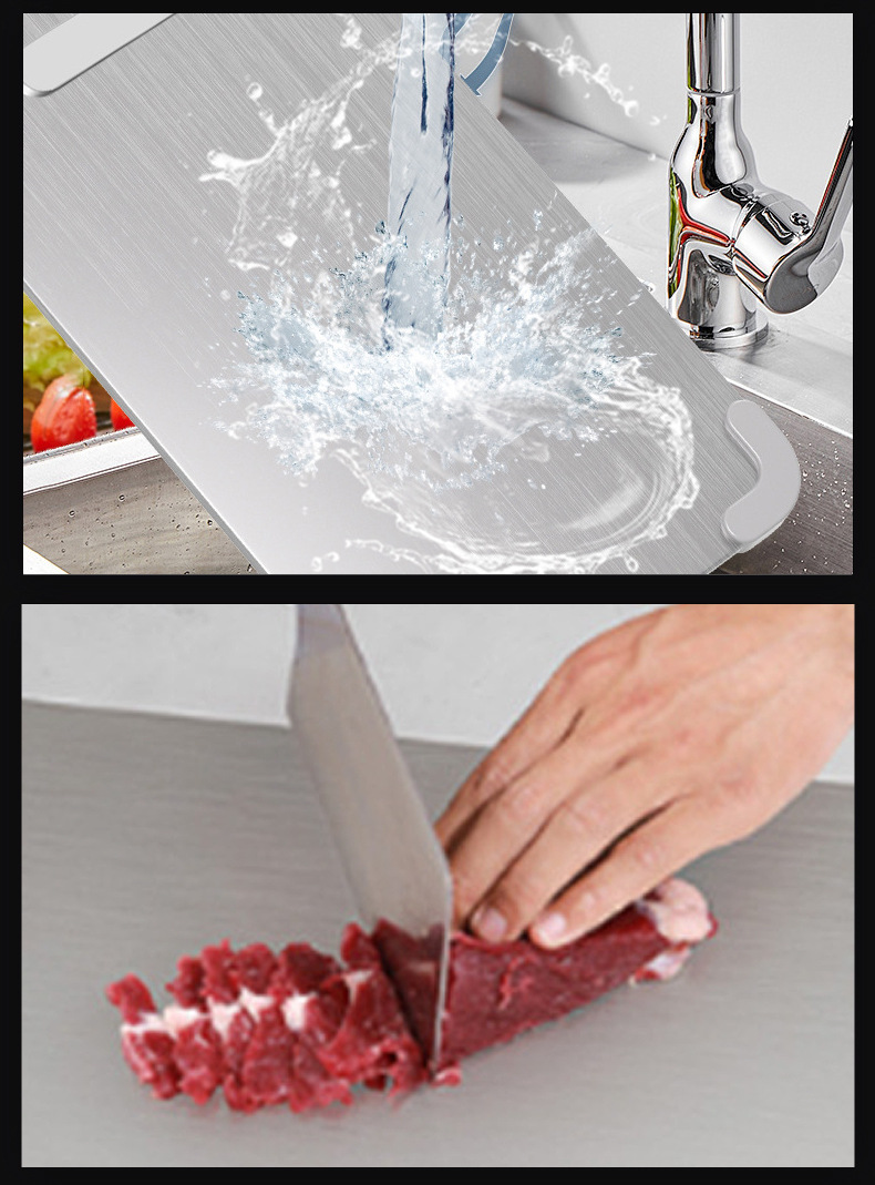 Cinturón antideslizante protección de esquinas de silicona tabla de cortar de acero inoxidable tabla de cortar de doble cara silicona creativa gruesa corte de carne panel de amasado de frutas