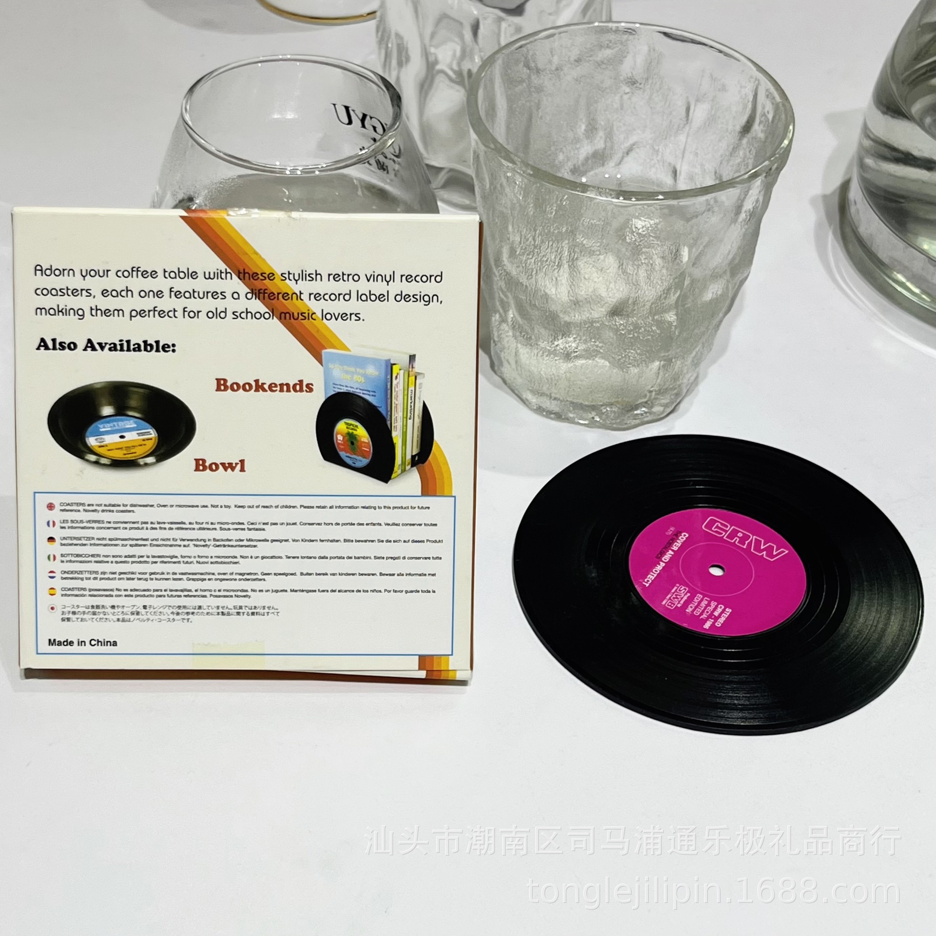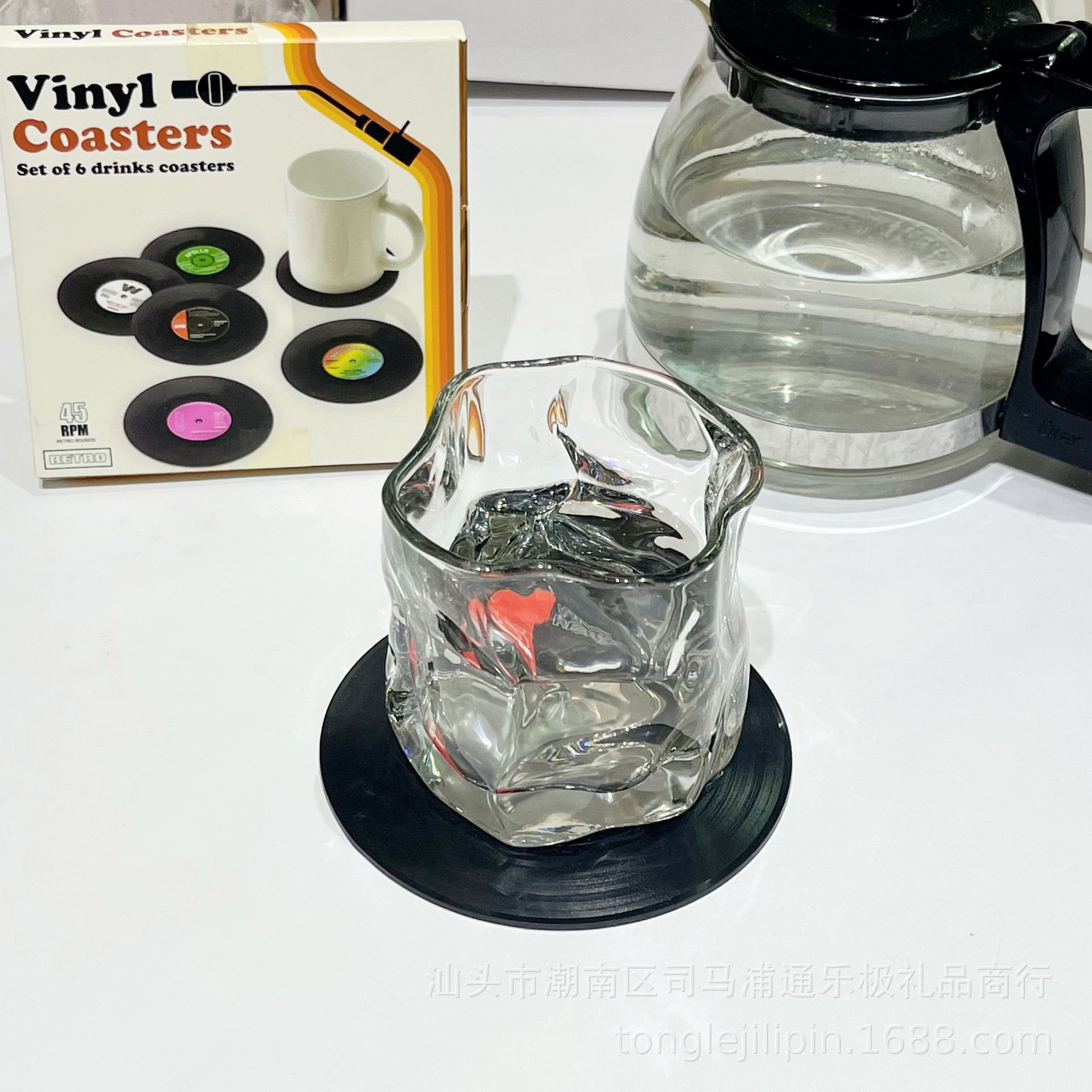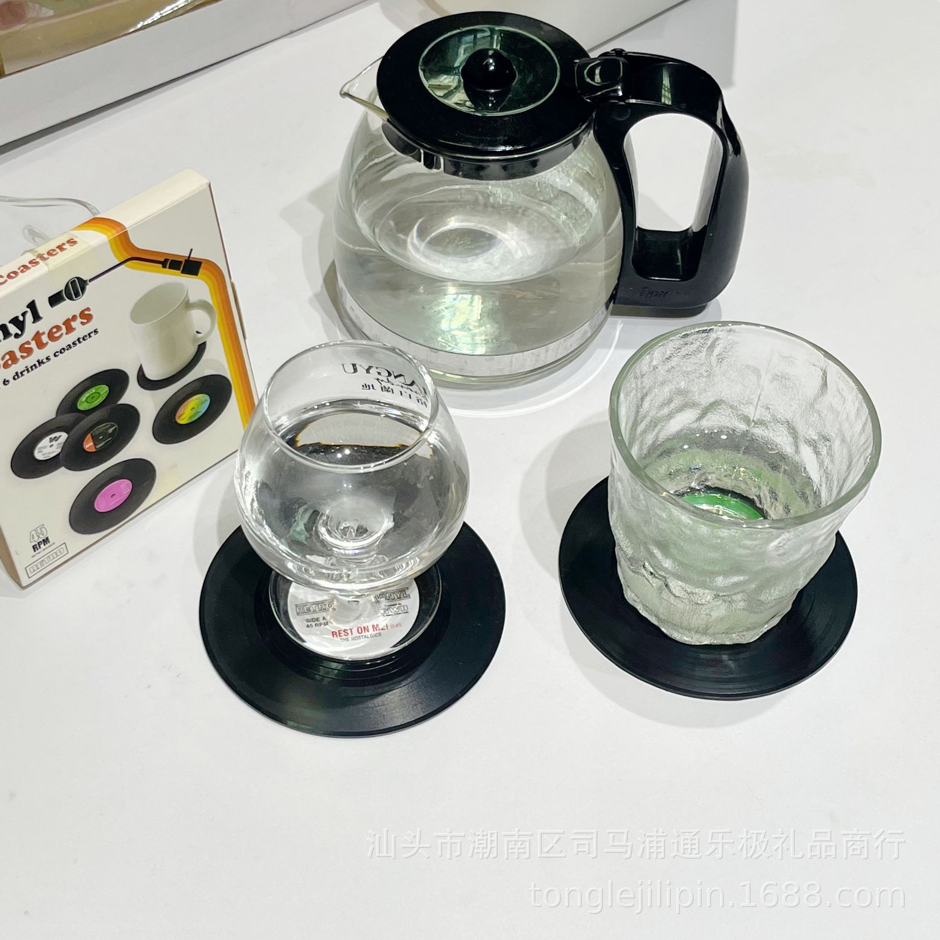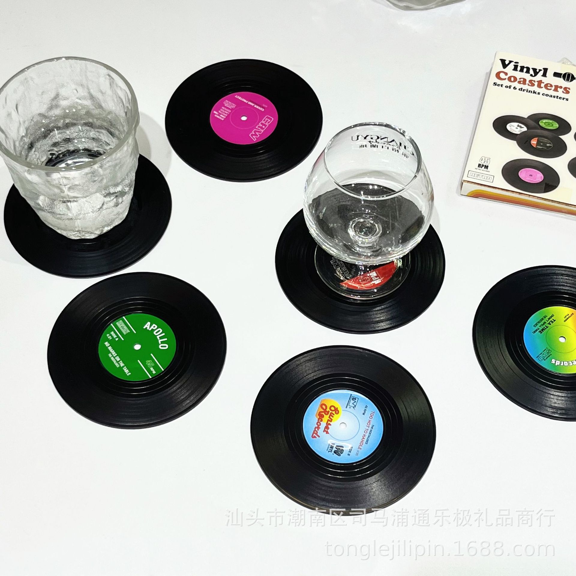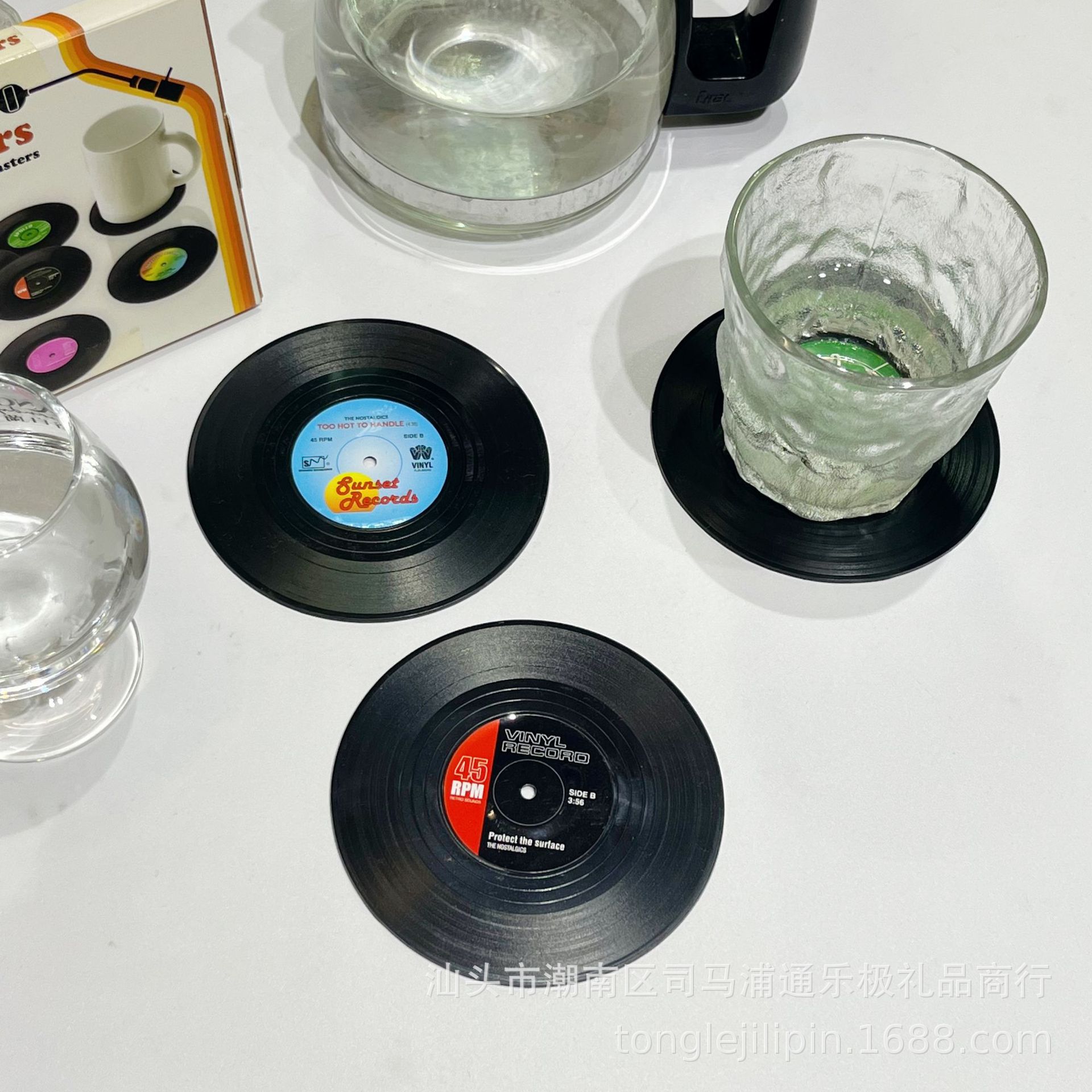 Posavasos de silicona transfronterizos, almohadillas retro para discos de vinilo y CD, almohadillas de aislamiento térmico, juego de seis piezas, posavasos redondos de aislamiento térmico