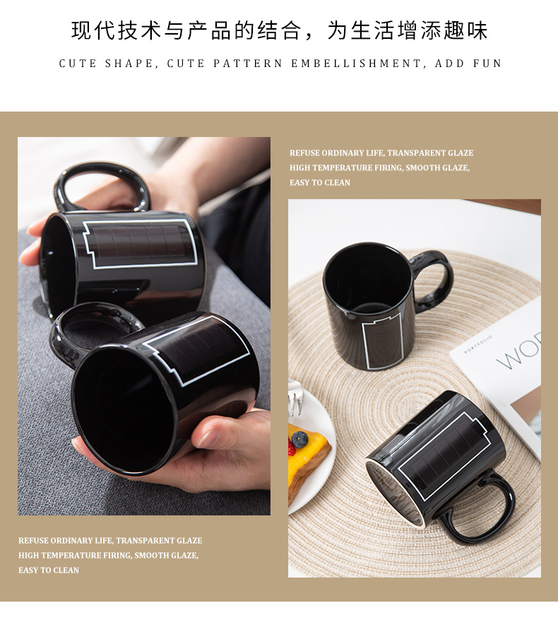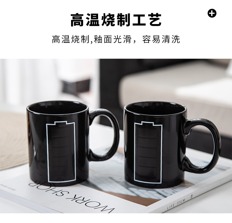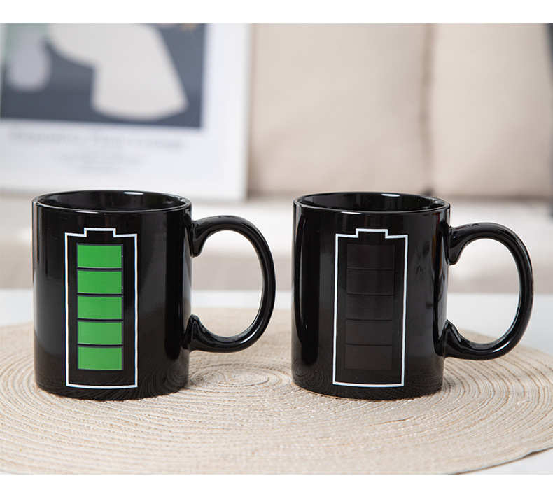 Fabricantes al por mayor de tazas de batería cambiantes de color tazas de marca de cambio de calor tazas de regalo de cerámica creativas tazas publicitarias tazas de sublimación en línea tazas