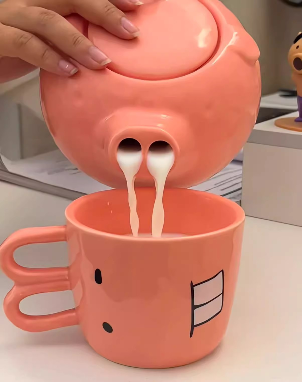 Cerrito cerámico tetera de agua divertida nariz de cerdo tetera de agua corriente para enviar a una amiga regalos de recitación taza de agua divertida cabeza de cerdo té