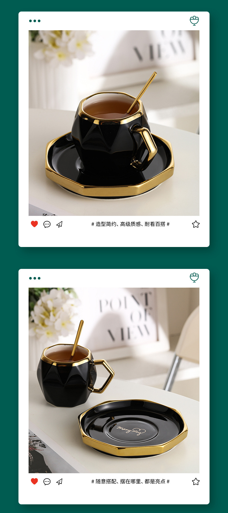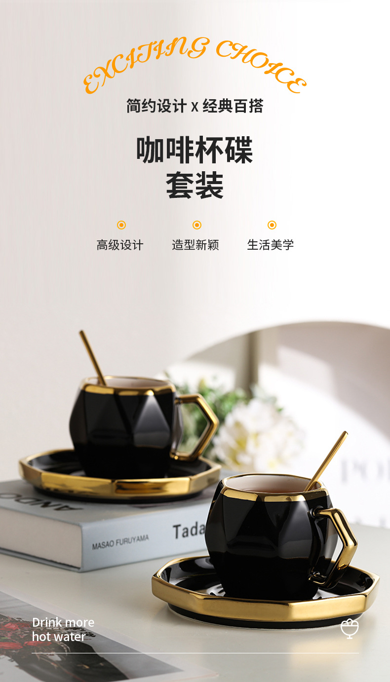 Juego de tazas de café estilo lujo ligero (taza + plato)