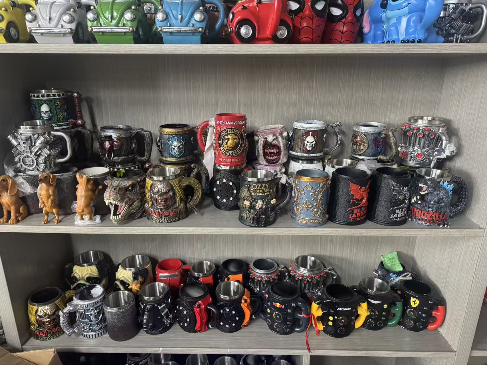 | Color | Bujilla, taza motosierra, taza antorcha de la Libertad, taza bar, taza destructora, taza esqueleto, taza murciélago, alienígena blanca, alienígena negra, taza bala, Bigfoot A, Bigfoot B, taza浣ón, taza búho, V8, rojo, V6, marca de flor de canibal, cuento extraño, taza neumático negro, taza neumático de color, taza de fútbol, taza turbina, motor v12, taza de veteranos, taza estrellada, taza de boxeo - rojo, taza de boxeo - azul |