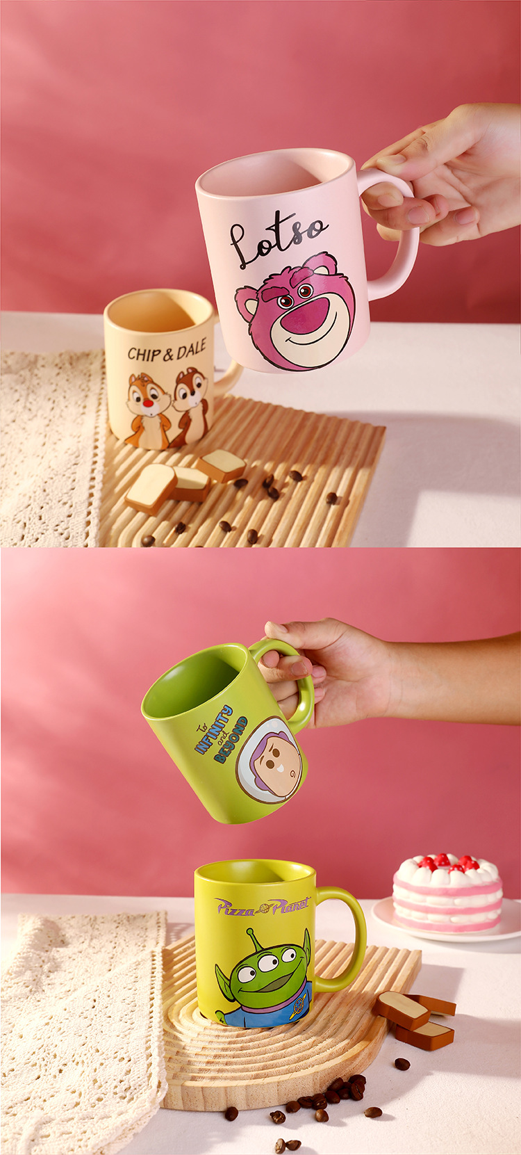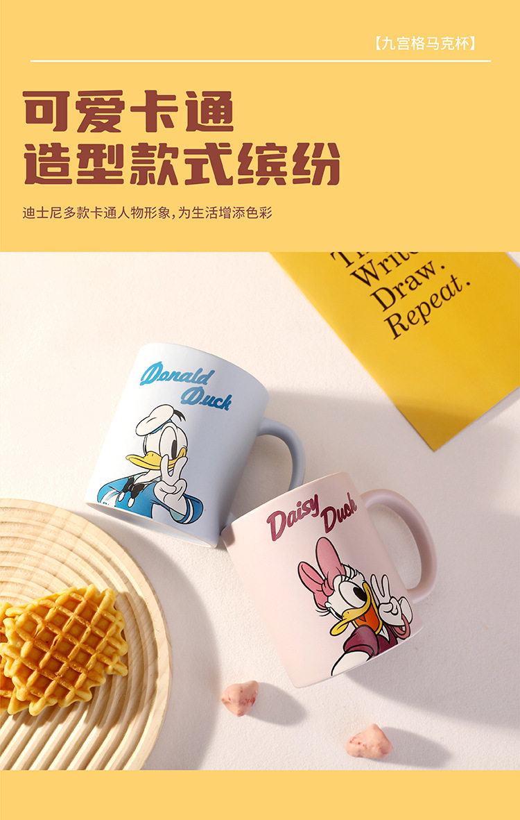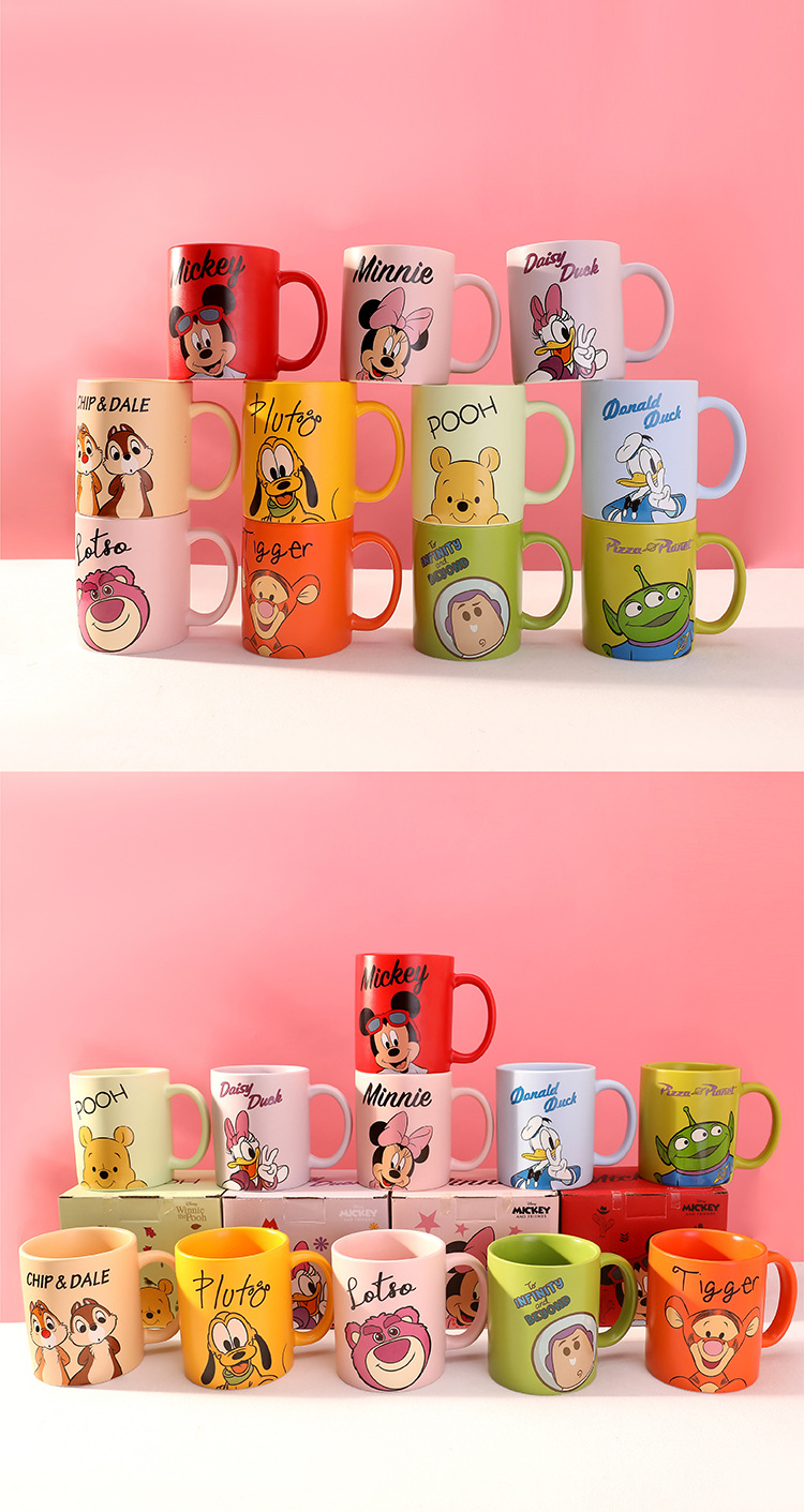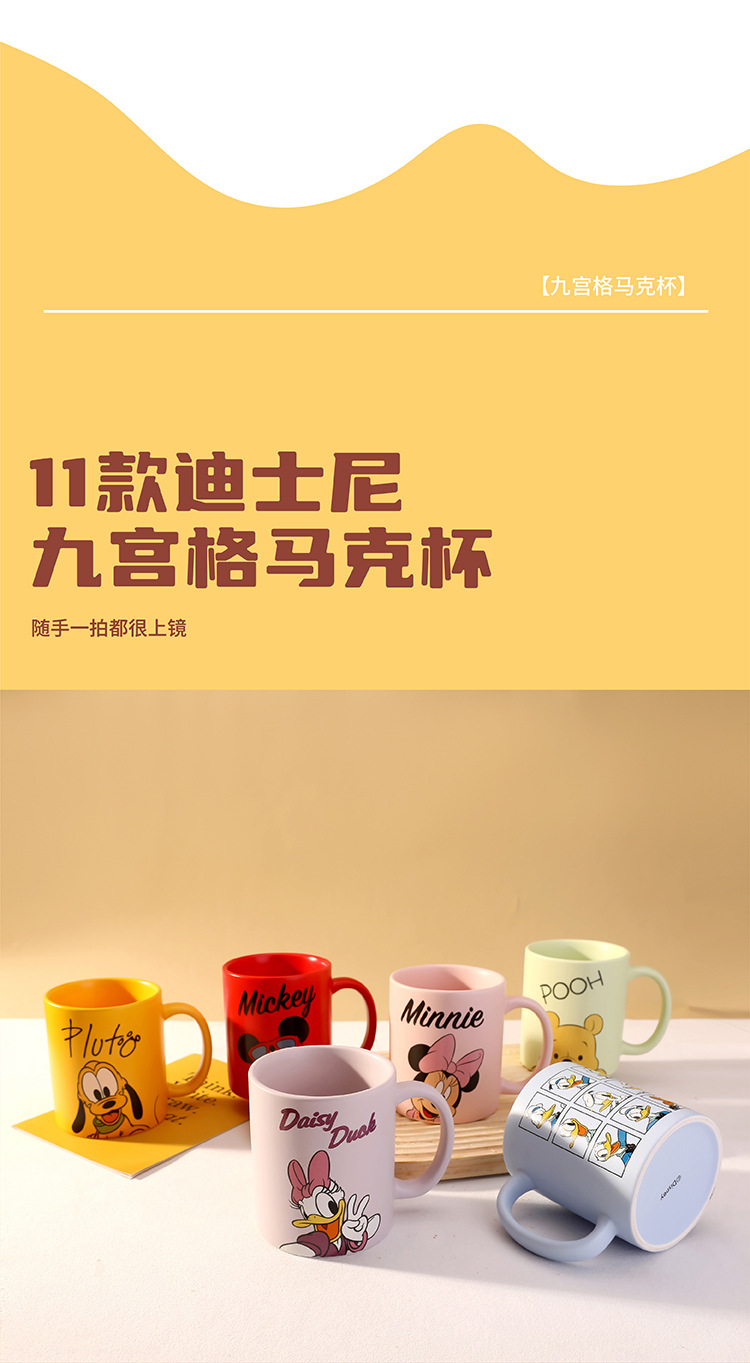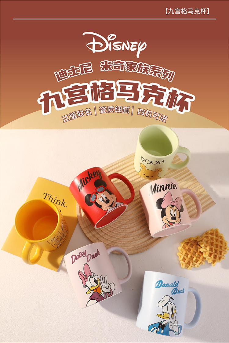 Taza de cerámica de Disney 360ml taza de cuadrícula de nueve palacios dibujos animados lindo al por mayor taza linda leche de gran capacidad