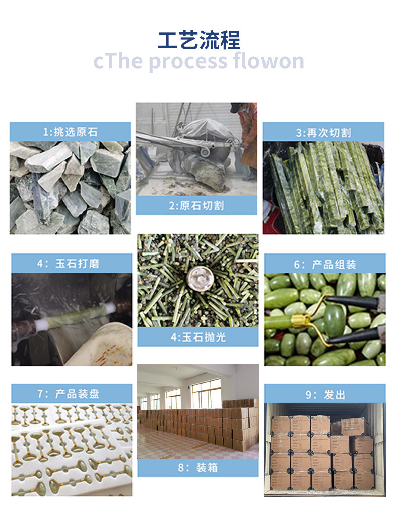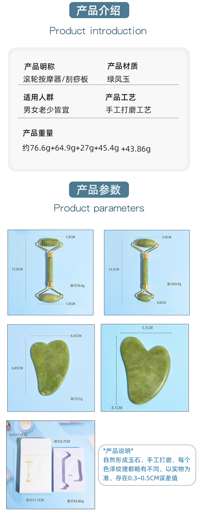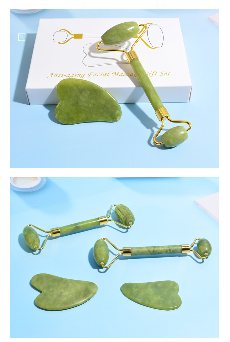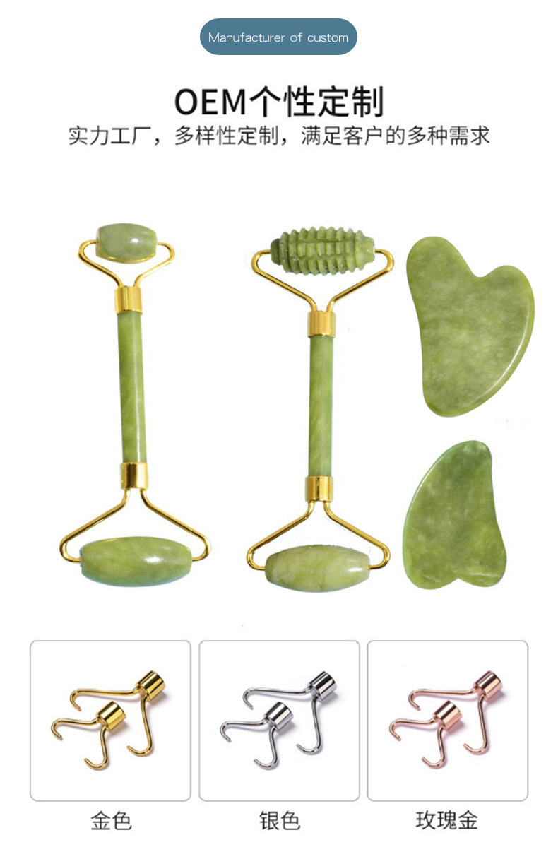 Fábrica de fuentes masajeador facial de jade natural, empujador facial de belleza facial, conjunto de placa de rueda de jade