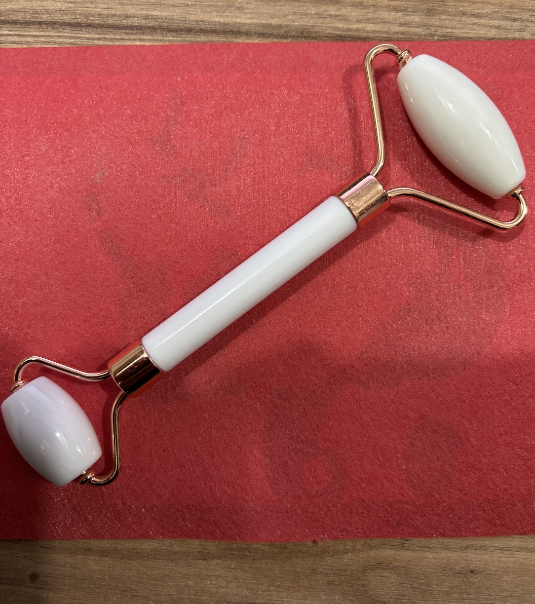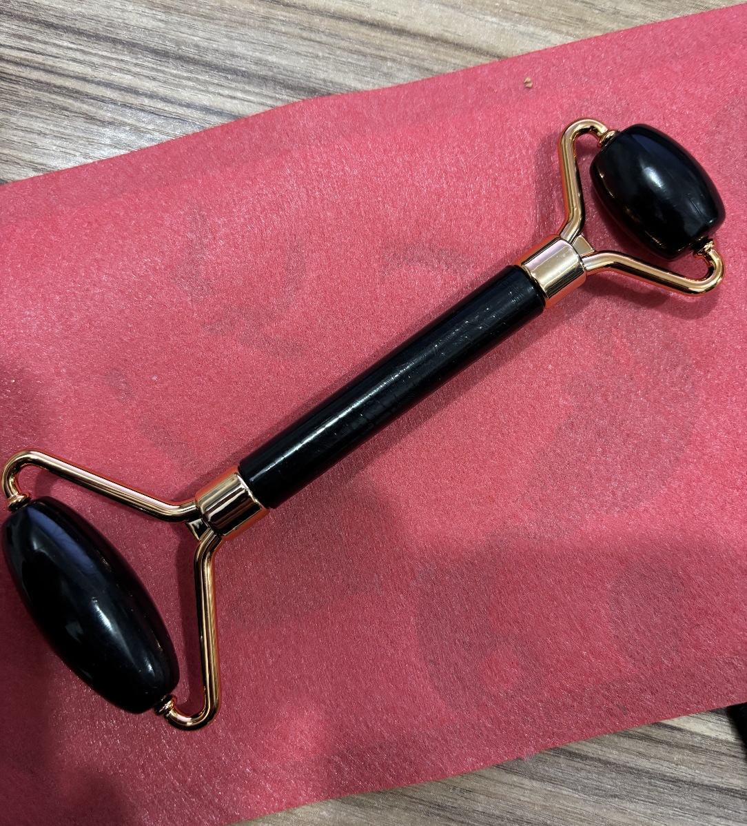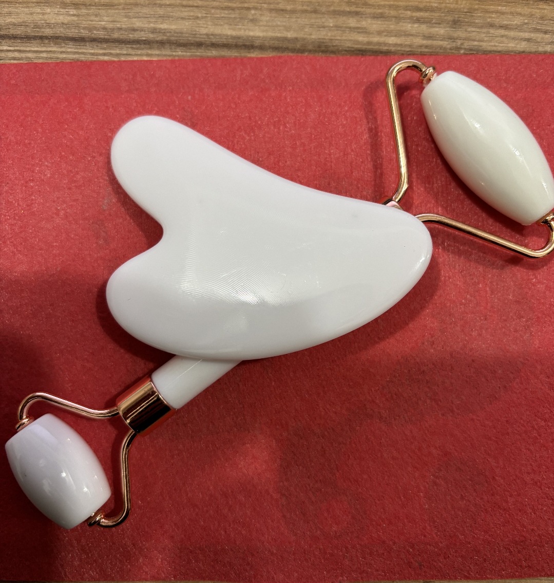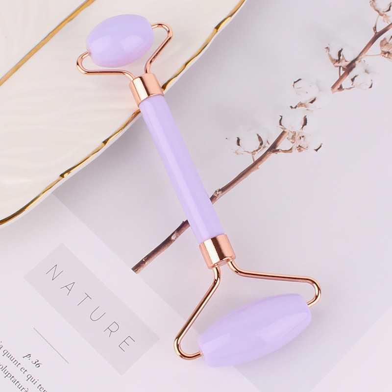 masajeador de rodillos de cristal de polvo en forma de corazón, masajeador de rodillos de doble cabeza, placa de belleza facial de cristal rosa