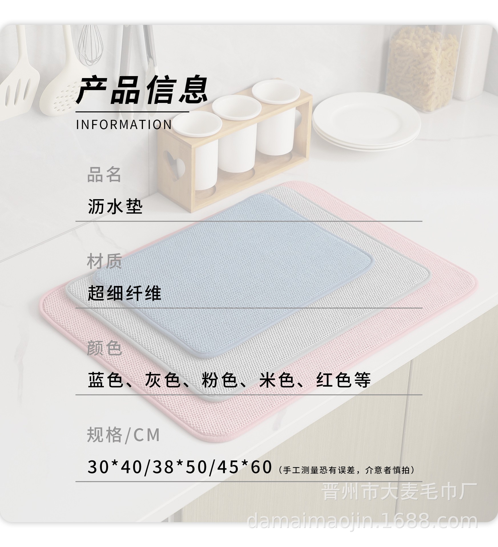 Almohadilla de drenaje de cocina transfronteriza, aislamiento térmico a prueba de escaldaduras, material de microfibra, almohadilla de secado para vajilla, mantel de aislamiento térmico, absorción de agua, secado rápido