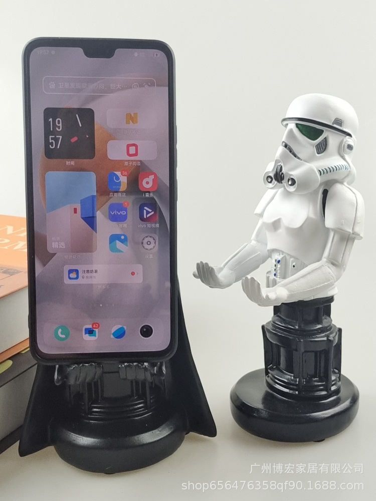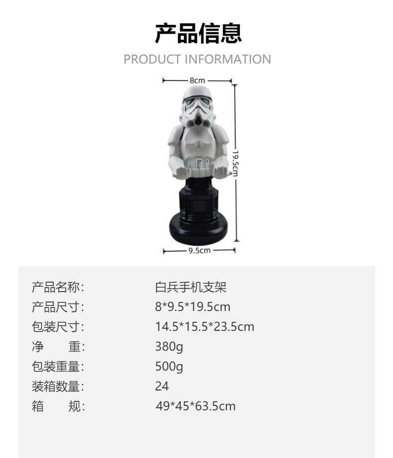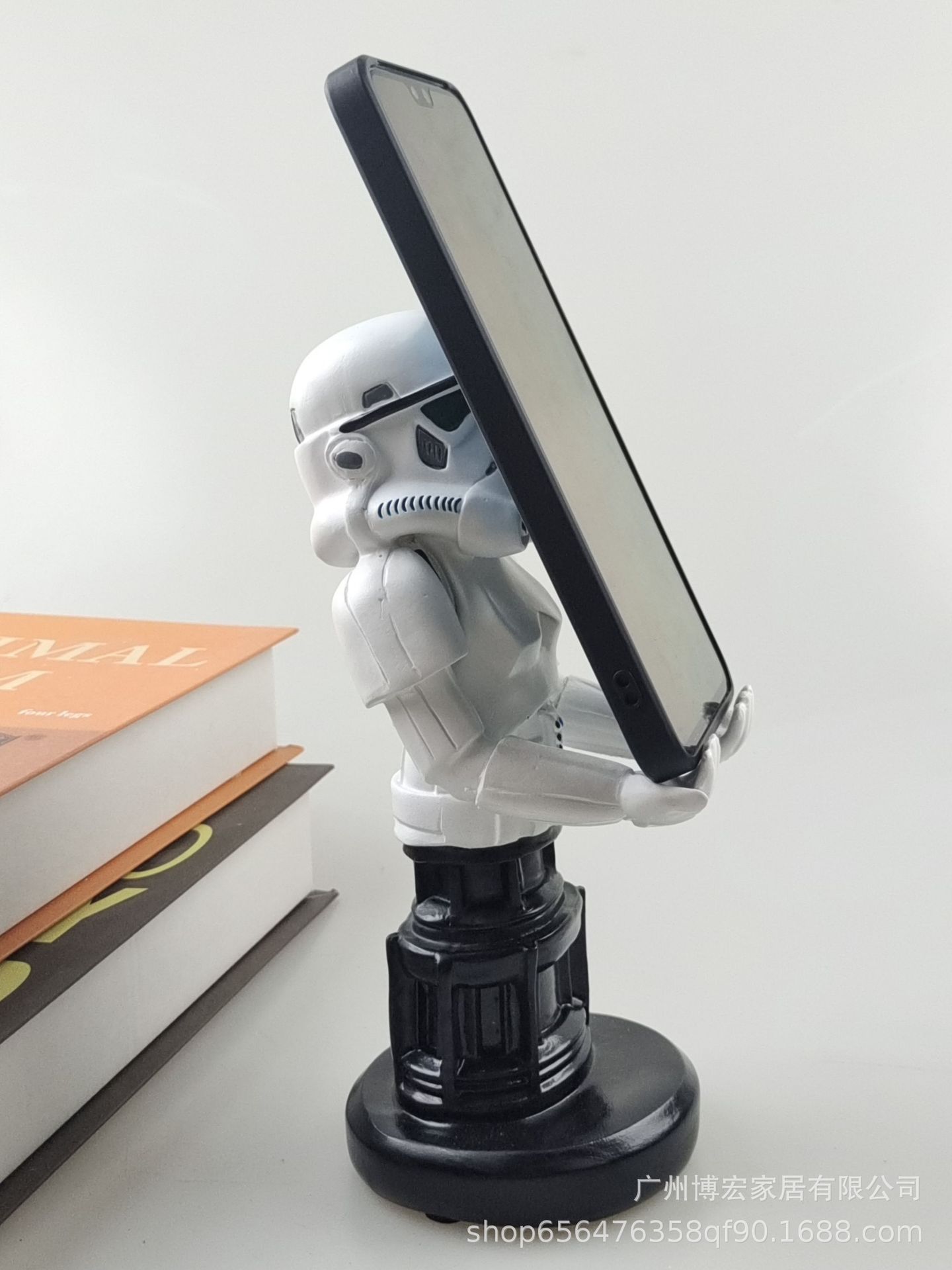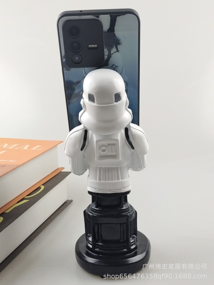 Star Wars Black Warrior White Soldier Helmet Adornos Modelo Soporte para teléfono móvil Soporte para teléfono móvil personalizado Soporte para teléfono móvil
