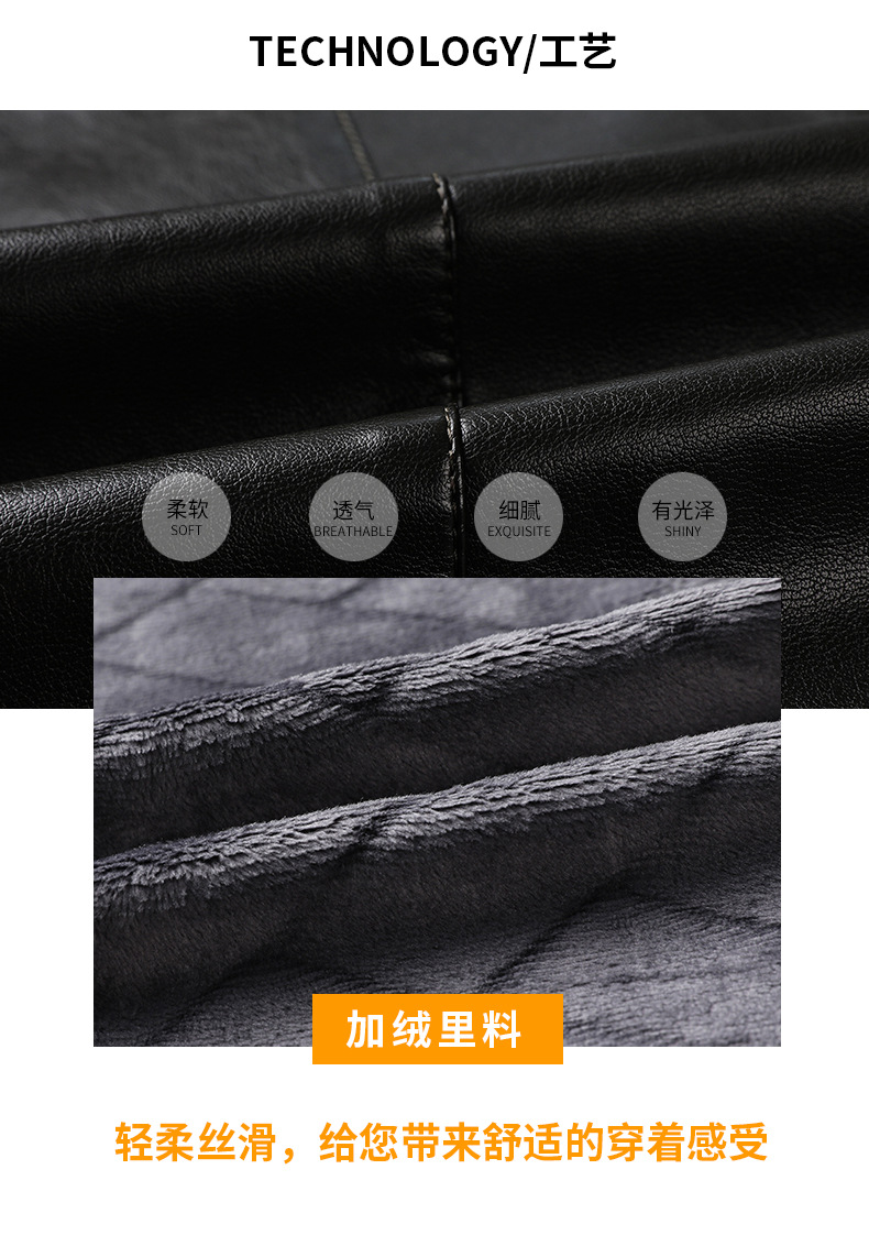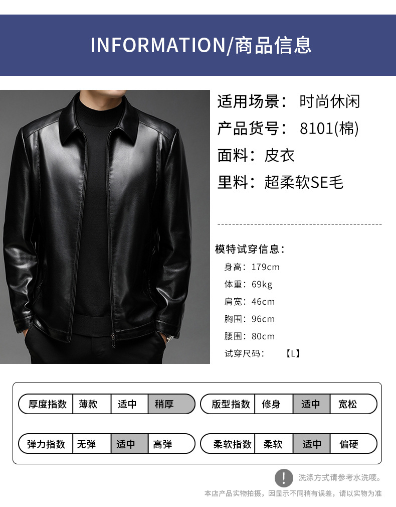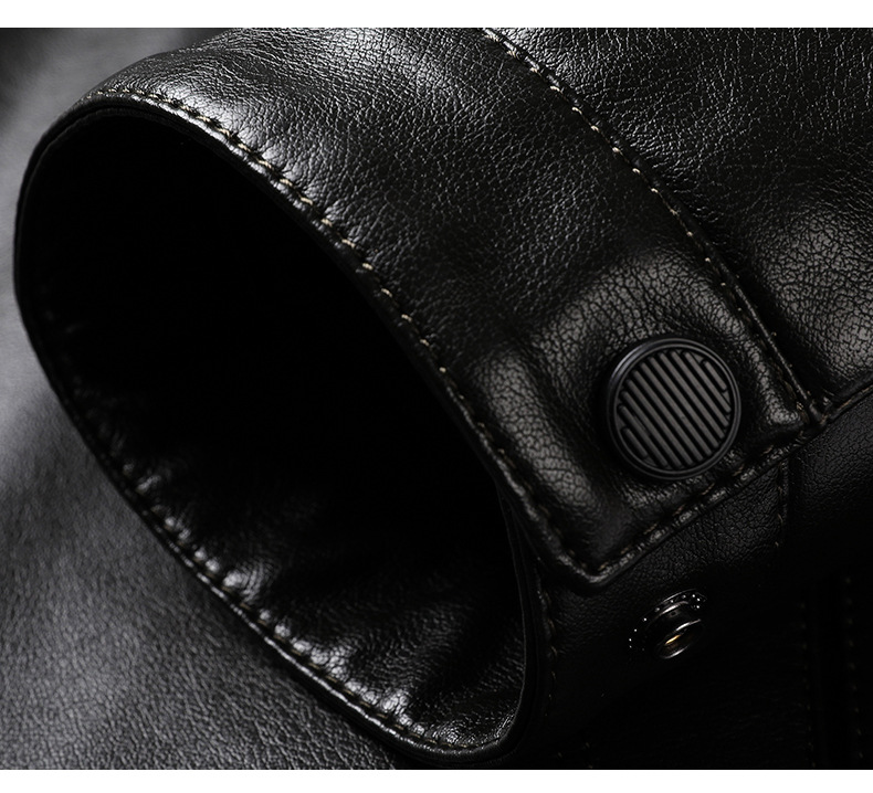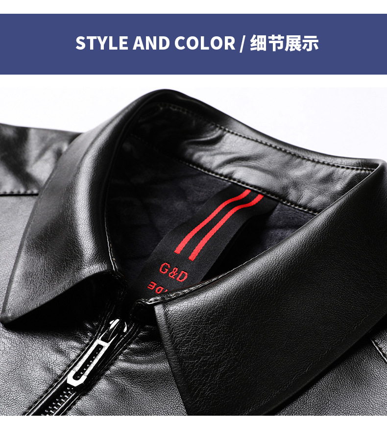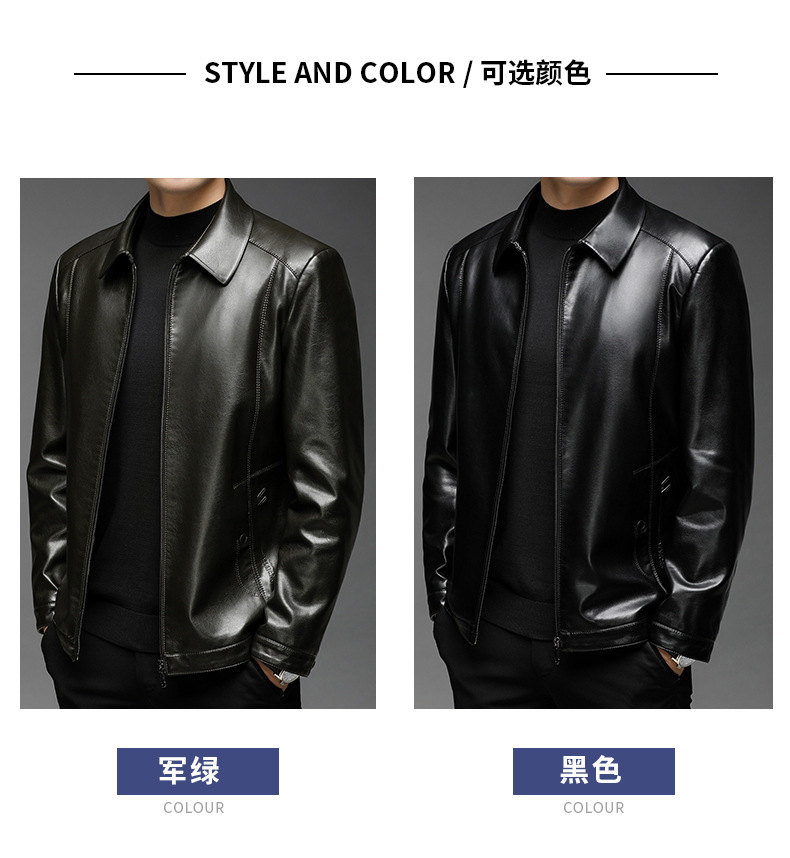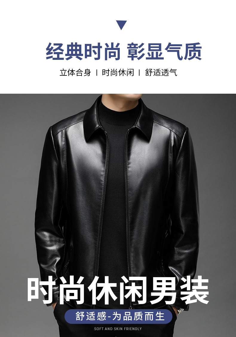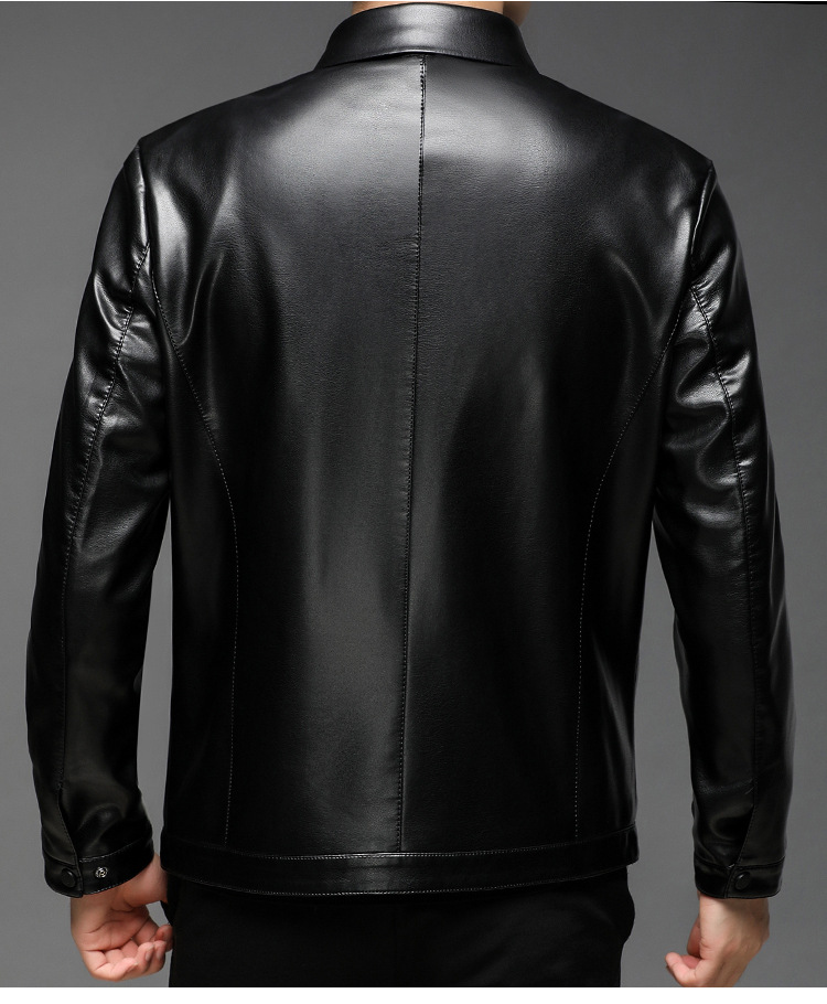 Chaqueta de cuero de hombre, chaqueta de cuero suave, invierno y otoño, vello con tapa gruesa, chaqueta de cuero de lana de mediana edad.