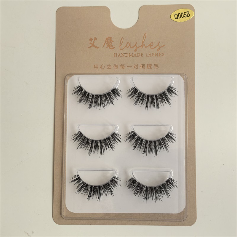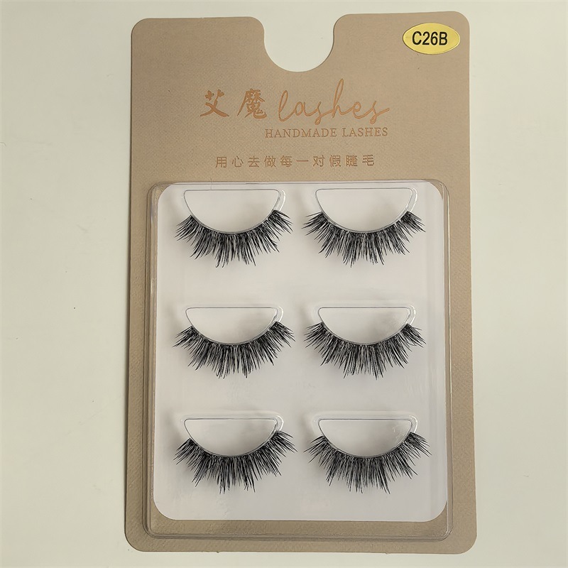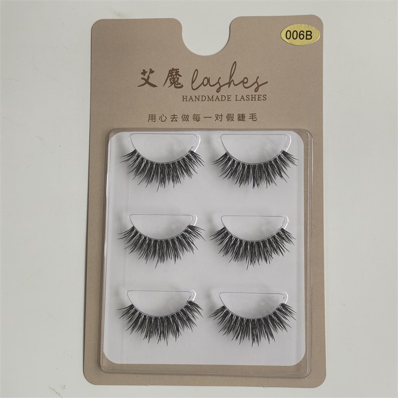 Ai Mo Pestañas postizas nuevas europeas y americanas, simulación gruesa, rizada, pelaje de varios niveles, tallo 3d esponjoso, hilo de seda fino, tallo transparente