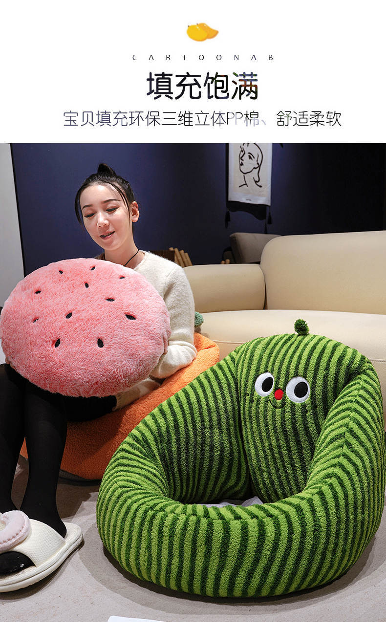 Caricatura encantadora cojín de sofá perezoso sofá de oficina medio rodeado cintura suave en un cojín de futón
