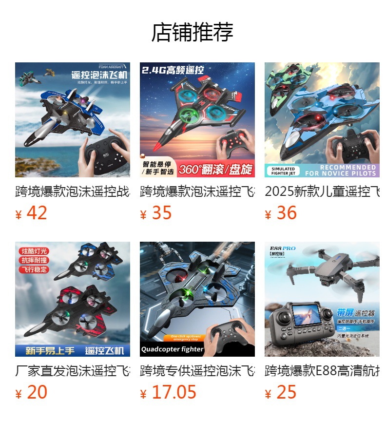 | Color | Avión de combate de cuatro alas de seis generaciones - azul, Avión de combate de cuatro alas de seis generaciones - verde, Avión de espuma H22 - rosa, Avión de espuma H22 - azul, Avión de espuma H22 - verde, Accesorios de avión [batería] |