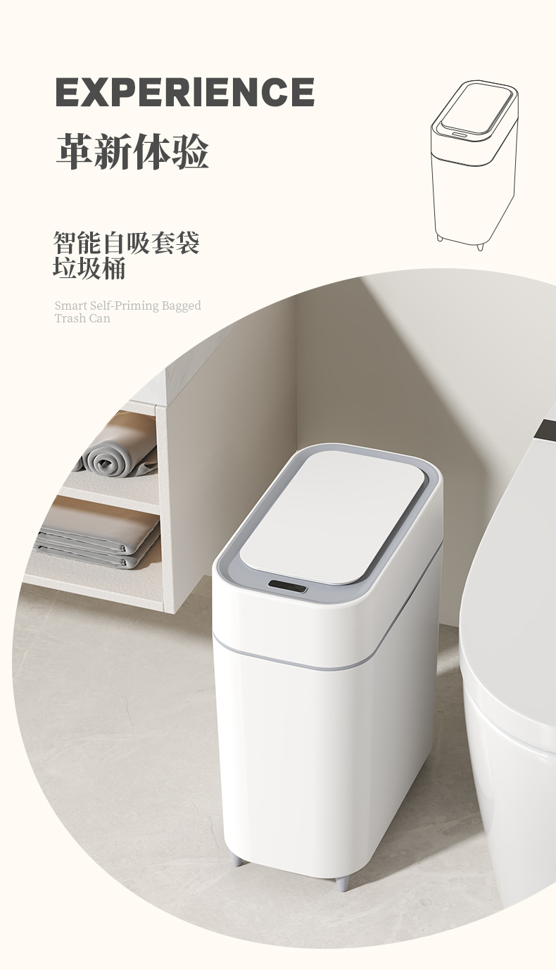 Basura inteligente de doble arte, bolsa de autoaspiración doméstica de alto nivel, contenedor de basura con cubierta, contenedor de basura de apertura y cierre de inducción de sala de estar