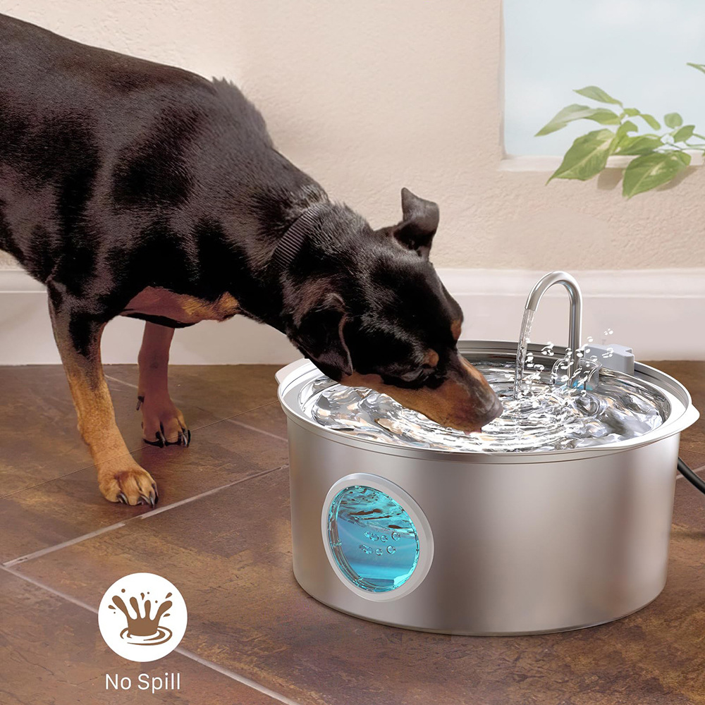 Explosiones transfronterizas 7L de acero inoxidable para mascotas tipo pista redonda de gran capacidad LED para gatos y perros