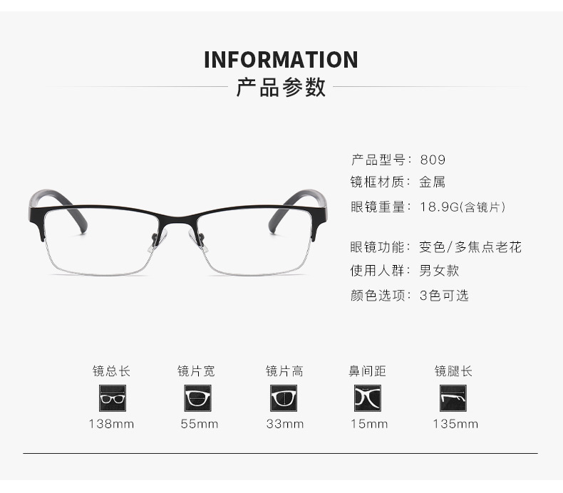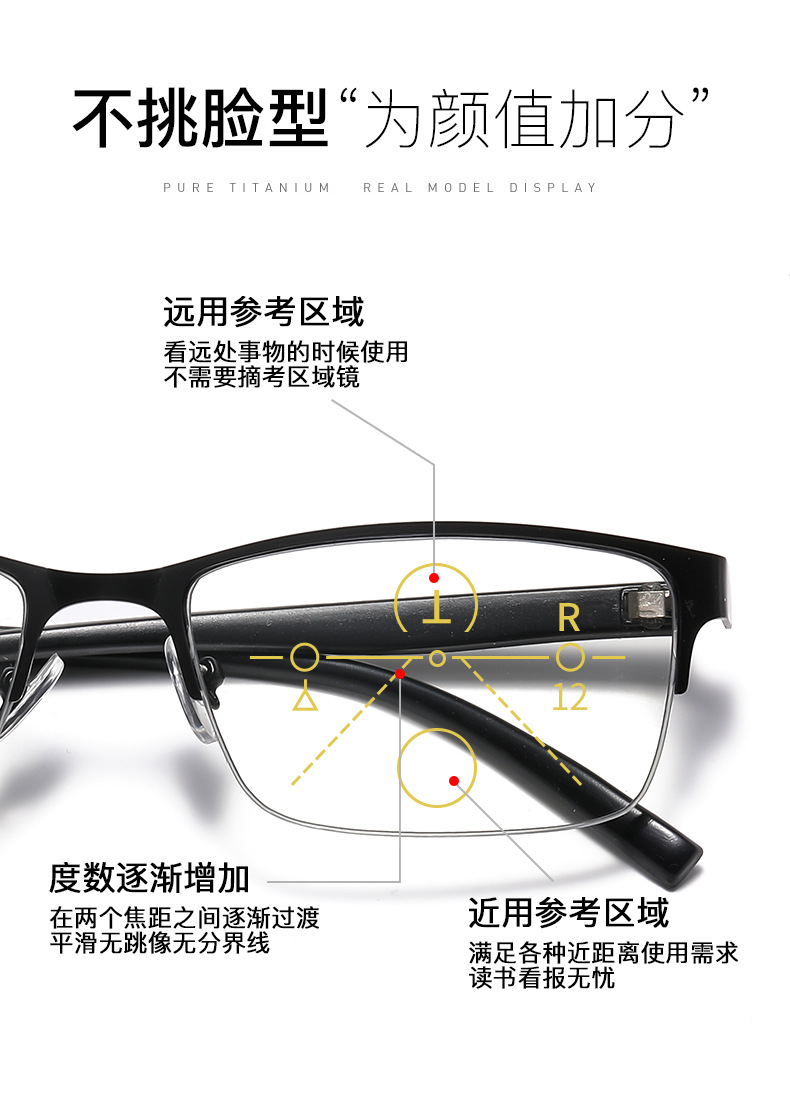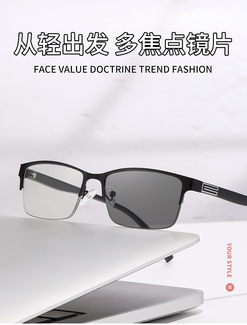 Fotoscopia multifocal gafas de edad medio marco hombre anti-luz azul transfronteriza marco de gafas de edad clásica