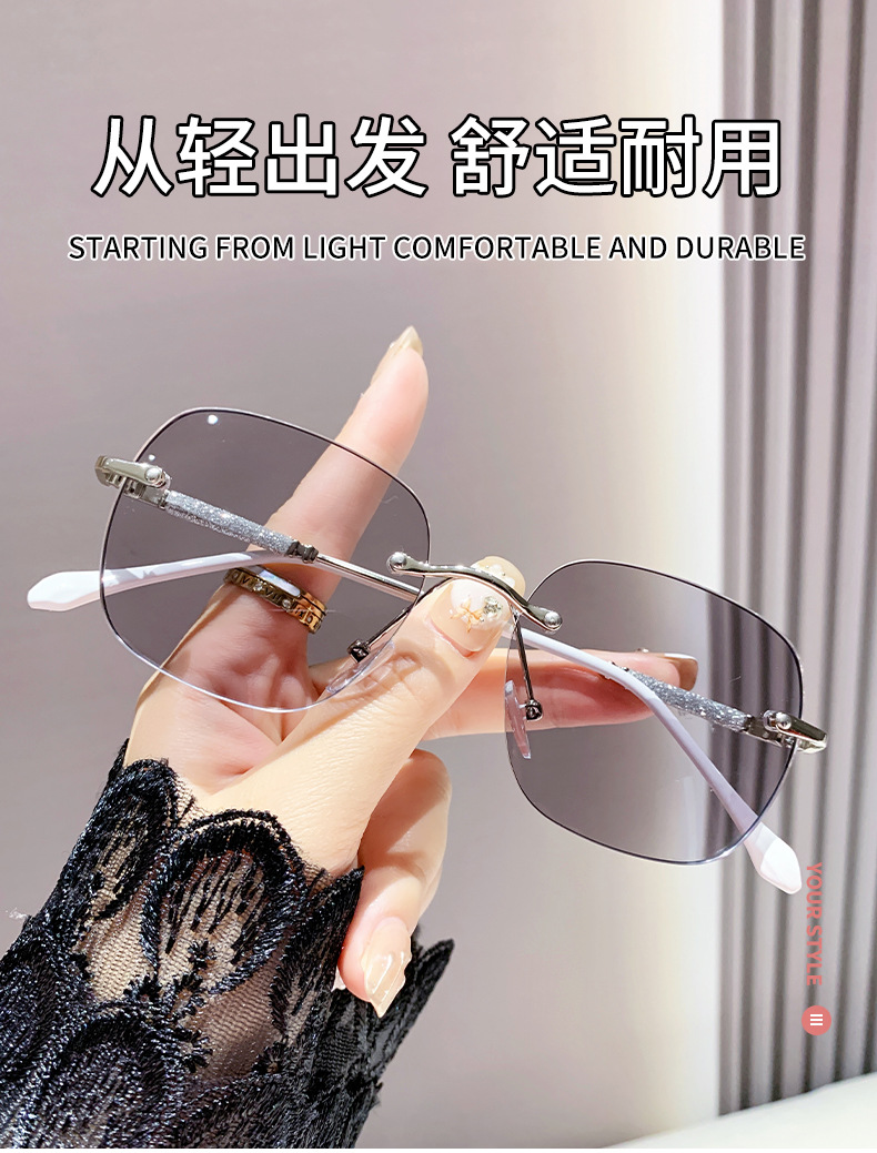 Espejo plano de cambio de color fotosensible de alta calidad Gypsophila Douyin Anti-Blu-ray Gafas de lectura de alta definición con borde ilimitado femenino