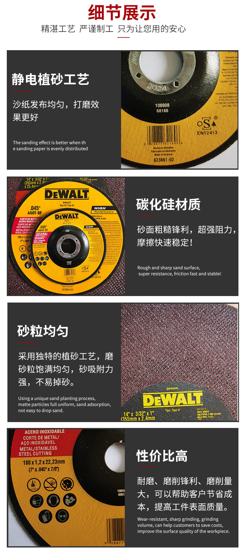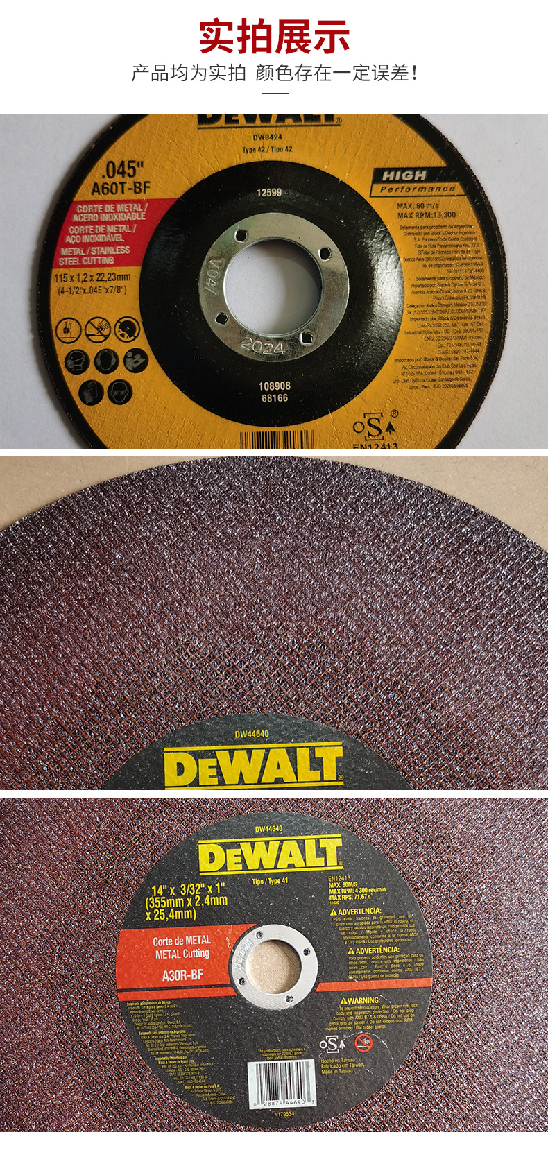 | Especificaciones | Tipo extraíble (4,5 pulgadas) 115*1,2*22,2 400/pieza,Tipo extraíble (7 pulgadas) 180*1,2*22,2 200/pieza,Plano (4,5 pulgadas) 115*1,2*22,2 600/pieza,Plano (7 pulgadas) 180*1.4*22.2 200/pieza,Disco abrasivo (4,5) 115*6,3*22,3 100/pieza,Disco abrasivo (7 pulgadas) 180*6,3*22,3 50/pieza,Hoja de corte (14 pulgadas) 350*2,5*25,4 30/pieza,Hoja de cuchilla (4.5 pulgadas) 115*22.300/pieza,Hoja (4,5 pulgadas) 115*22,2 300/pieza,Disco abrasivo (9 pulgadas) 230*6,5*22 |