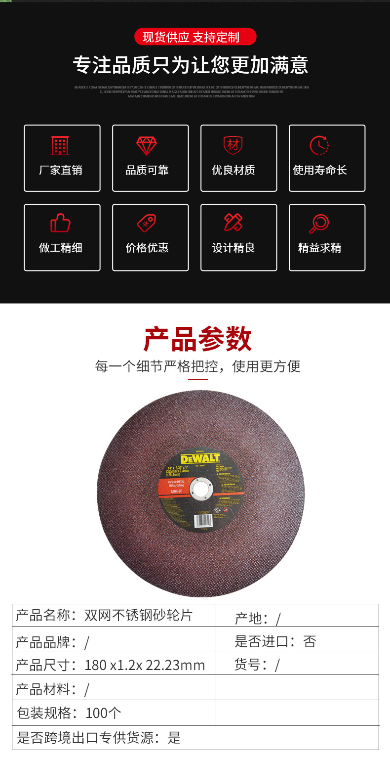 Fabricante Dewei rueda de molienda de metal acero inoxidable disco de corte disco de molienda 115-350 pieza de rueda de molienda al por mayor
