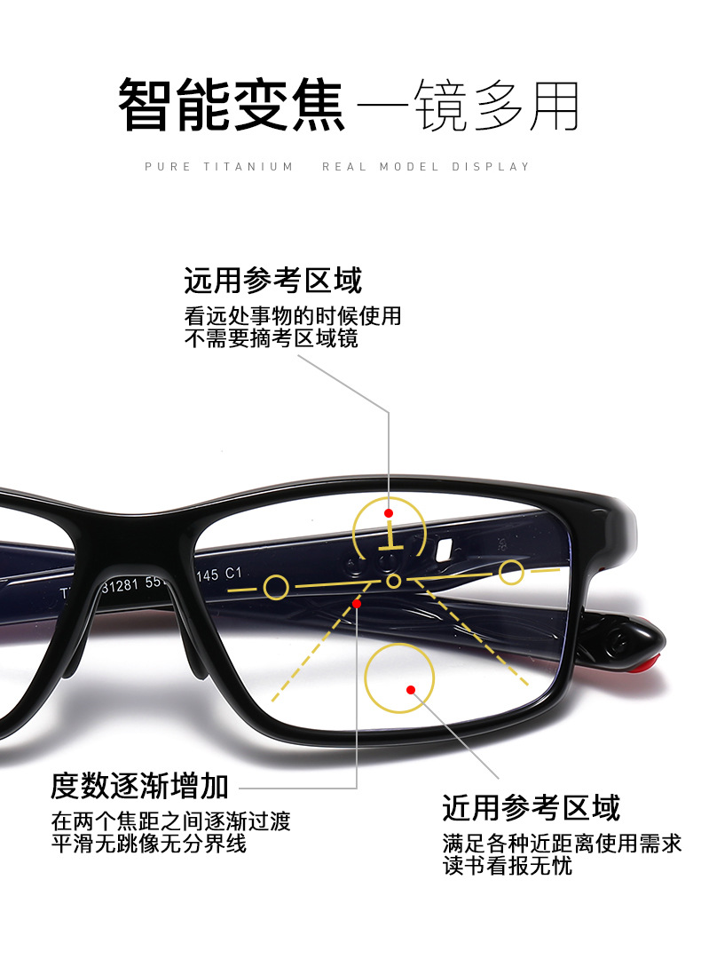 Transfronterizo TR90 zoom automático progresivo multifocal de doble propósito de gafas de presbyopia de mediana edad anti-luz azul gafas de presbyopia
