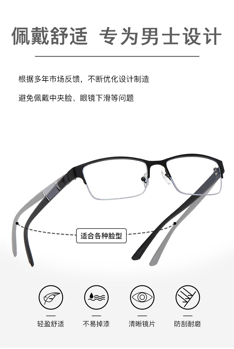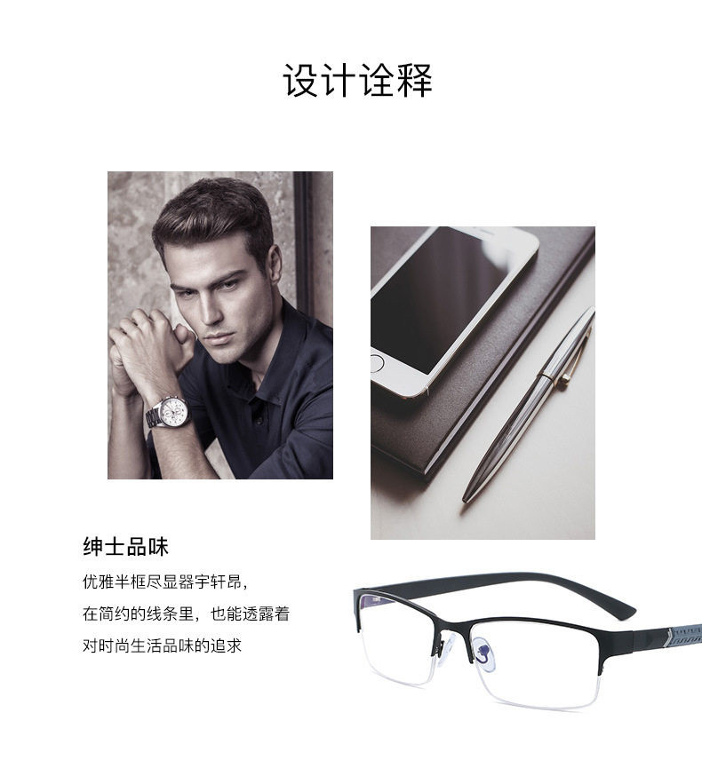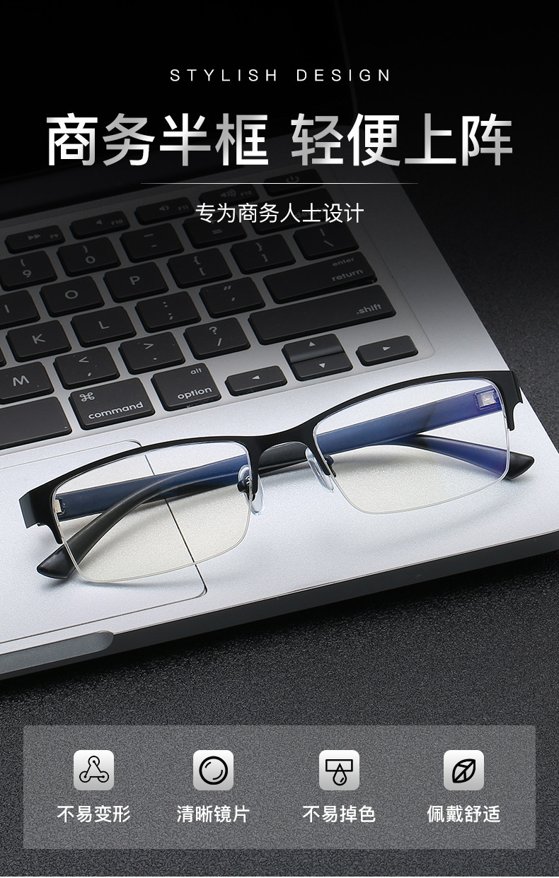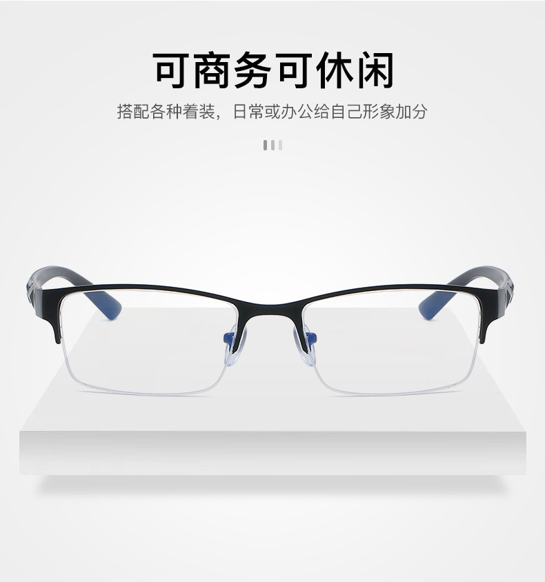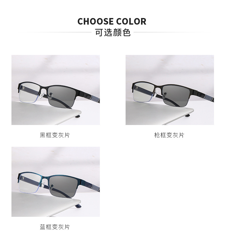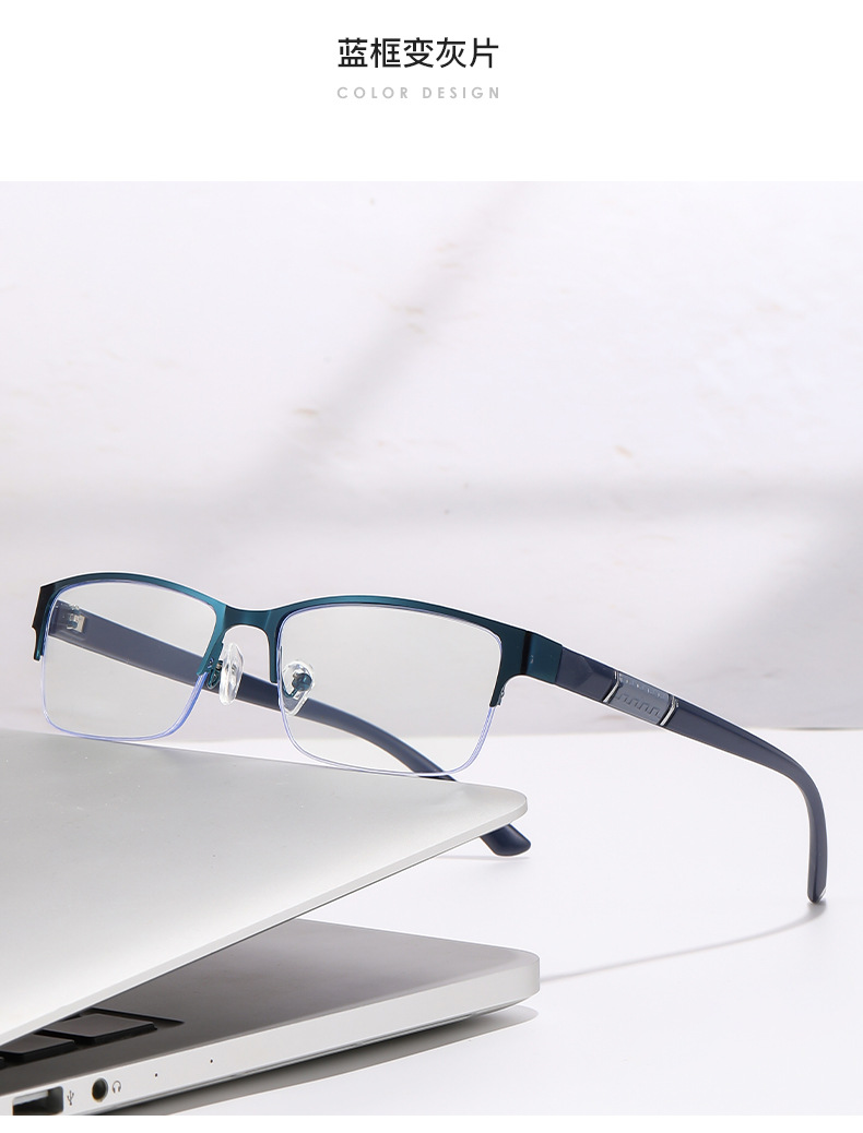 Gafas de negocios de medio marco que cambian de color, gafas anti-luz azul de grado ilimitado, gafas de miopía para caballeros de celebridades netas, productos terminados al por mayor