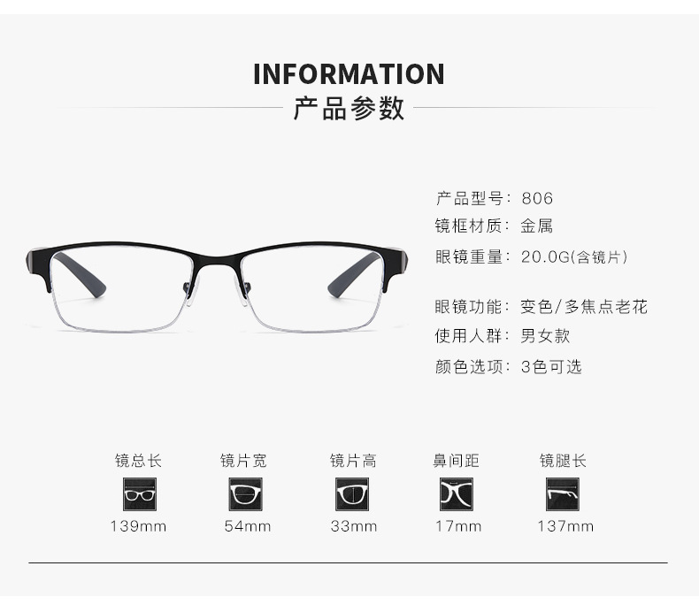 Gafas de lectura nuevos hombres de negocios de medio marco gafas de lectura en línea