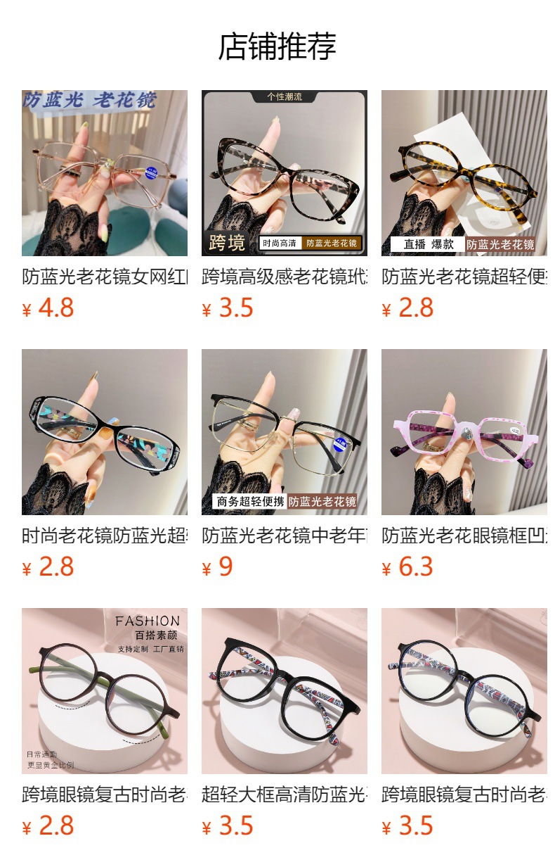gafas de luz de resorte de pierna de moda de un solo producto de luz para personas mayores de alta definición gafas de luz azul