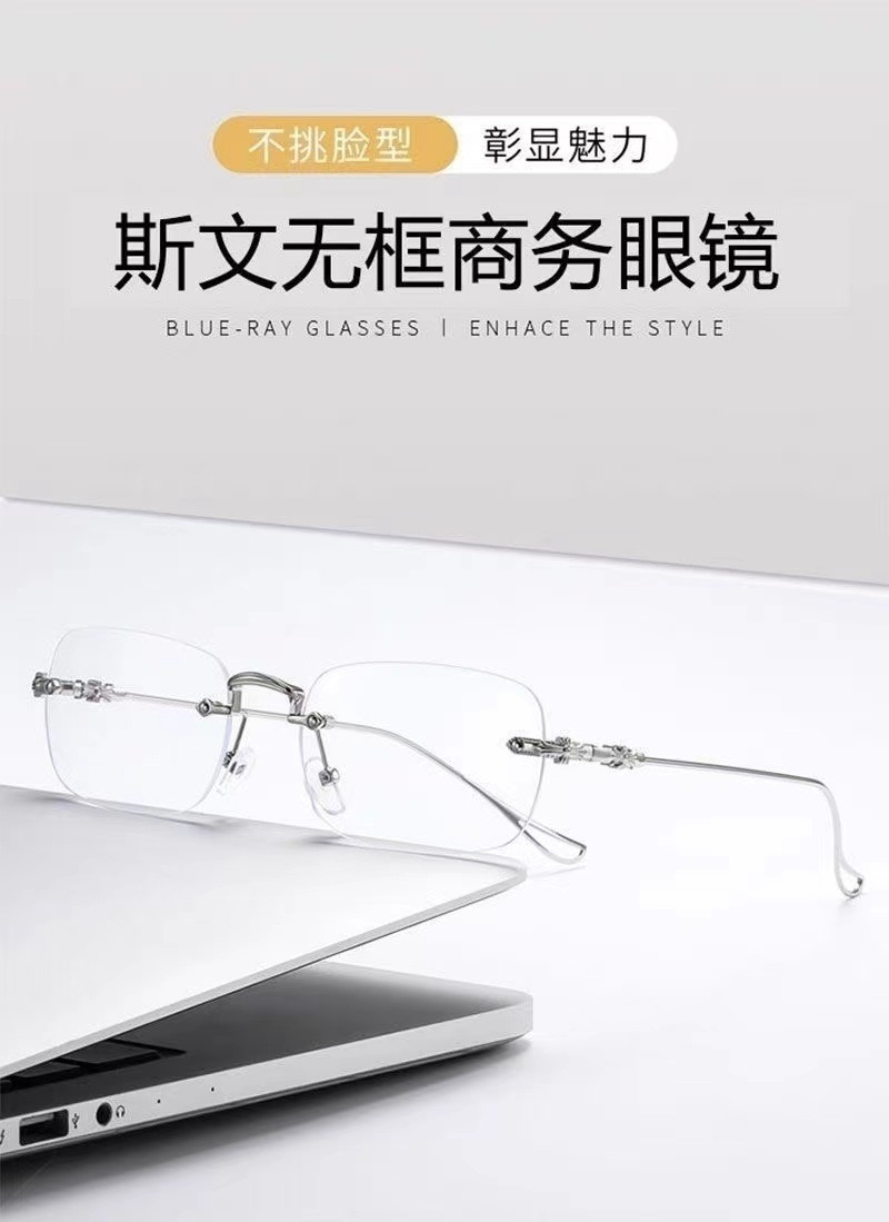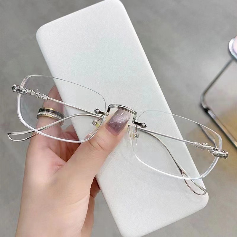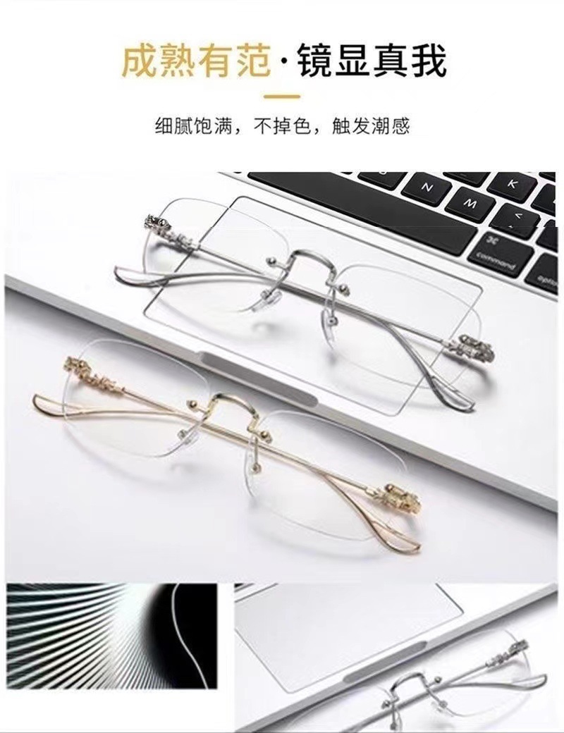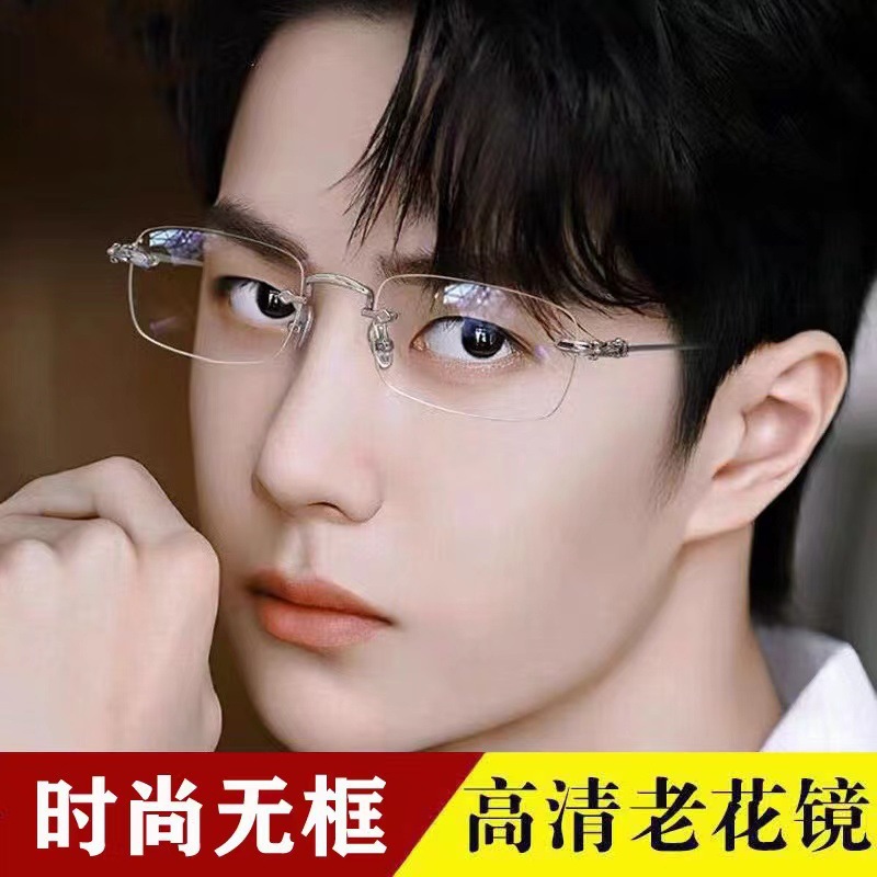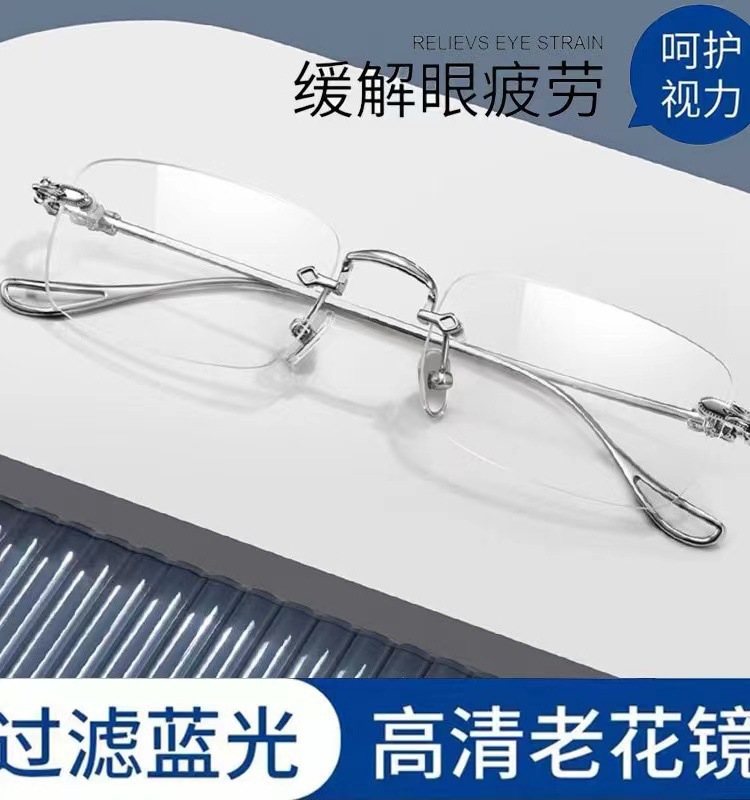 Estrictamente seleccionados gafas sin marco anti-azul luz gafas de presbicia pequeño rojo mismo estilo llanura gafas de adelgazamiento marco corte borde gafas de presbicia para los hombres