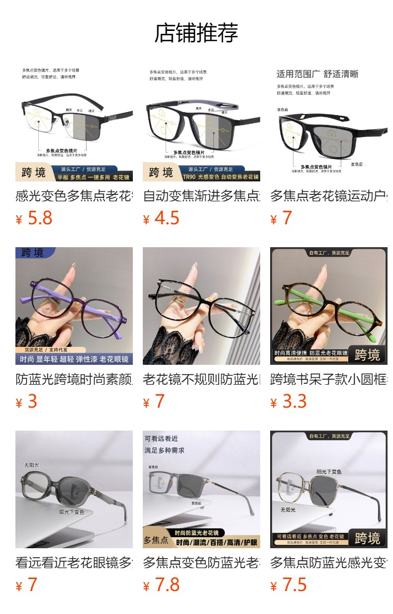 Gafas de lectura que cambian de color fotosensibles multifocales Gafas de luz azul anti-azul de alta gama de moda