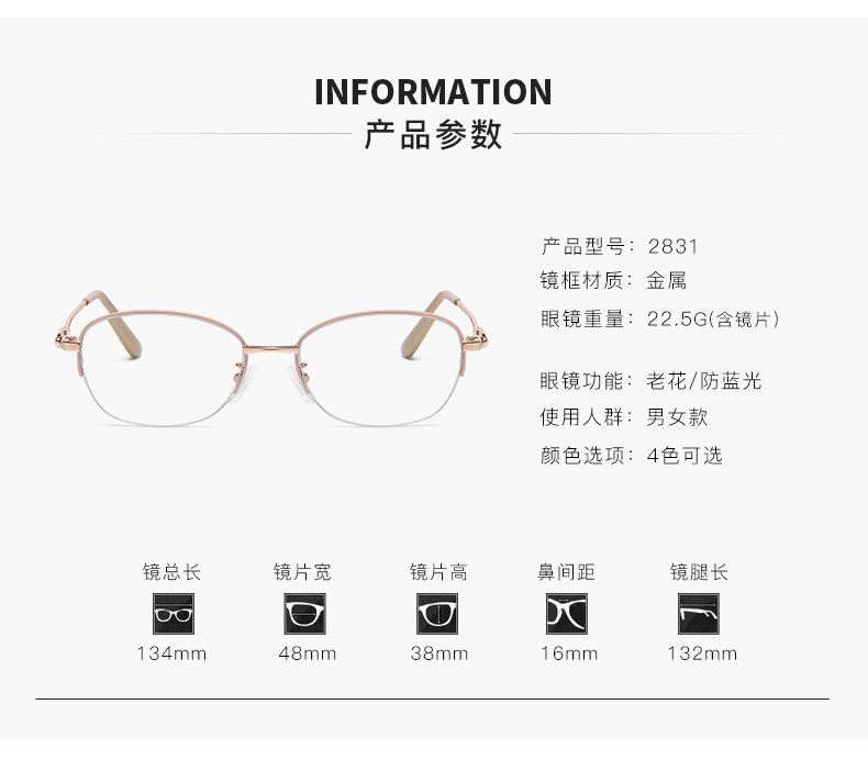 Las gafas viejas de la mujer super ligera de medio marco de gafas de negocios de alta calidad de moda anti-luz azul gafas viejas