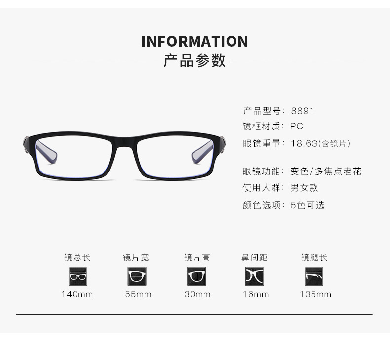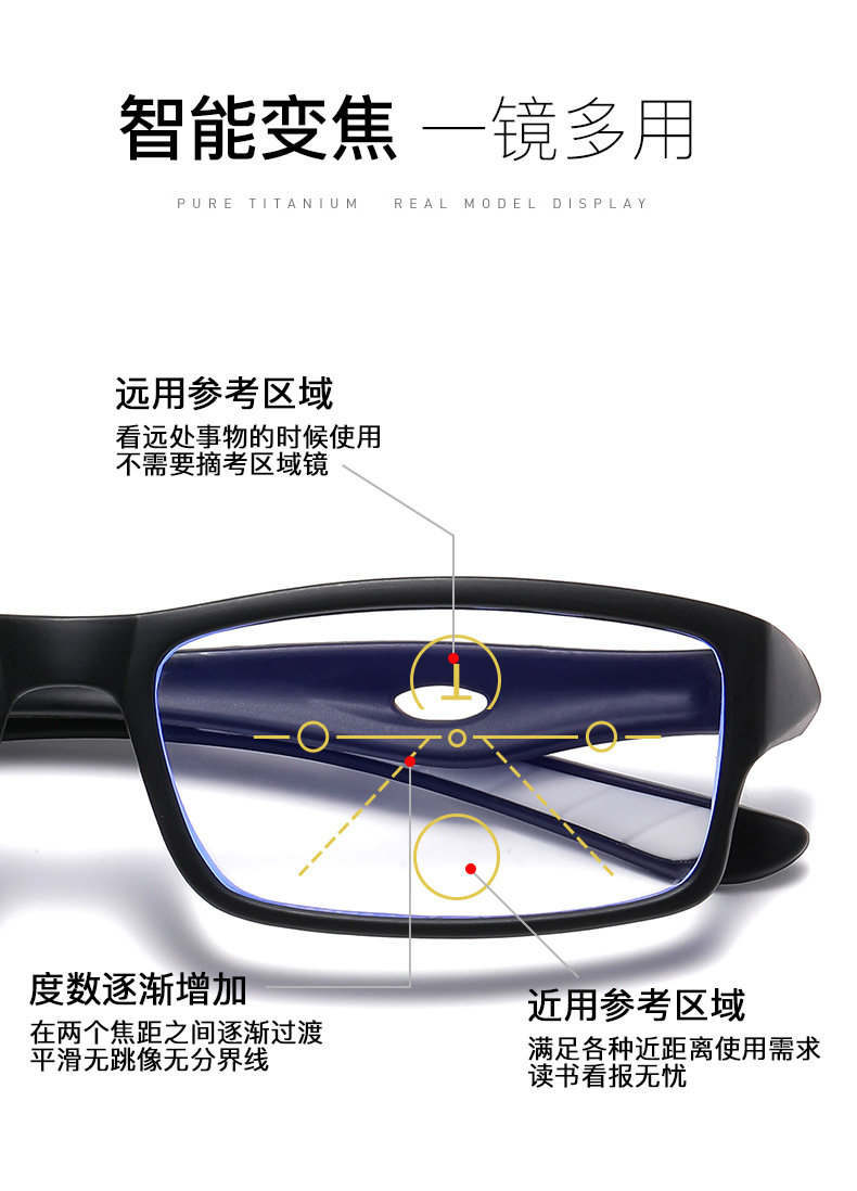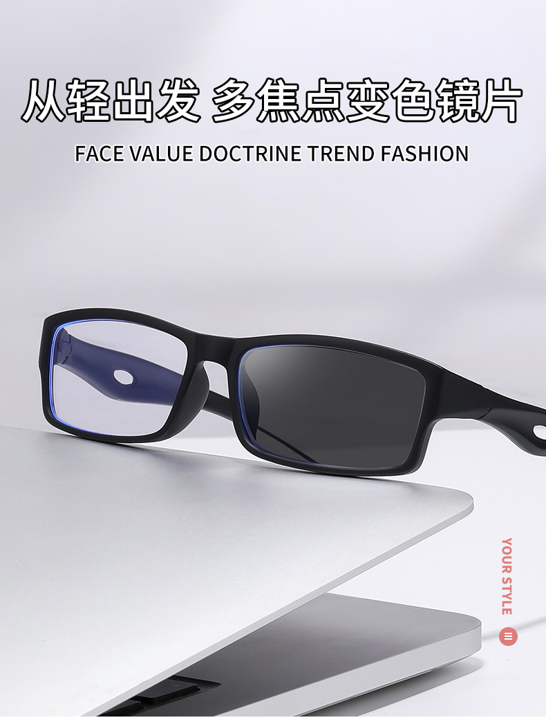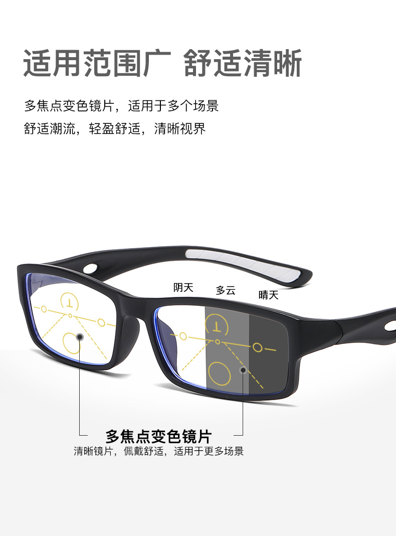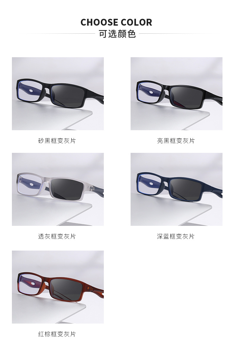 Sensor de luz decolor zoom automático de doble propósito gafas de presbyopia TR anti-luz azul gafas de presbyopia multifocal