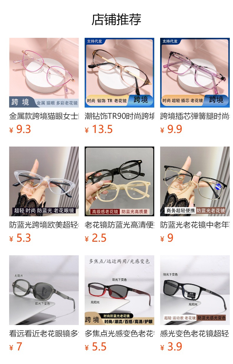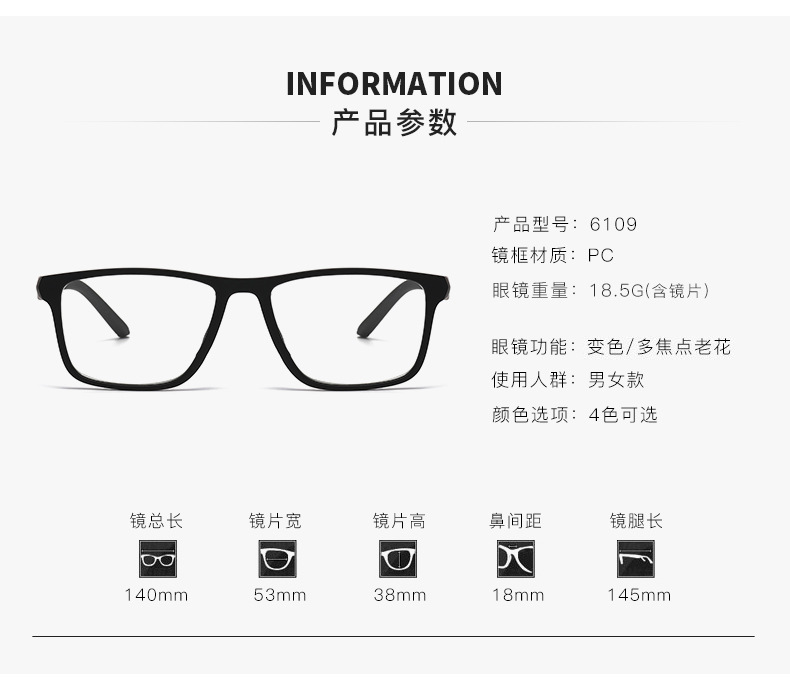 Inteligente de cambio de color de lejos y cerca de doble propósito anti-luz azul transfronteriza viejos de alta definición viejos de mediana edad gafas multifocales
