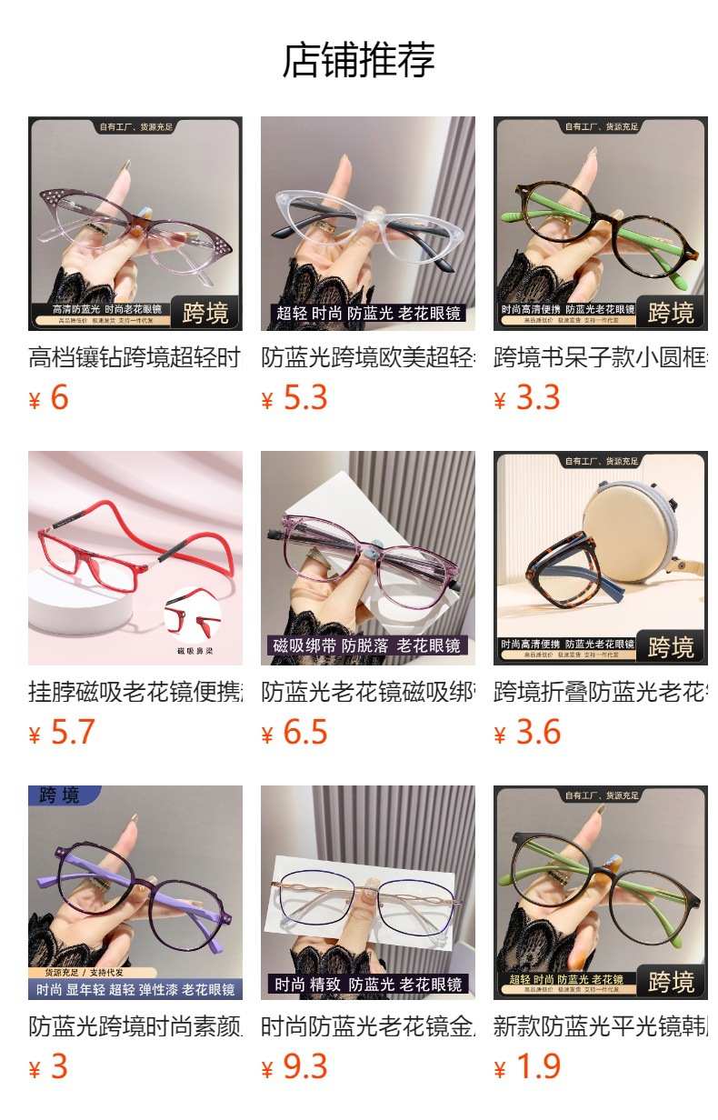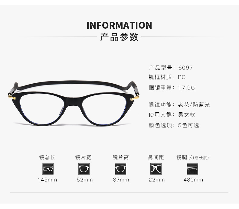 Ventas en caliente transfronterizas magnéticas portátiles colgantes de cuello magnético gafas de lector monoluz anti-luz azul gafas de lector plegables