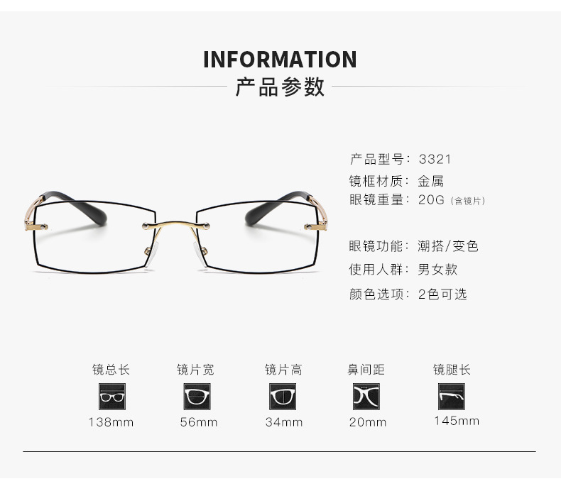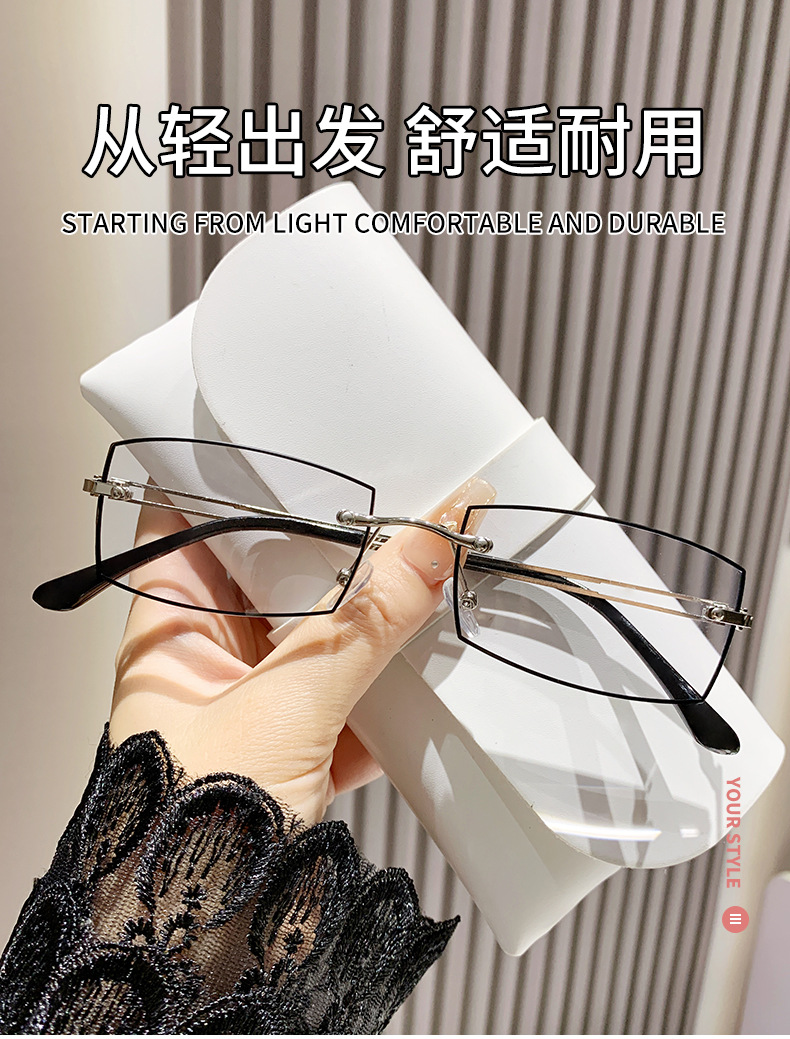 Gafas de lectura de moda que cambian de color fotosensibles Gafas anti-luz azul en polvo brillante sin marco Gafas de lectura de negocios de alta definición terminadas