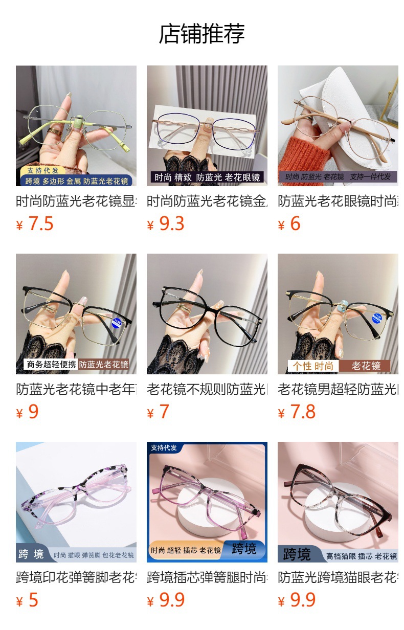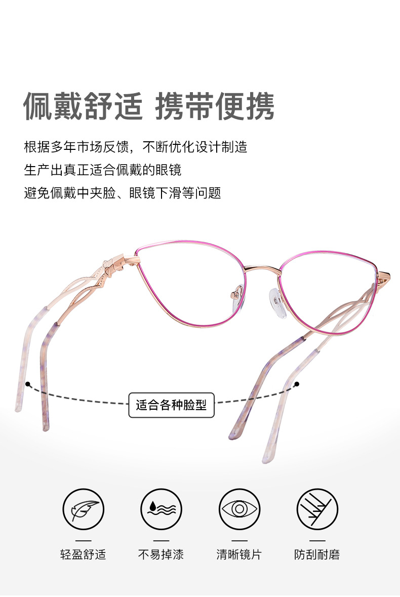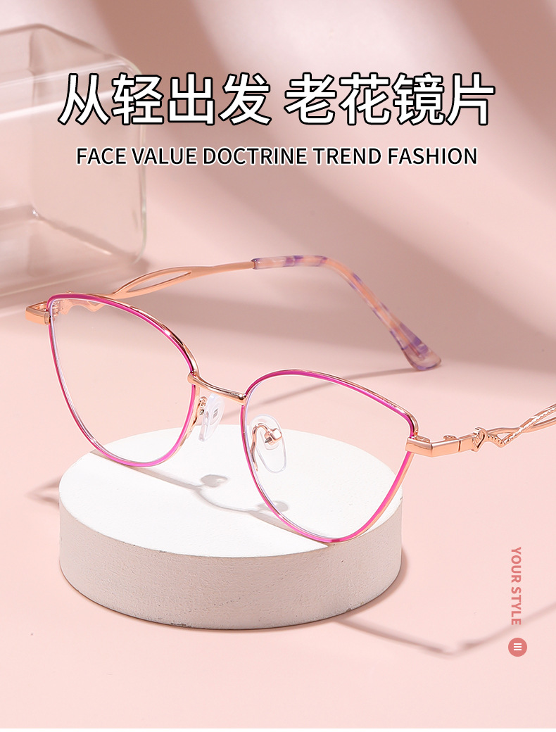 Metal transfronterizo ojo de gato de moda anti-luz azul gafas de alta definición para mujeres jóvenes de mediana edad gafas de edad