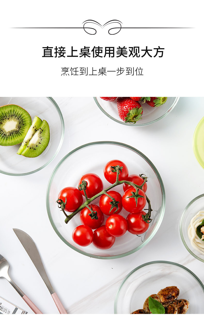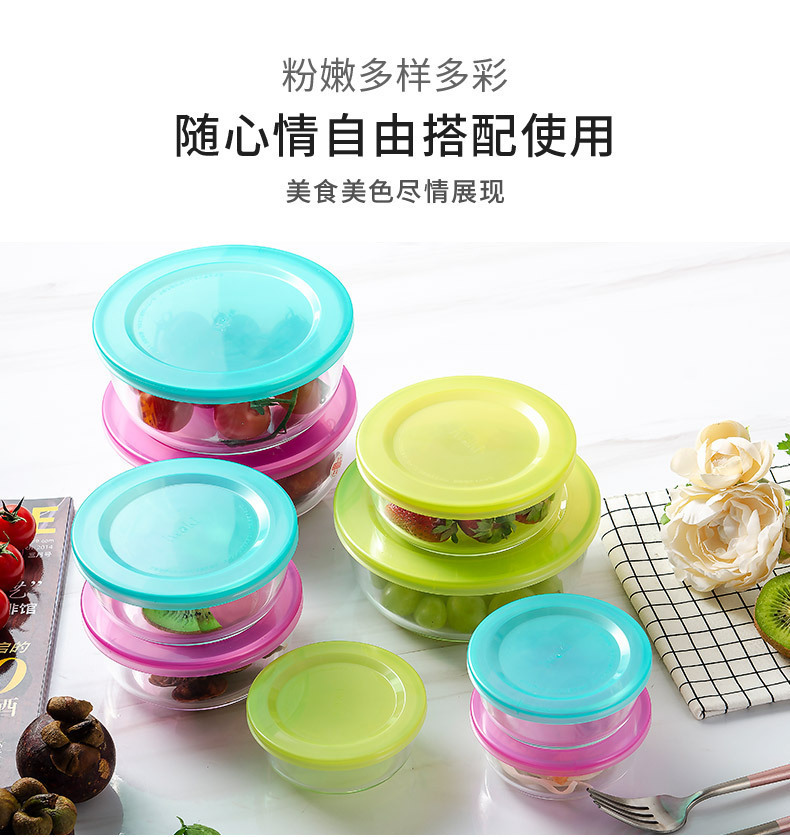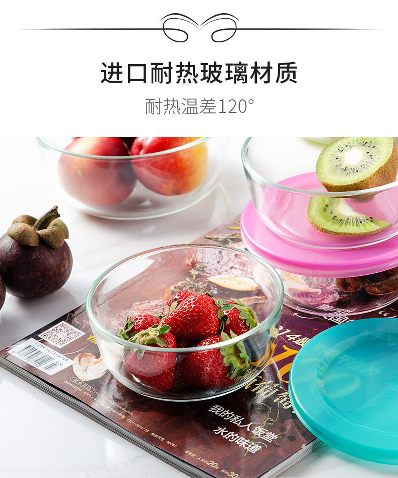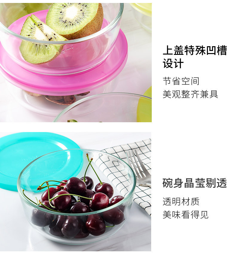 Tazón de vidrio de borosilicato alto resistente al calor, tazón de vidrio para microondas con tapa de PP, contenedor sellado para almacenamiento y conservación.