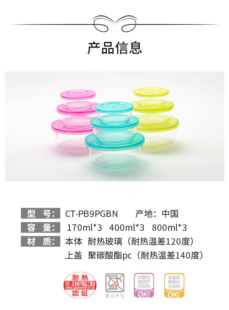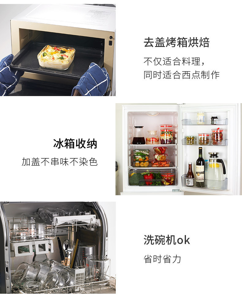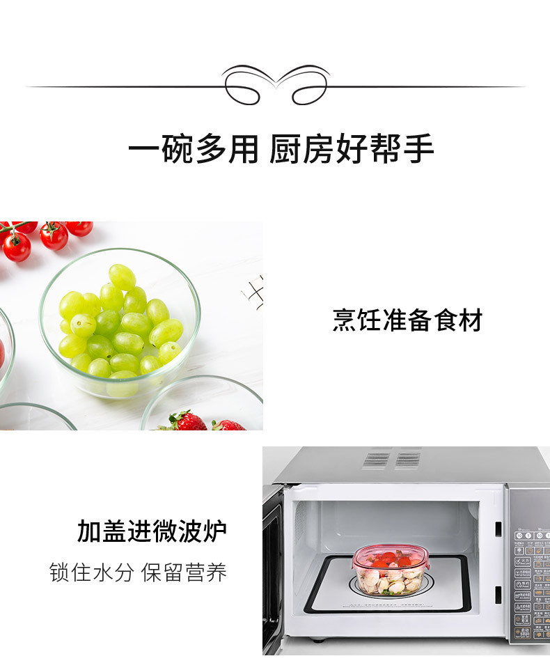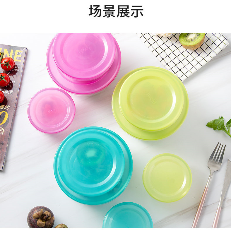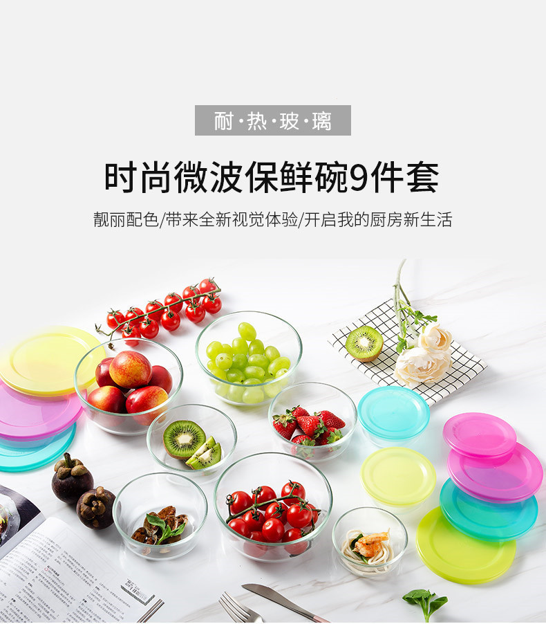 Tazón de vidrio de borosilicato alto resistente al calor, tazón de vidrio para microondas con tapa de PP, contenedor sellado para almacenamiento y conservación.