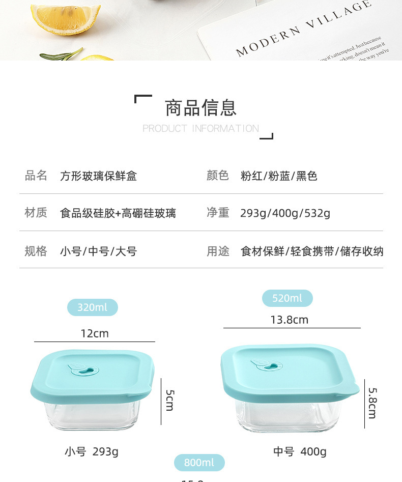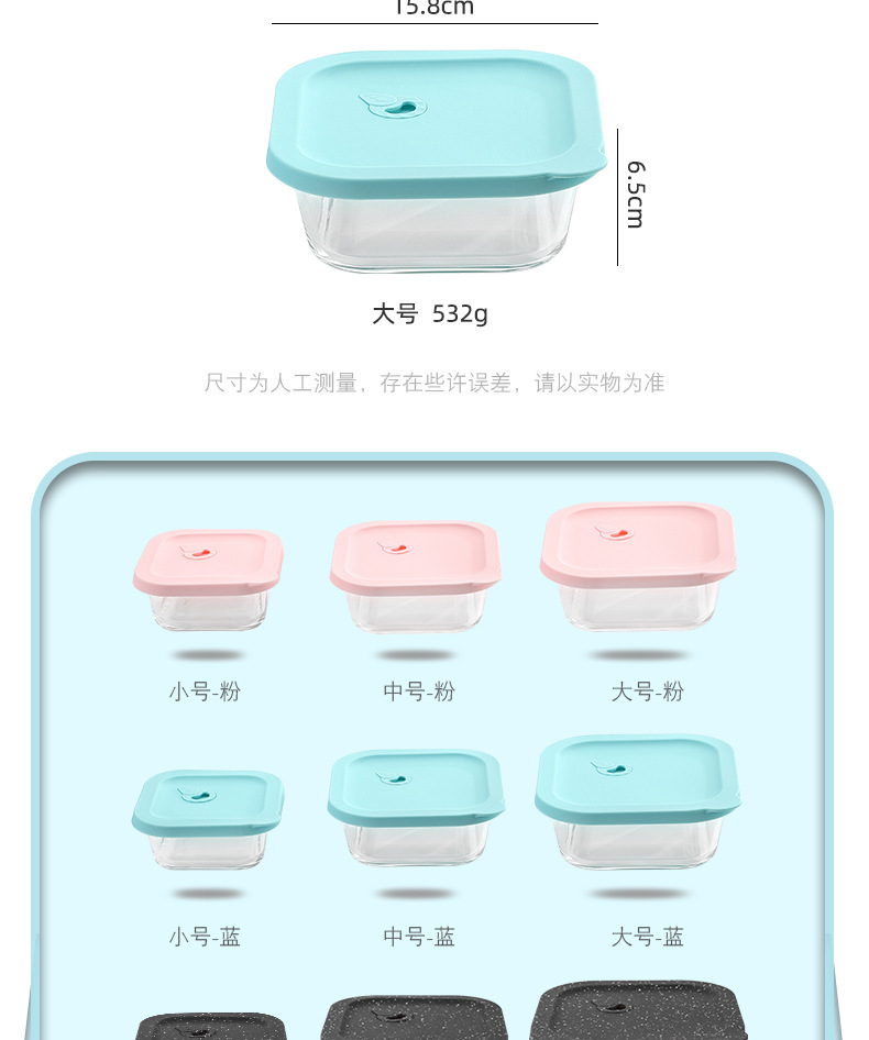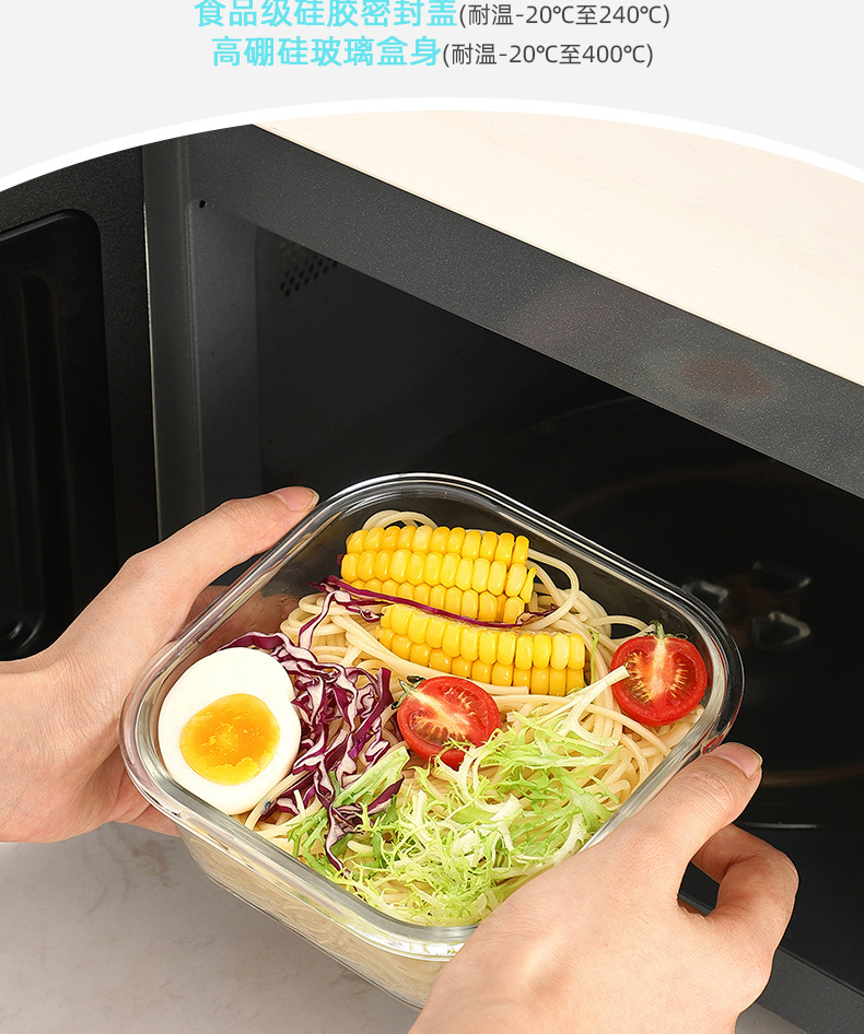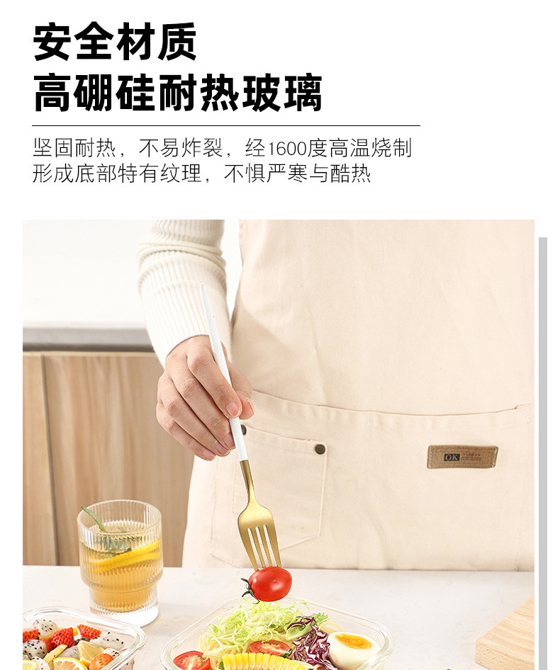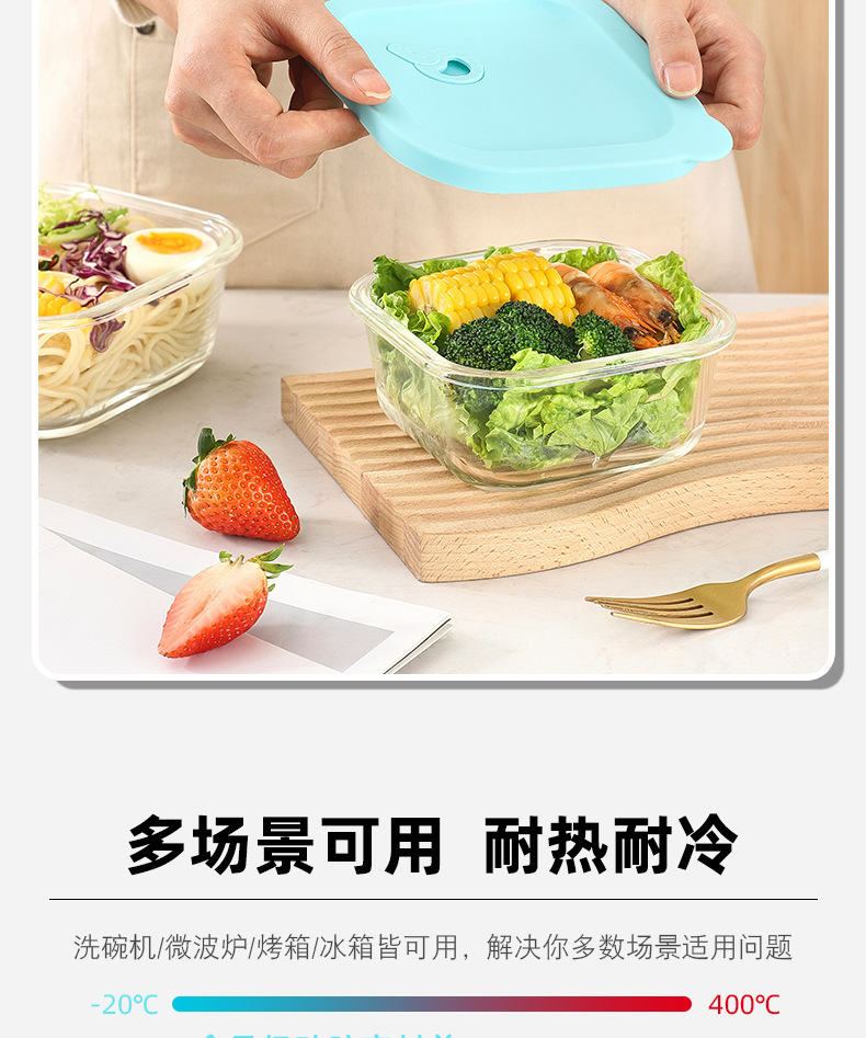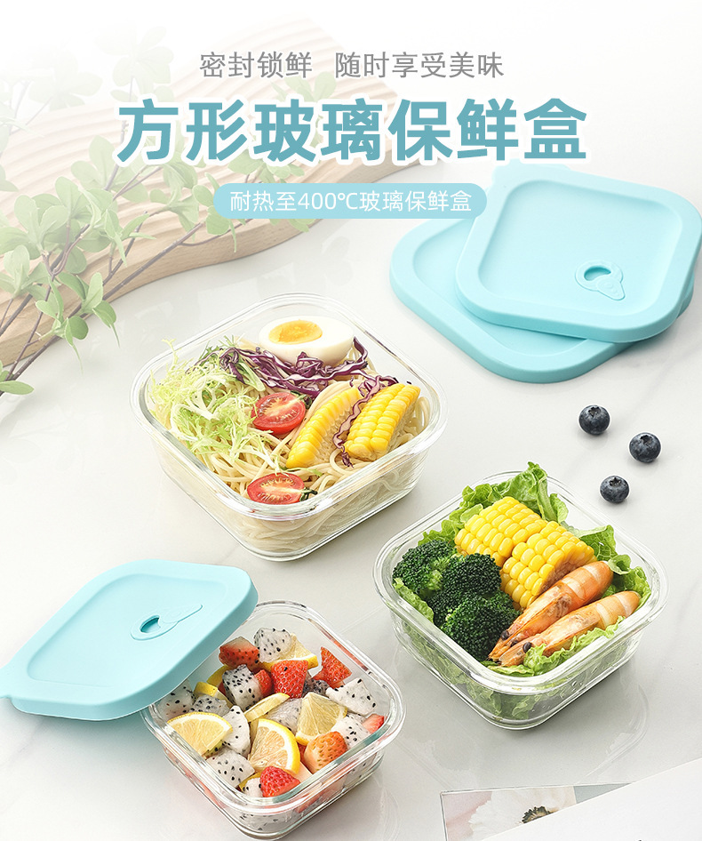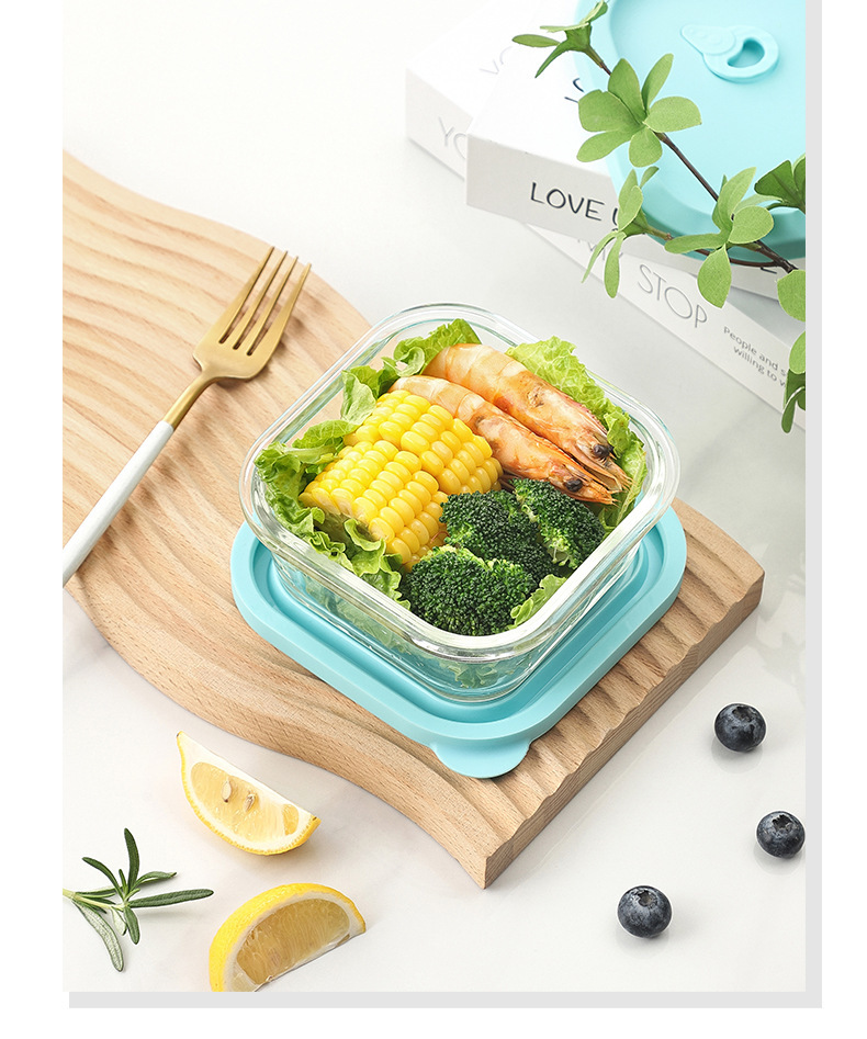 Cuadrado de vidrio de borosilicato lonchera estudiante trabajo microondas horno de alta temperatura resistente lonchera refrigerador crisper vidrio