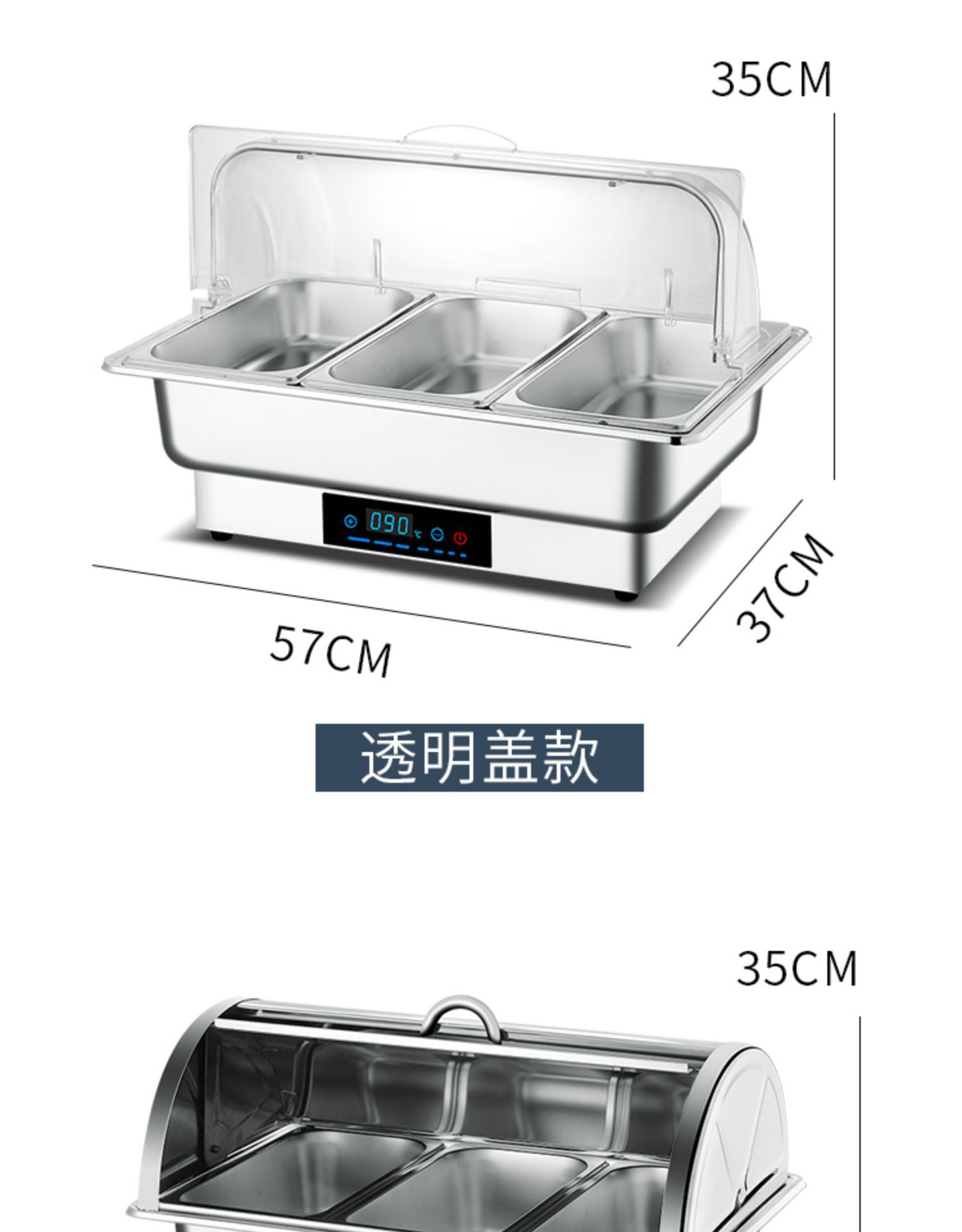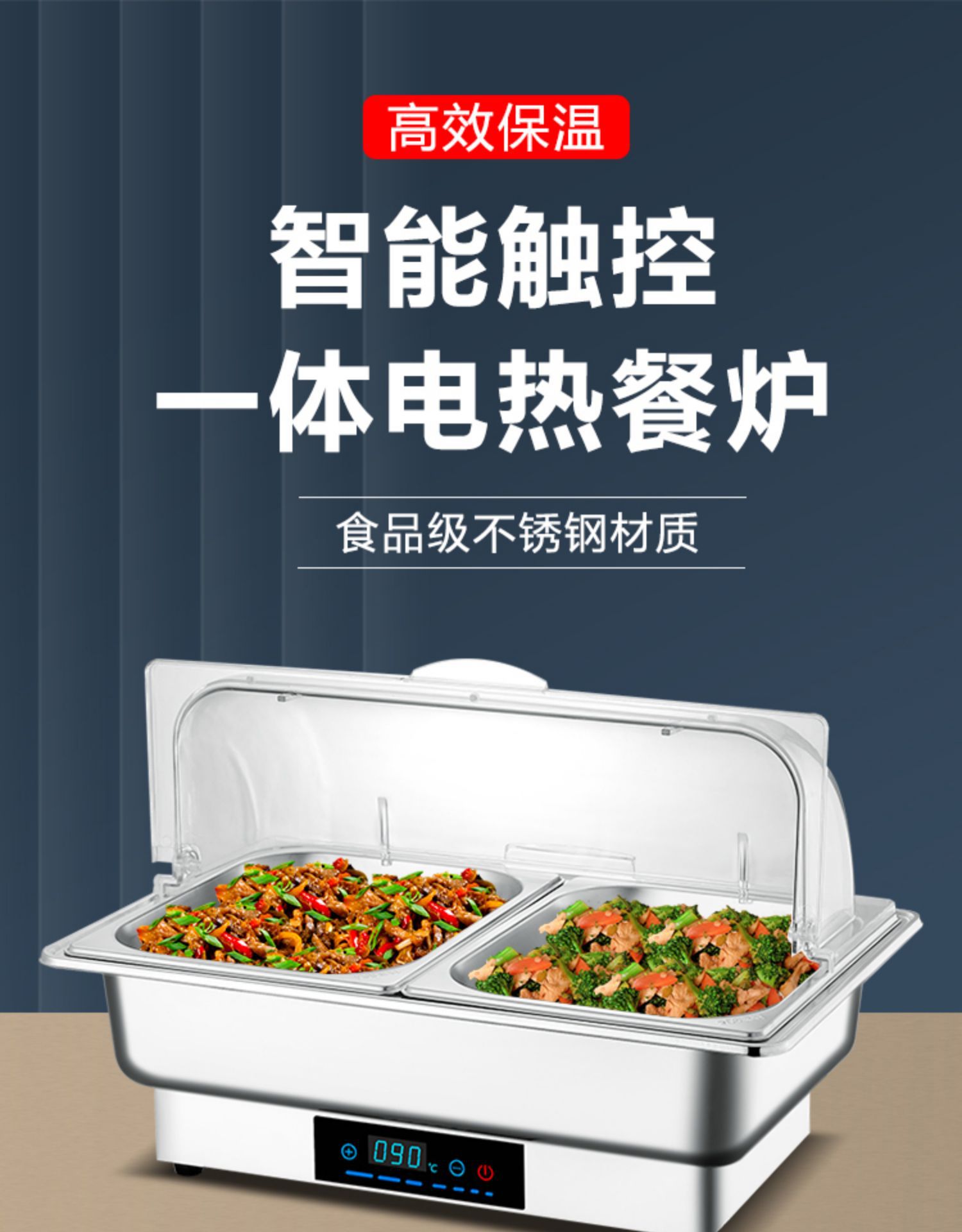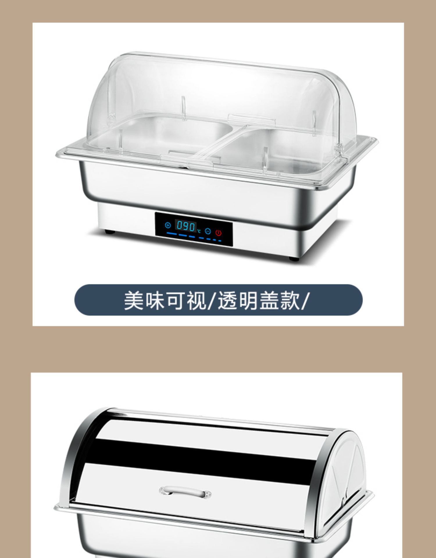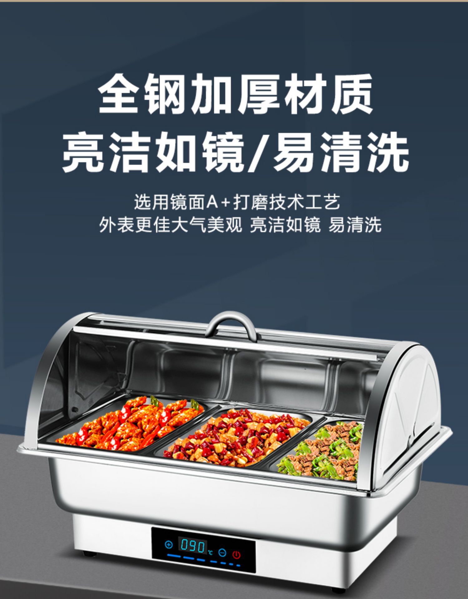 Acero inoxidable calefacción eléctrica buffet estufa flip-tapa visual desayuno aislamiento estufa espesada Hotel vajilla cuadrado buffet estufa