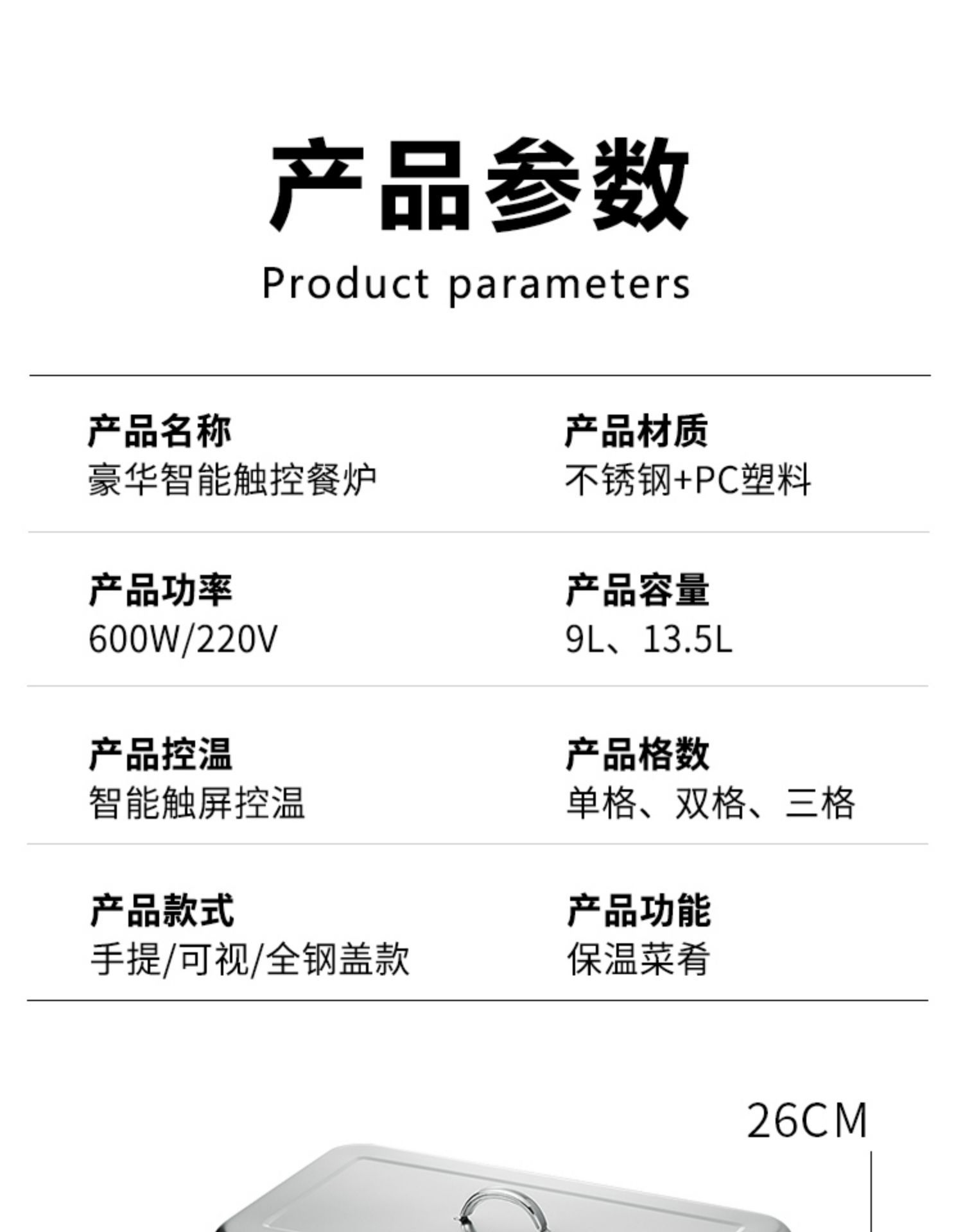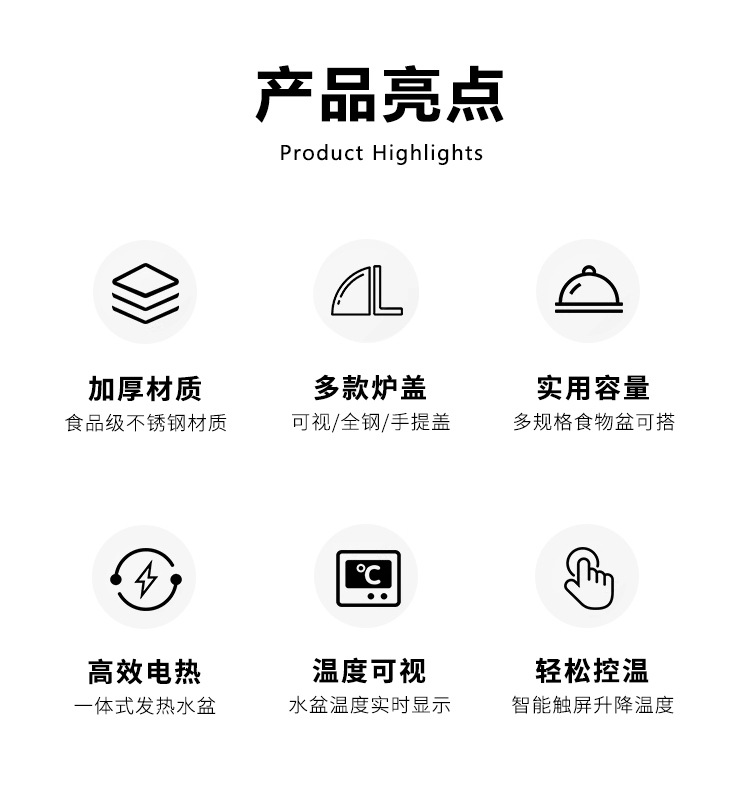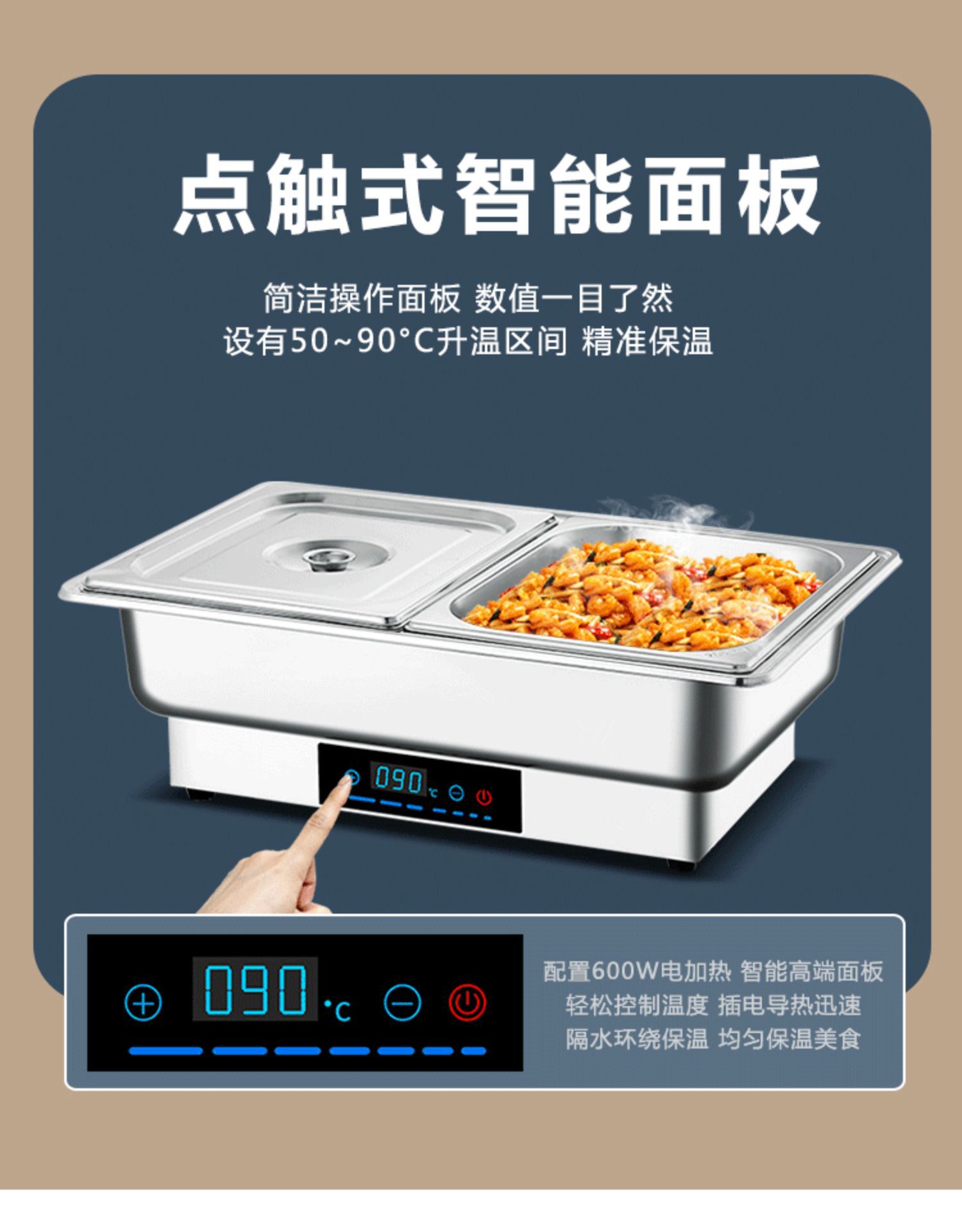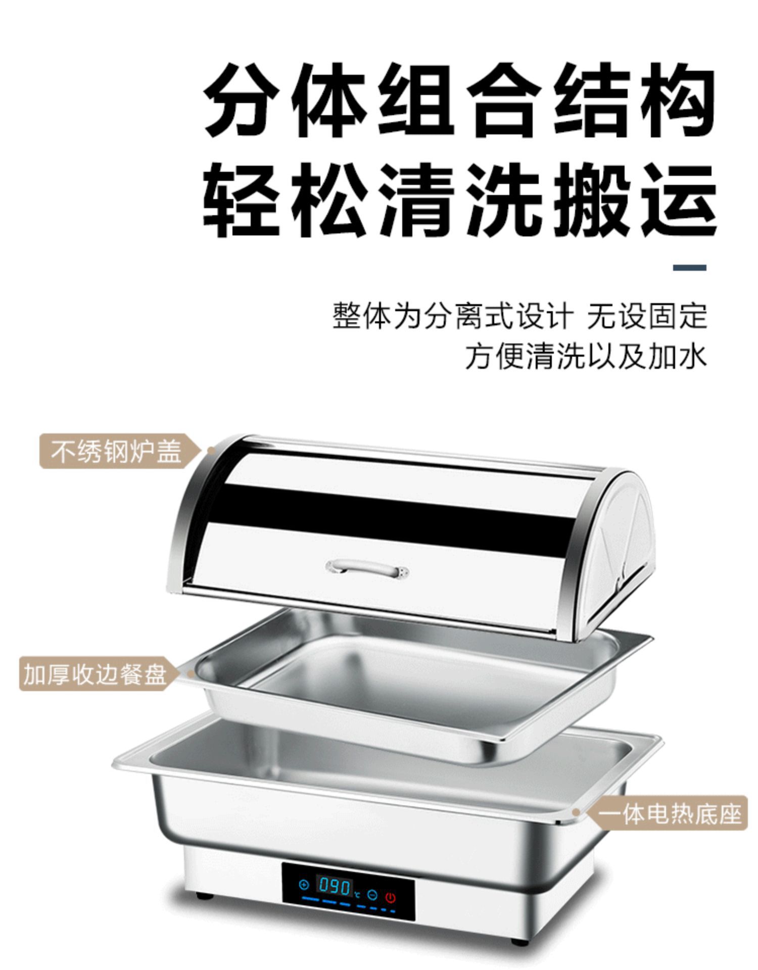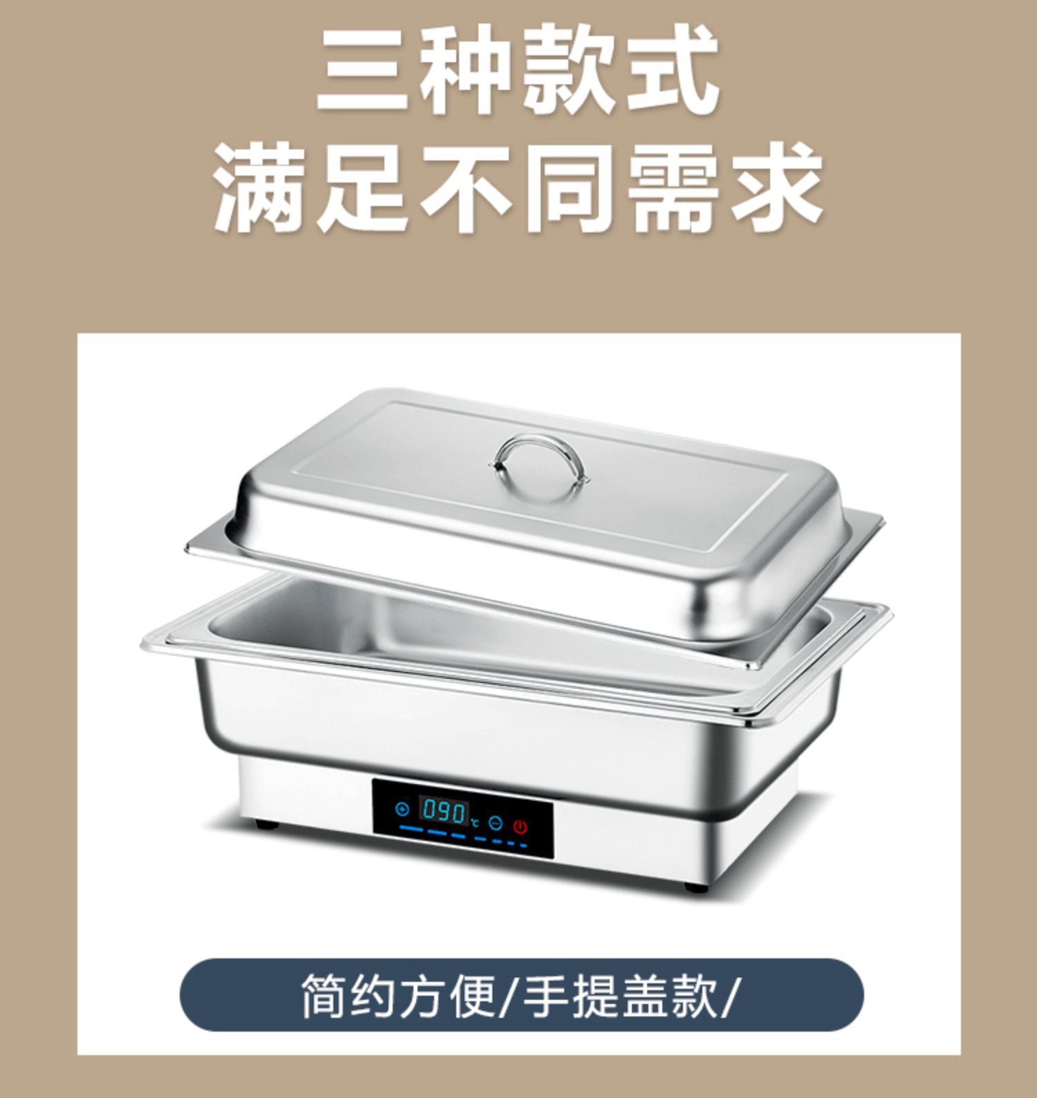 Acero inoxidable calefacción eléctrica buffet estufa flip-tapa visual desayuno aislamiento estufa espesada Hotel vajilla cuadrado buffet estufa