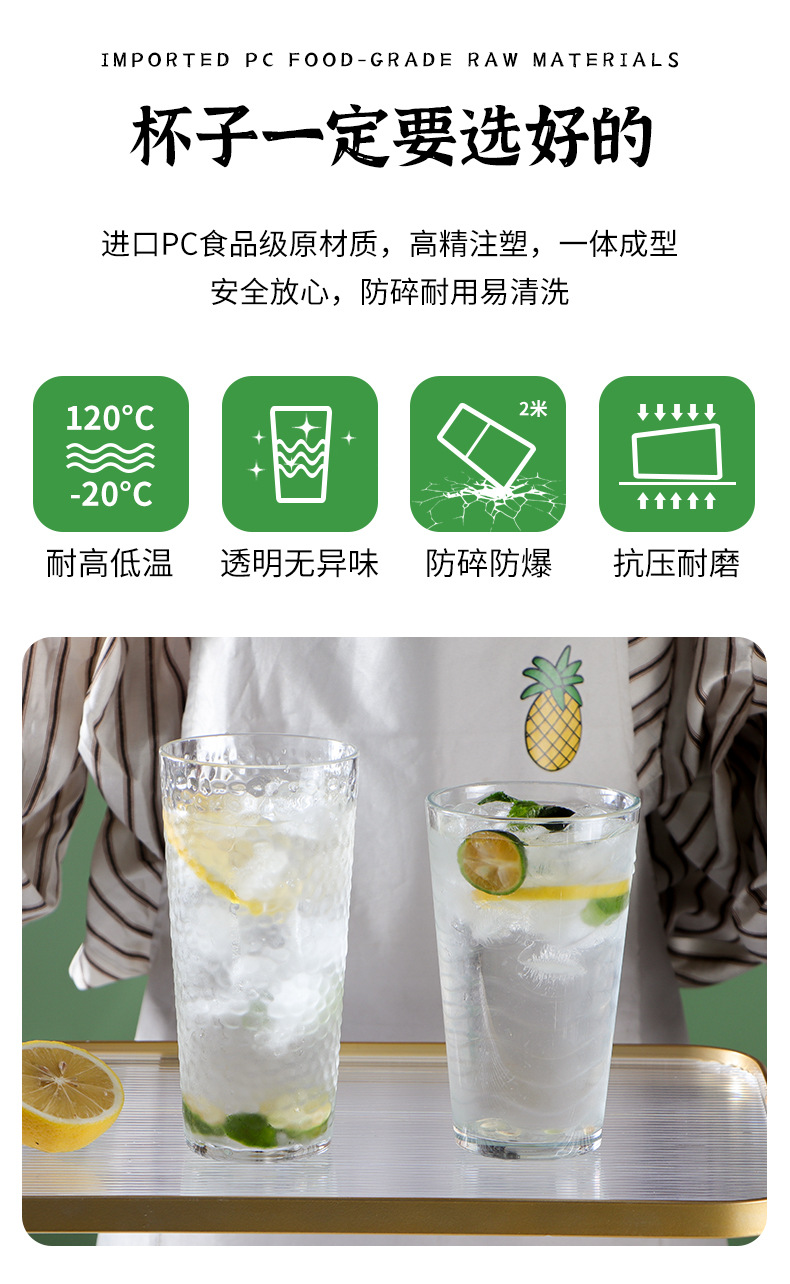 Taza transparente de acrílico bebida resistente a la caída de PC Colin Cup comercial mojito limón leche té batido de leche taza de jugo