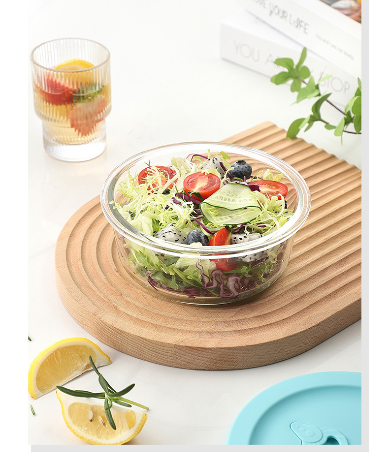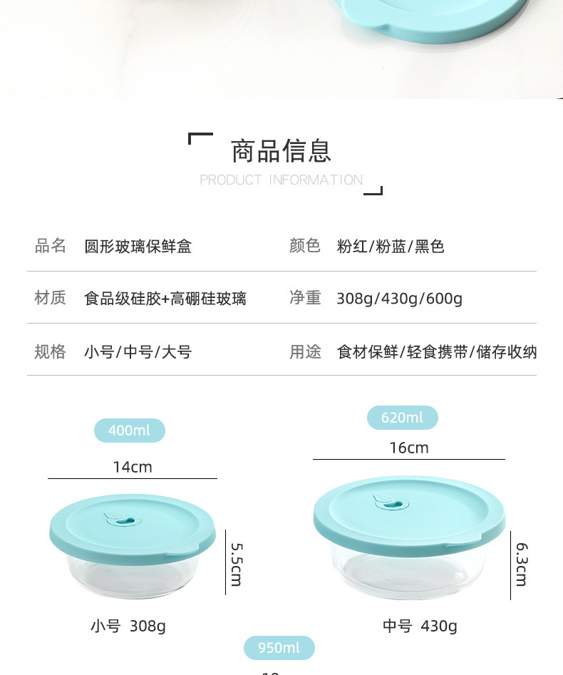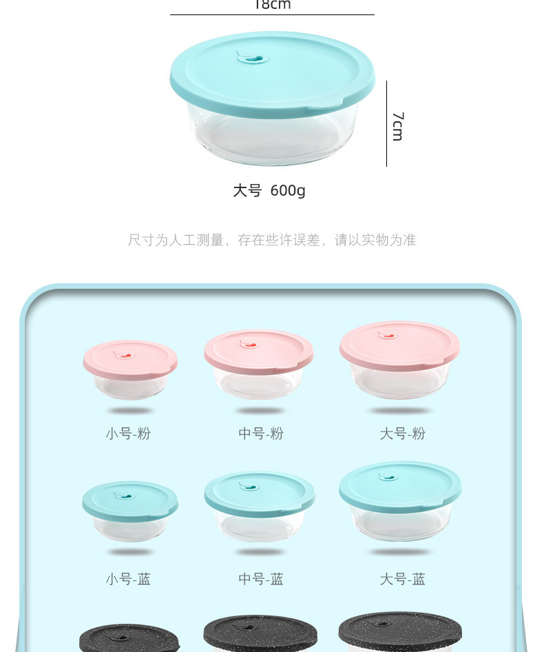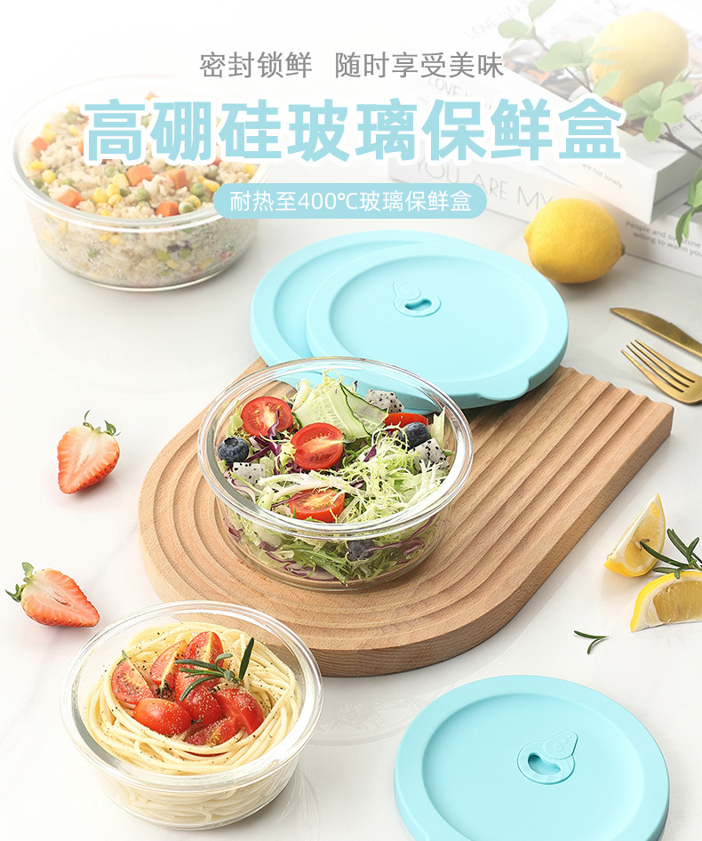 Caja de almuerzo de vidrio de borosilicato redondo trabajo horno de microondas caja de almuerzo resistente a altas temperaturas refrigerador crisper de vidrio fábrica en stock
