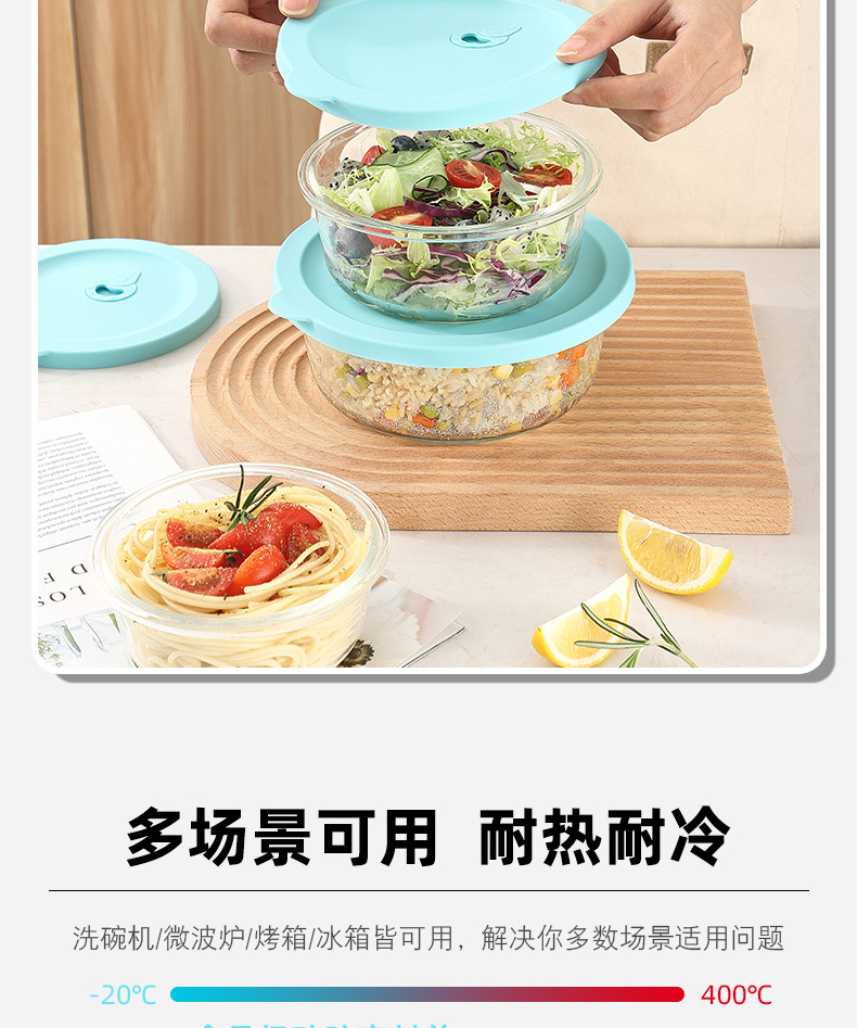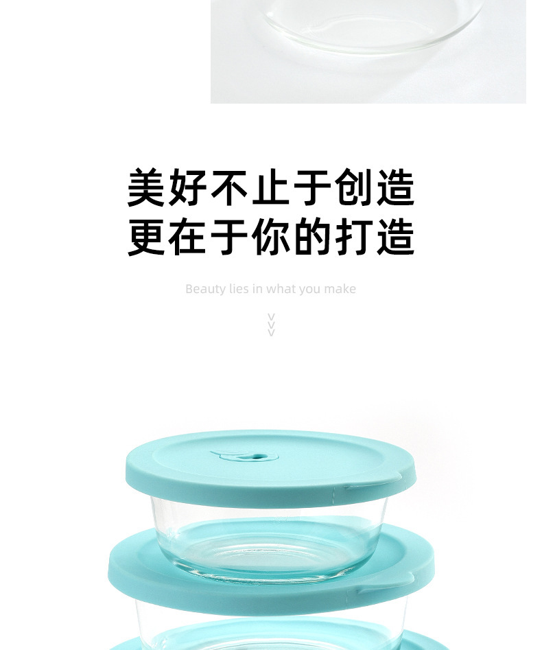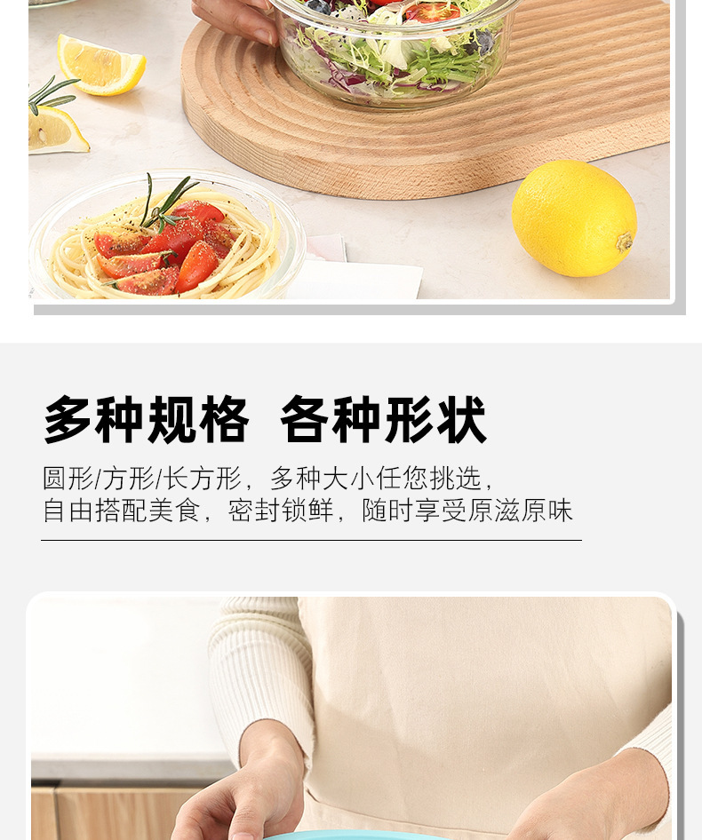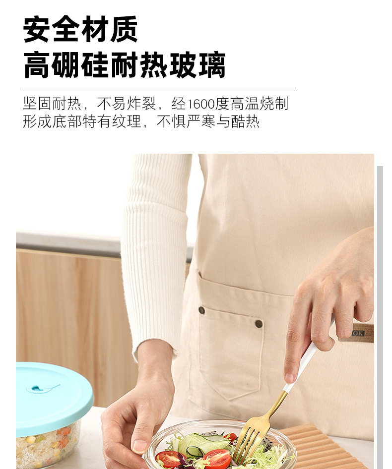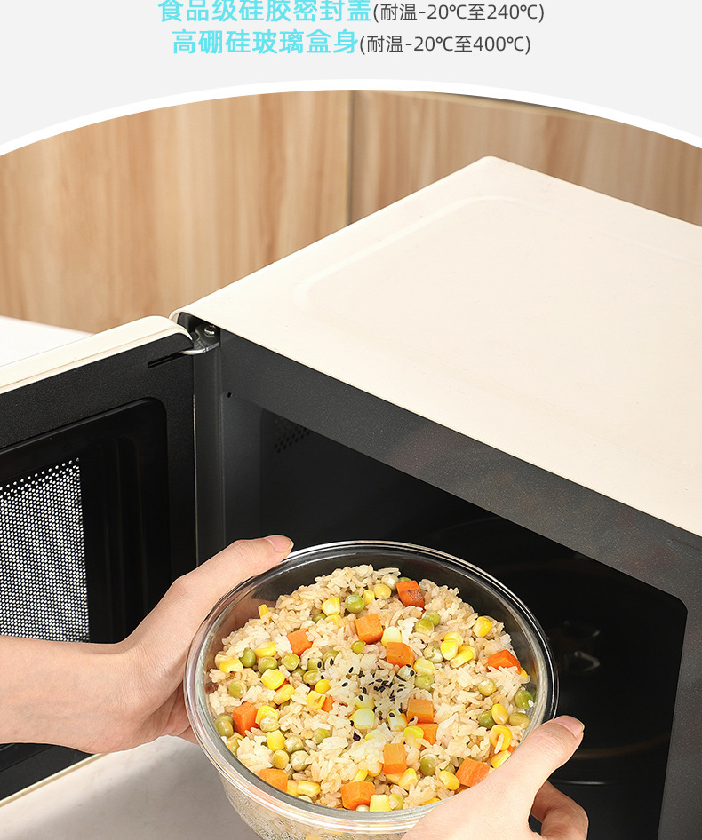 Caja de almuerzo de vidrio de borosilicato redondo trabajo horno de microondas caja de almuerzo resistente a altas temperaturas refrigerador crisper de vidrio fábrica en stock